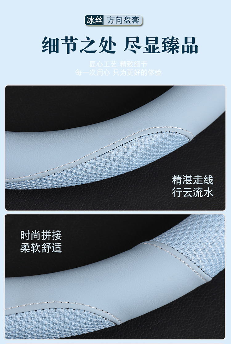 일체형 해외배송 아이스실크 자동차 핸들커버 가죽 미끄럼방지 땀흡수 스플라이싱 핸들커버 스포츠형 차량용스토어 가기