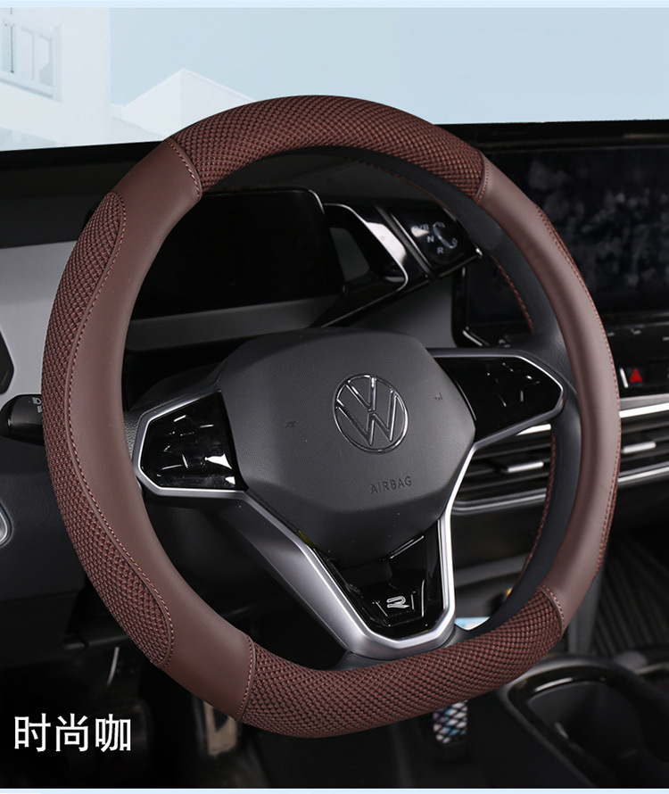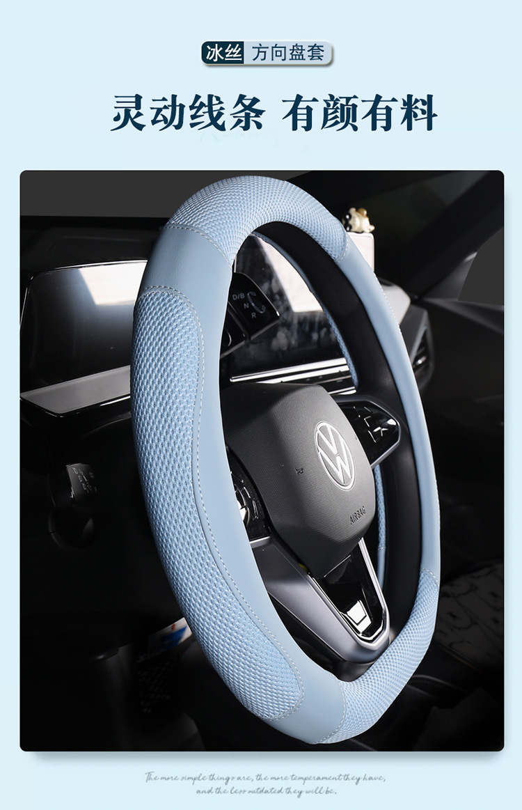 일체형 해외배송 아이스실크 자동차 핸들커버 가죽 미끄럼방지 땀흡수 스플라이싱 핸들커버 스포츠형 차량용