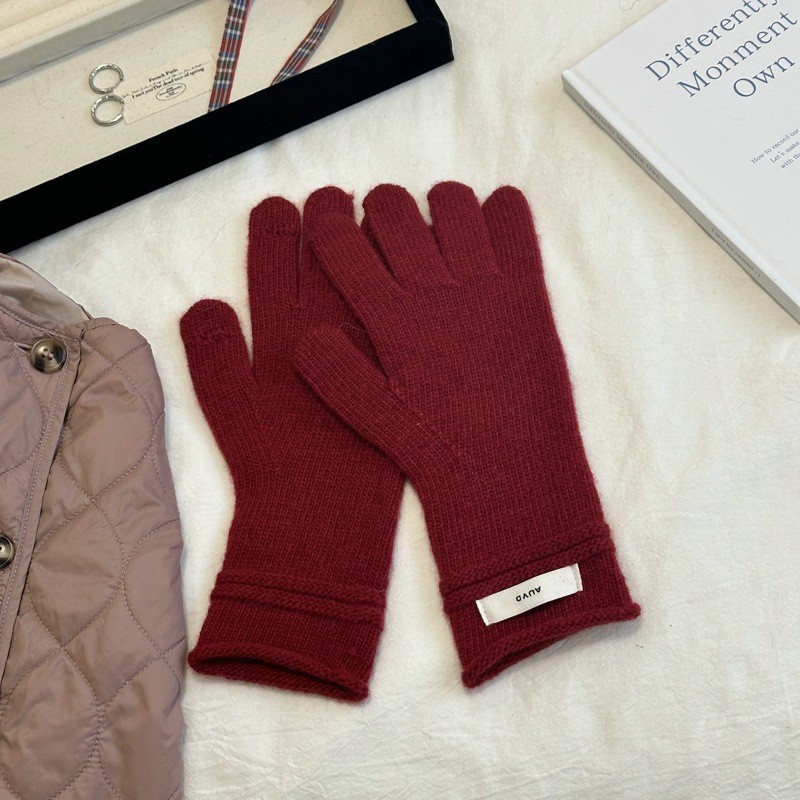 2024 가을과 겨울 솔리드 컬러 울 디자이너 니트 터치 스크린 겨울 학생 장갑 여성 손가락 울 장갑