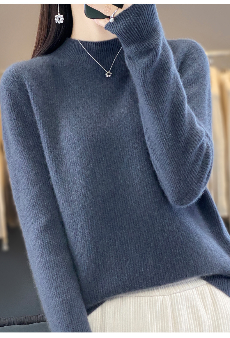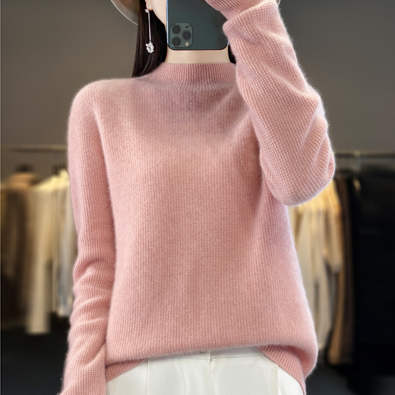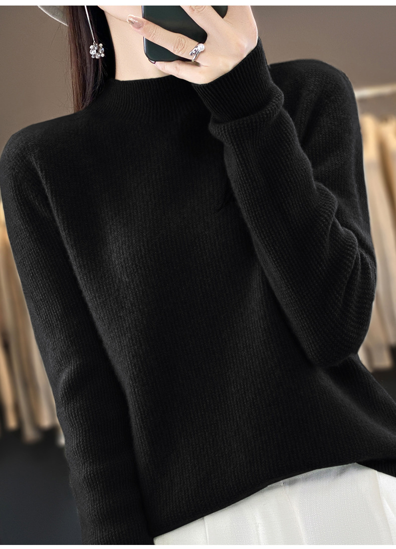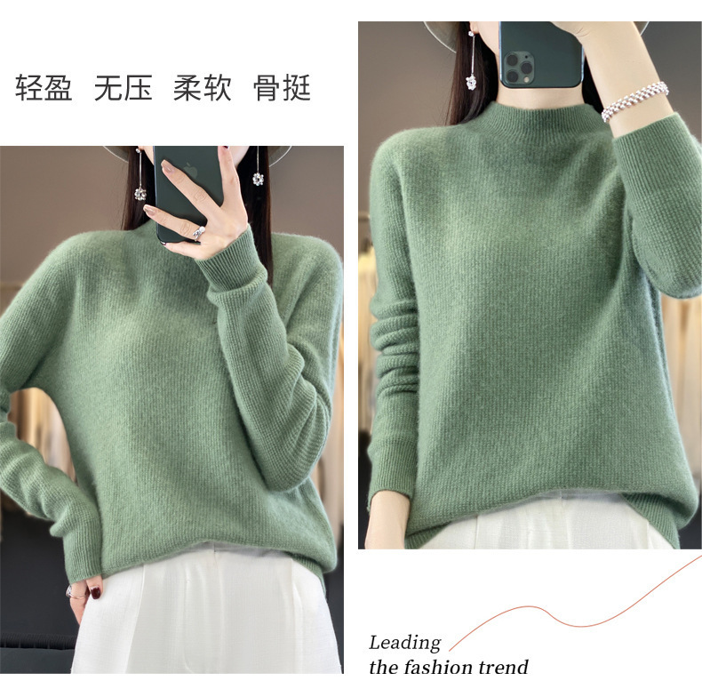퍼스트 라인 의류 하프 하이 칼라 풀 울 스웨터 여성 가을 및 겨울 새로운 슬리밍 캐시미어 스웨터 울 니트 베이스 셔츠