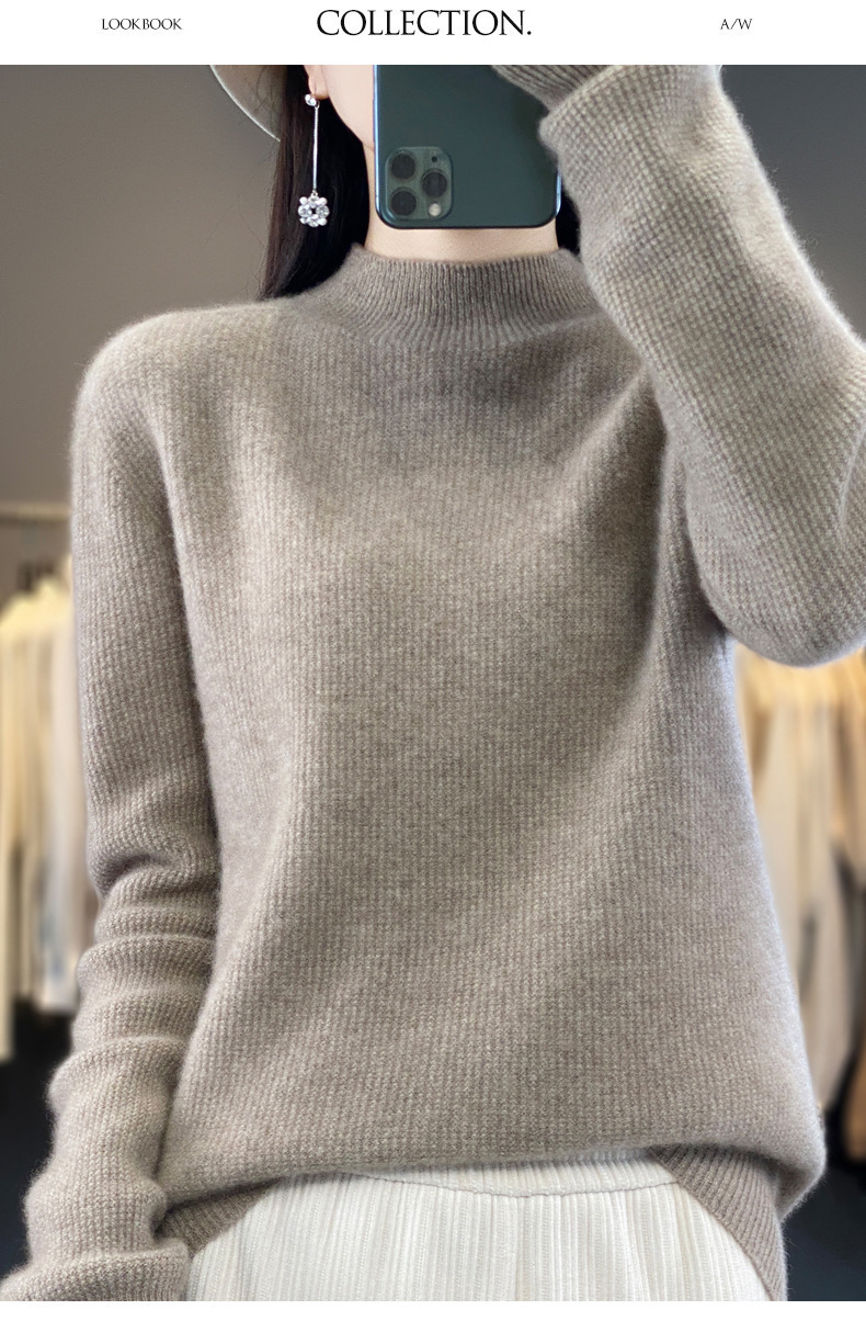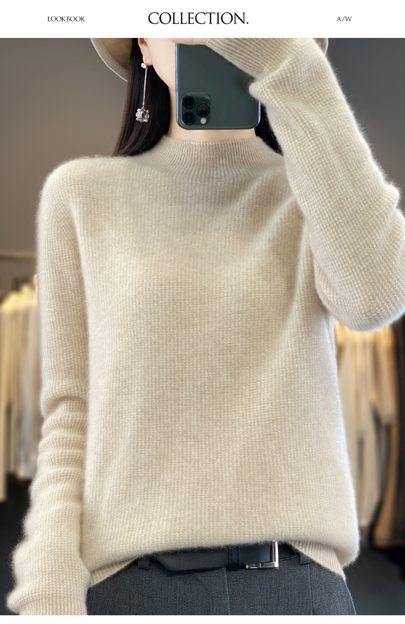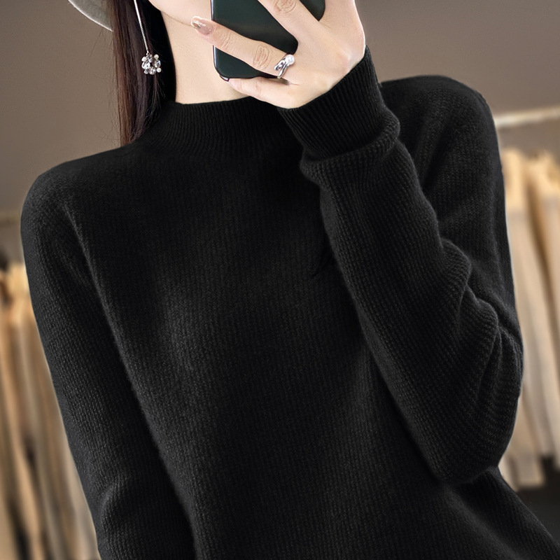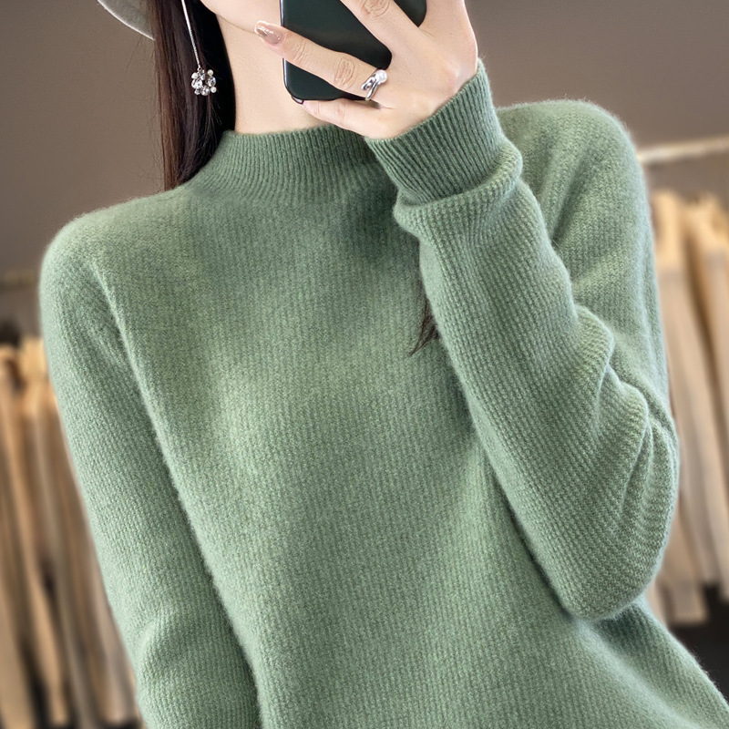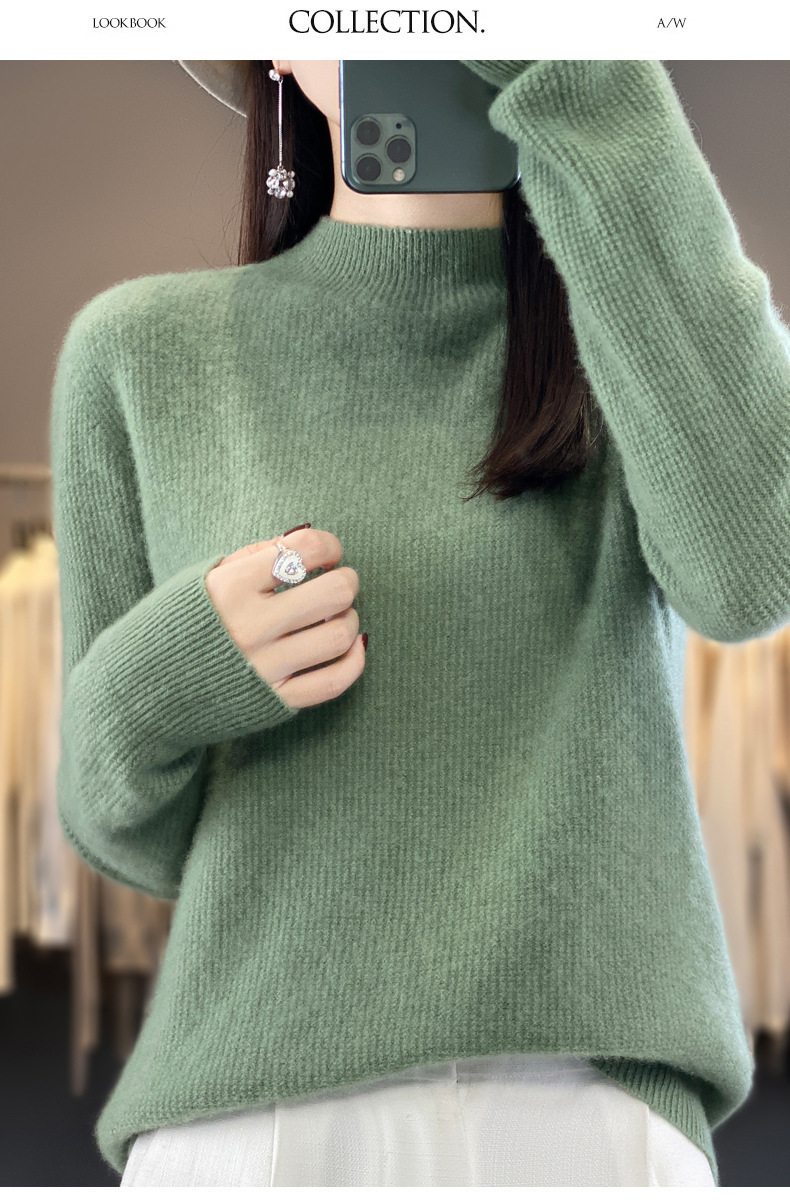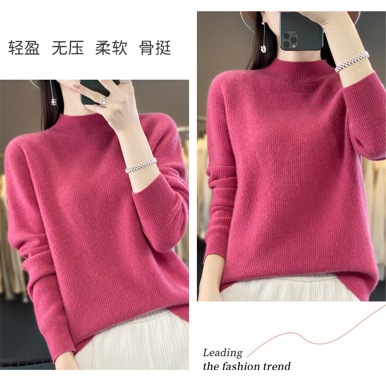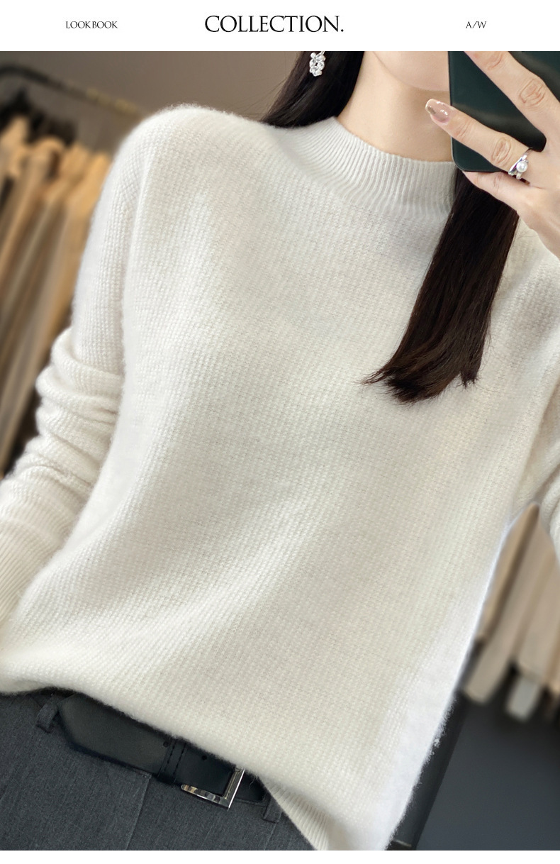 퍼스트 라인 의류 하프 하이 칼라 풀 울 스웨터 여성 가을 및 겨울 새로운 슬리밍 캐시미어 스웨터 울 니트 베이스 셔츠스토어 가기
