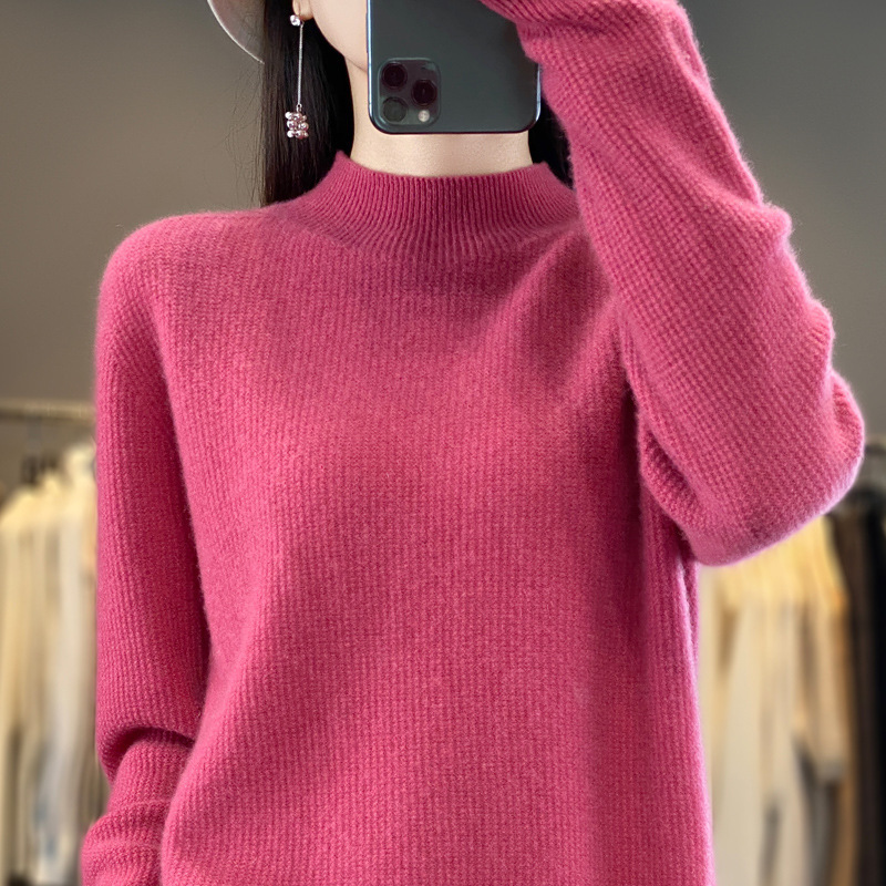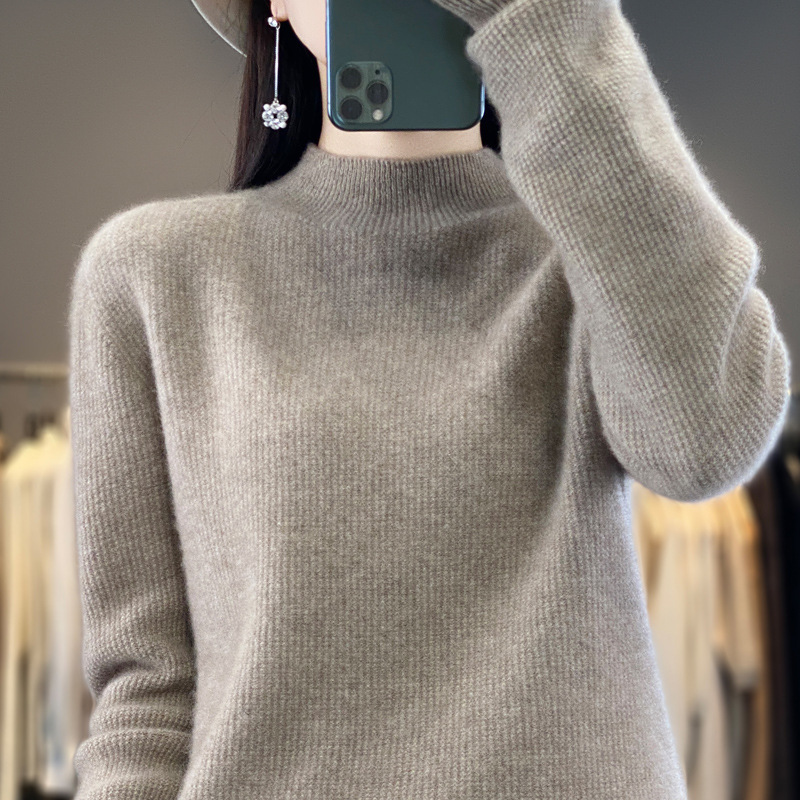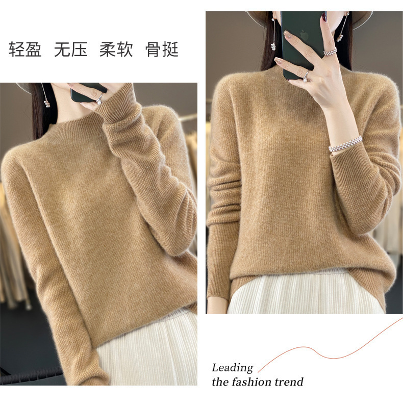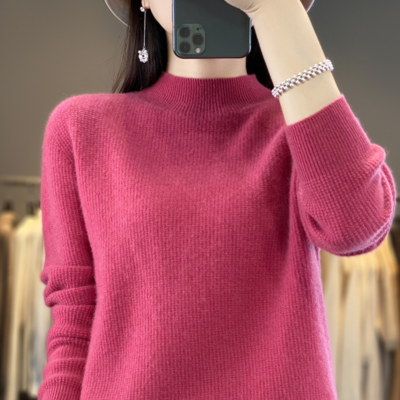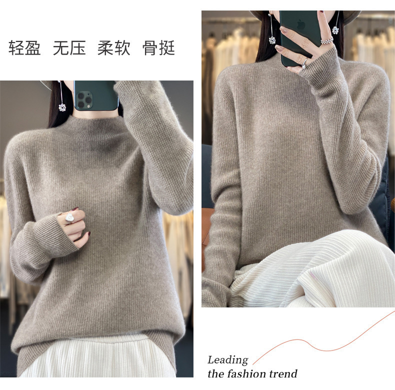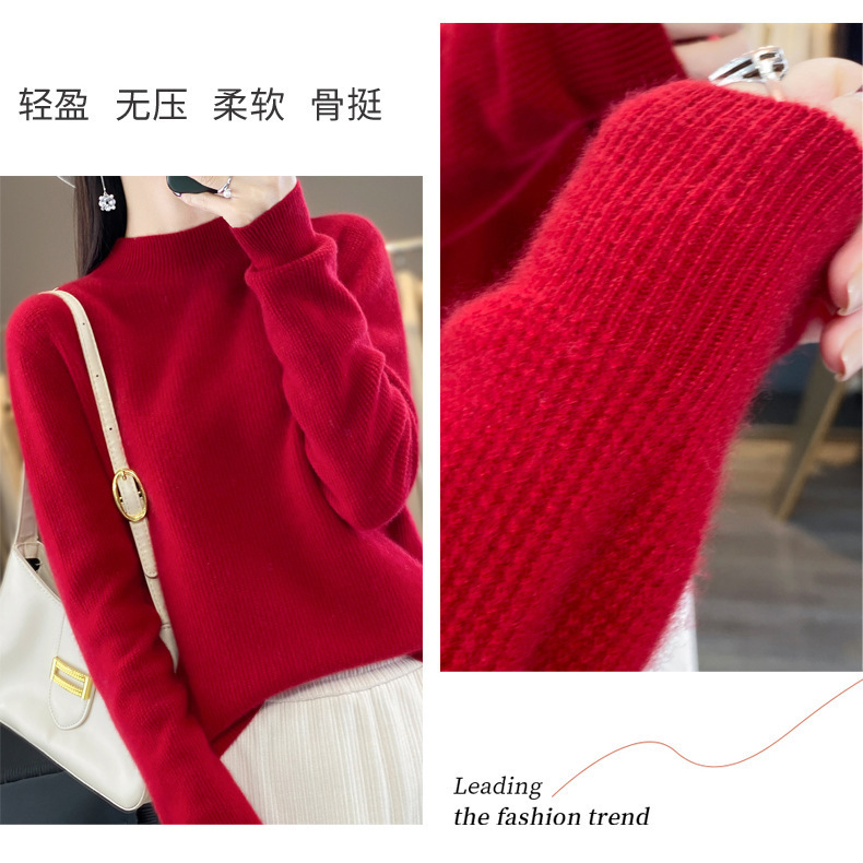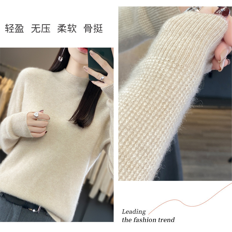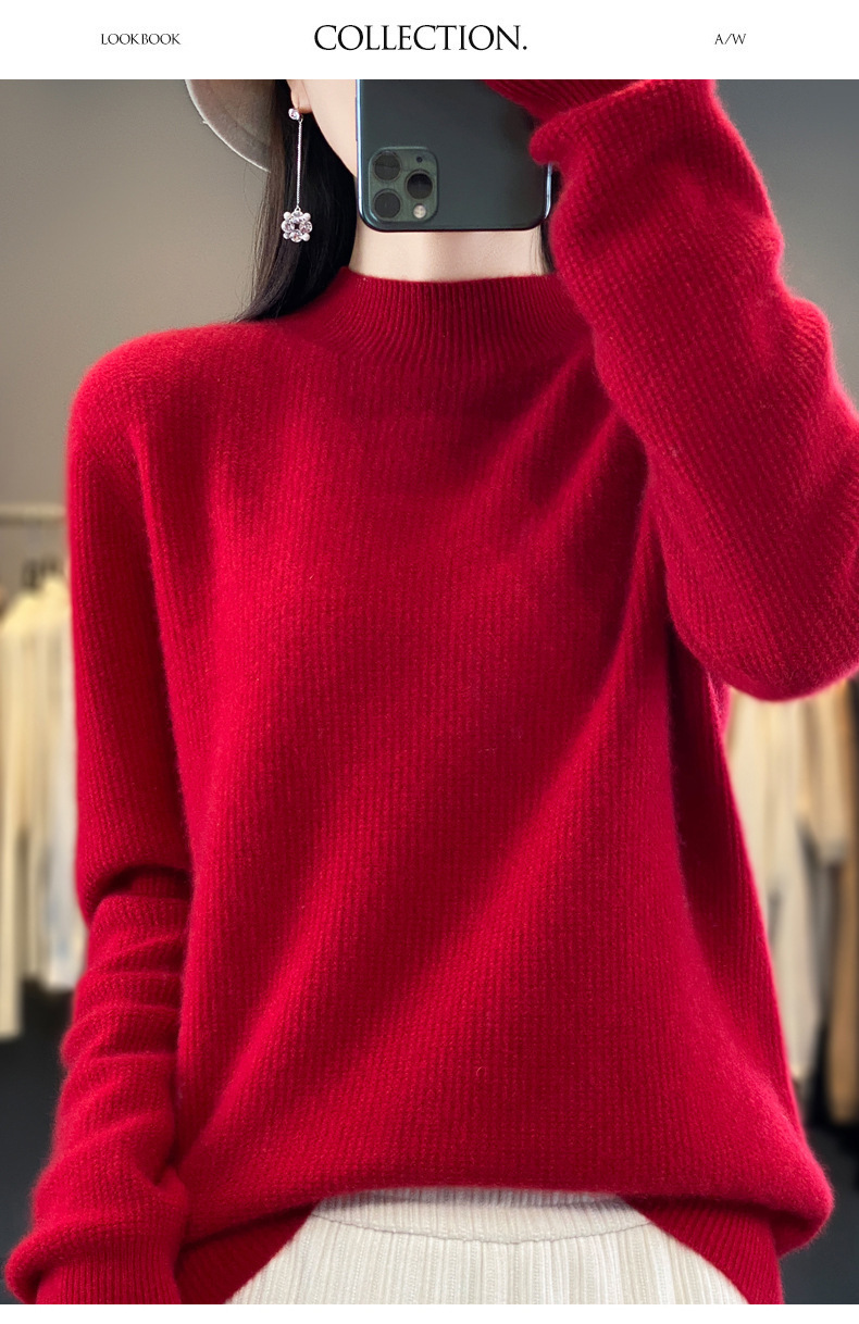 퍼스트 라인 의류 하프 하이 칼라 풀 울 스웨터 여성 가을 및 겨울 새로운 슬리밍 캐시미어 스웨터 울 니트 베이스 셔츠스토어 가기
