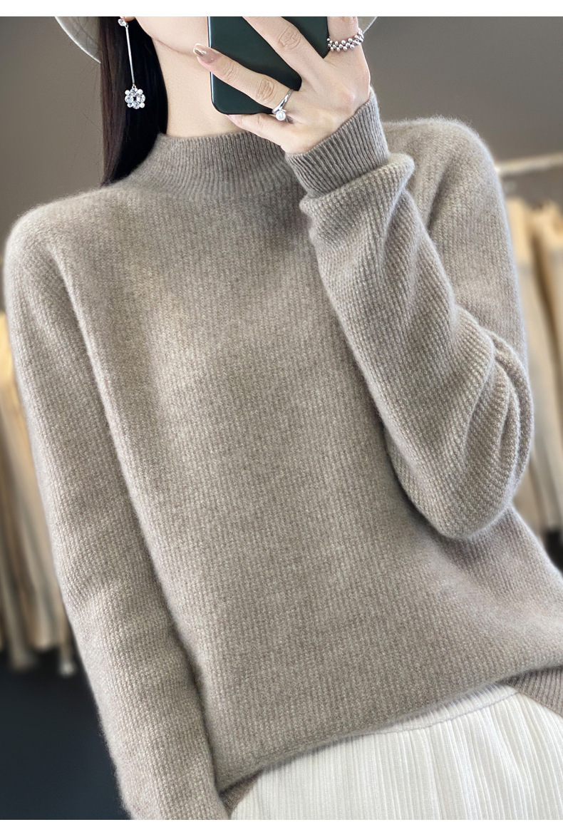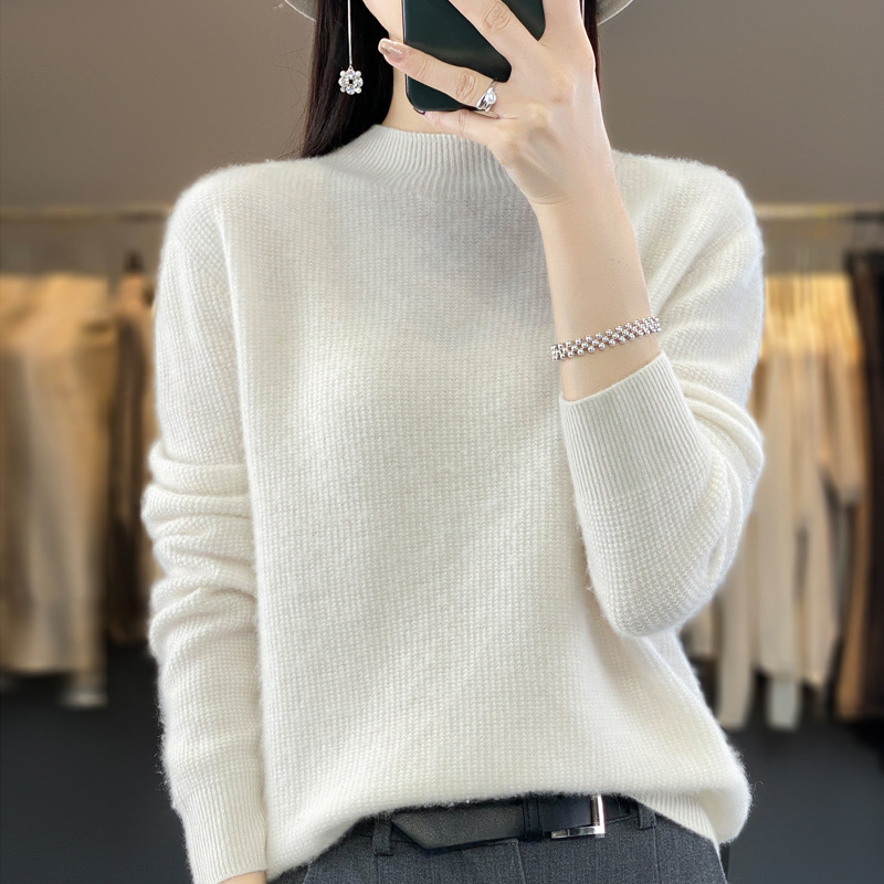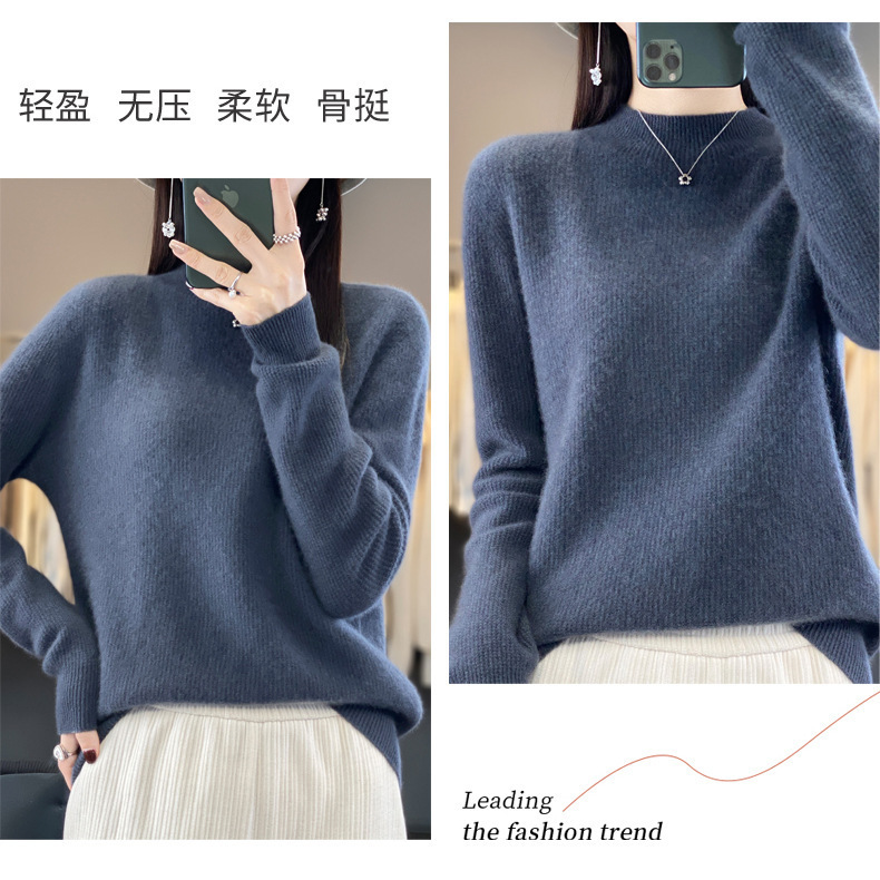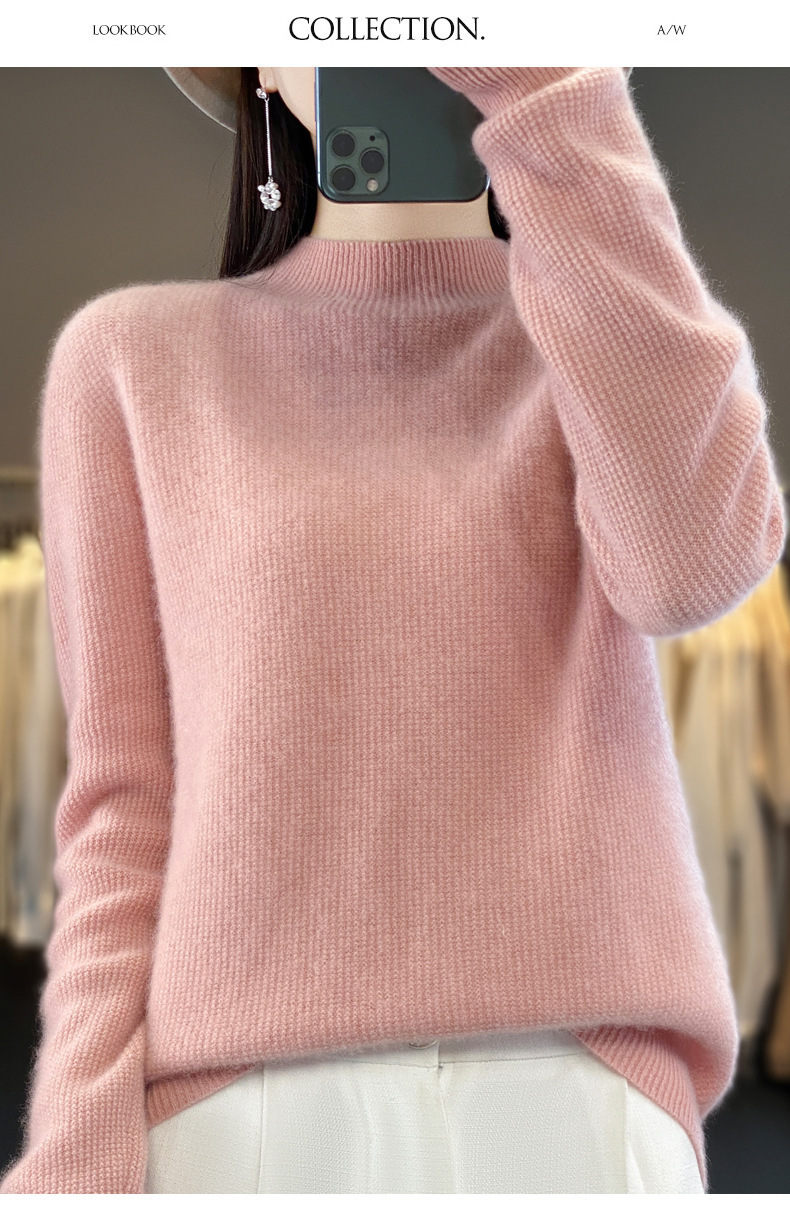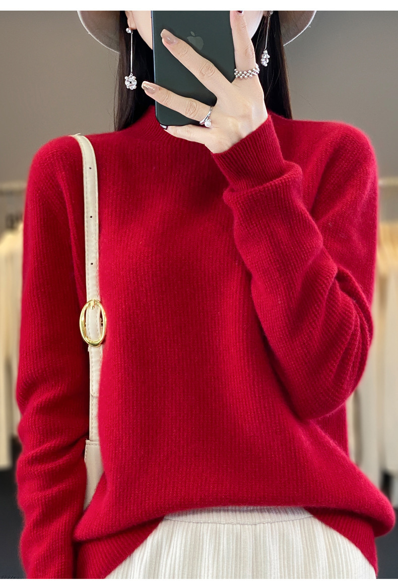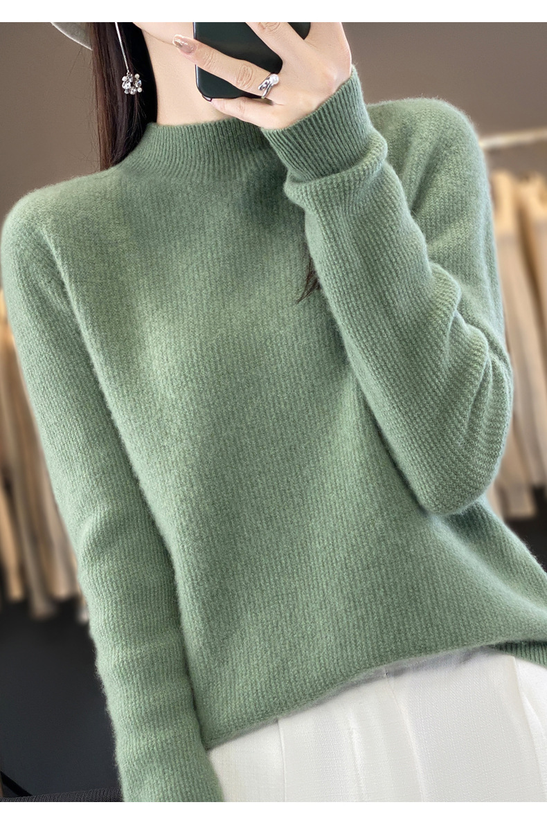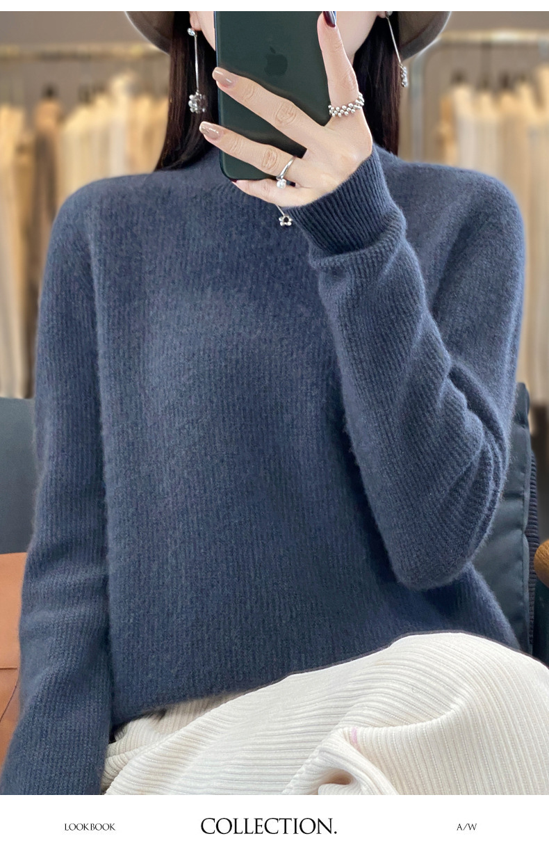 퍼스트 라인 의류 하프 하이 칼라 풀 울 스웨터 여성 가을 및 겨울 새로운 슬리밍 캐시미어 스웨터 울 니트 베이스 셔츠스토어 가기