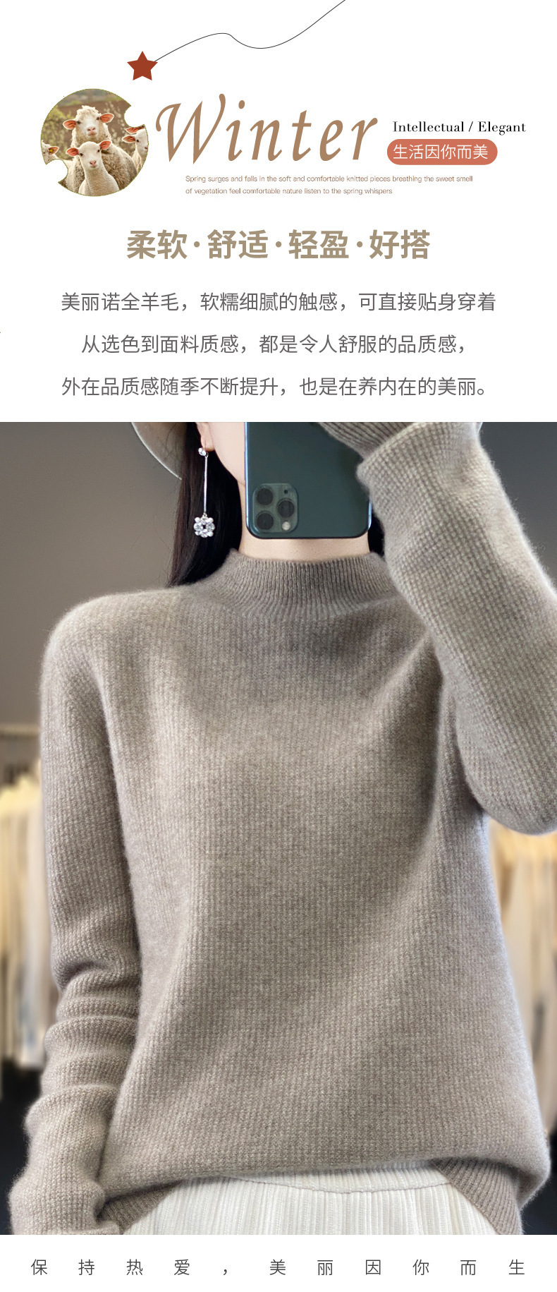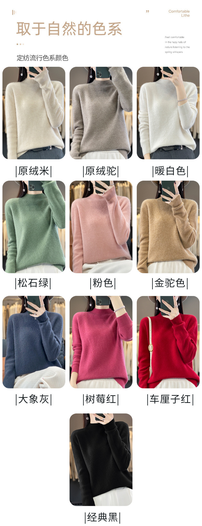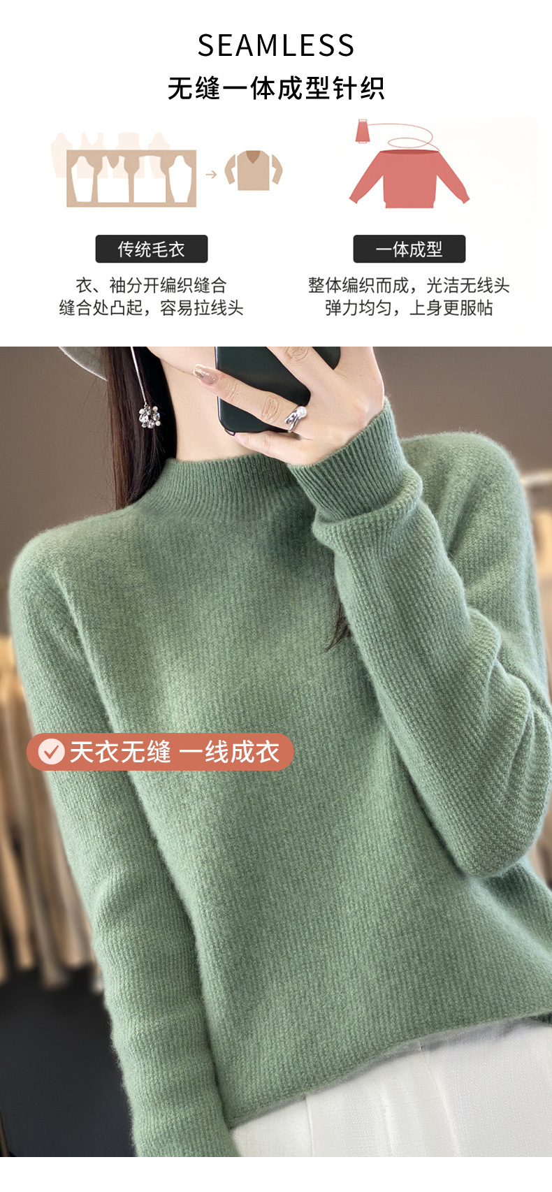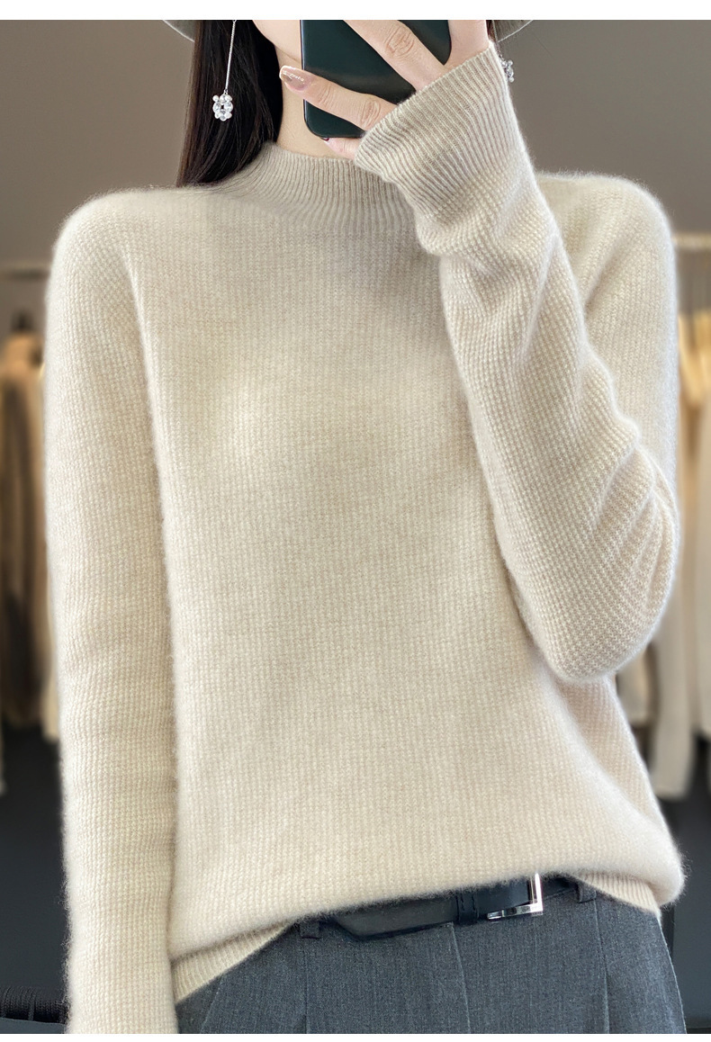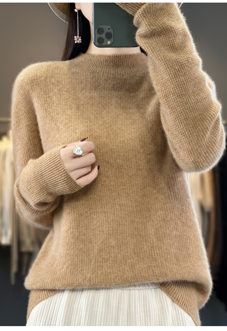 퍼스트 라인 의류 하프 하이 칼라 풀 울 스웨터 여성 가을 및 겨울 새로운 슬리밍 캐시미어 스웨터 울 니트 베이스 셔츠스토어 가기