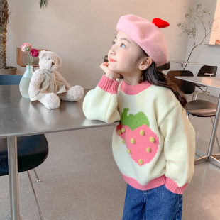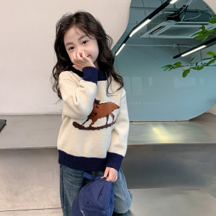 女童毛衣秋冬款2024新款女宝宝洋气卡通针织衫上衣冬季儿童打底衫