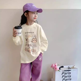 女童长袖t恤秋季2024新款儿童休闲宽松上衣中长款秋装儿童打底衫