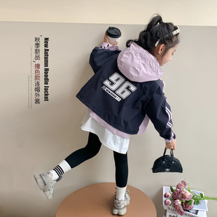 女童冲锋衣外套春秋款2024新款儿童秋季连帽上衣洋气时髦女孩秋装