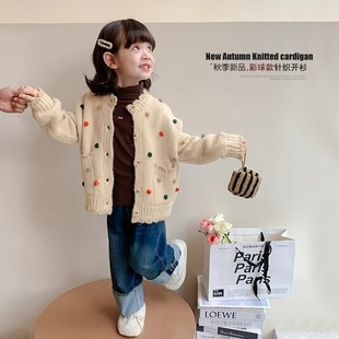 女童针织外套秋装2024新款韩版洋气女孩宽松休闲上衣儿童毛衣开衫