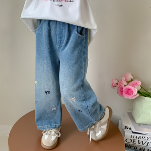 女童秋季牛仔裤2024新款儿童秋装直筒休闲款韩版女孩早秋阔腿裤子