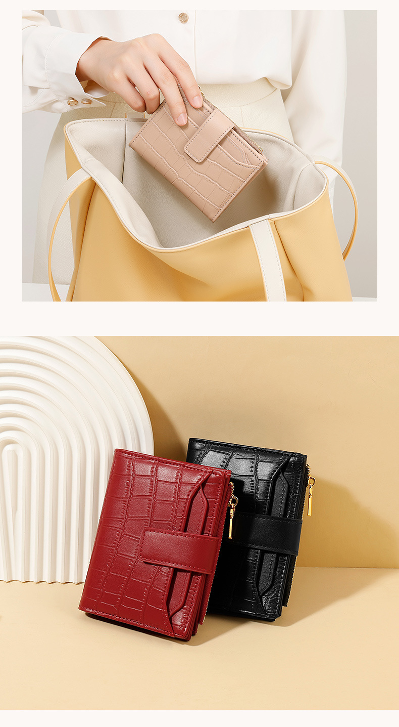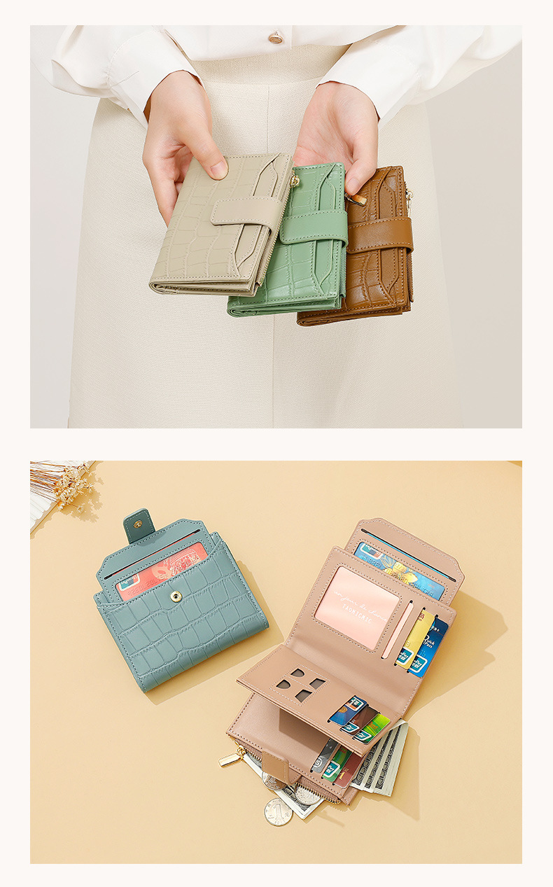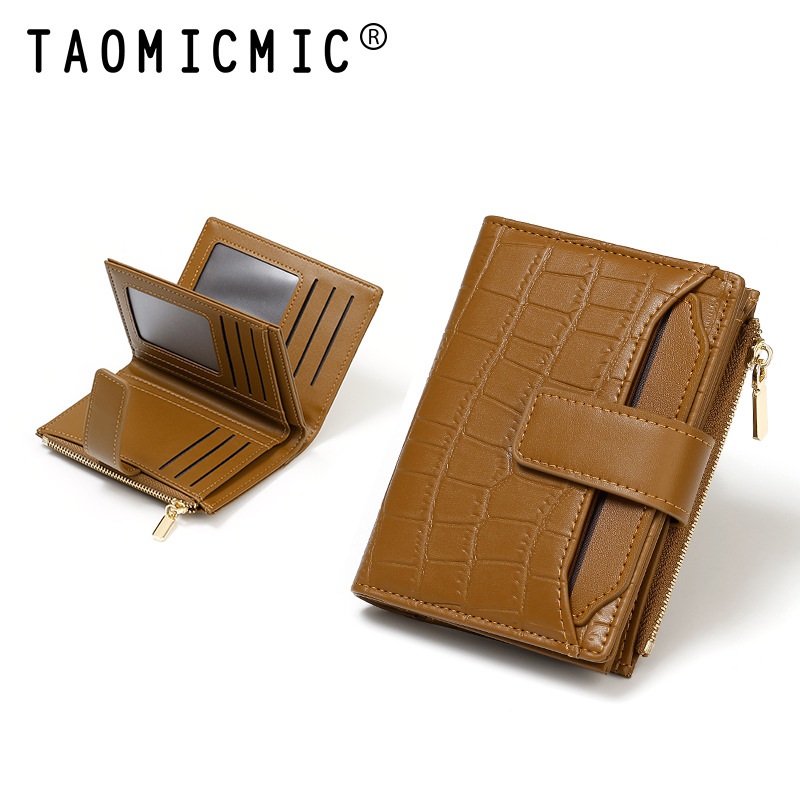 한국 스타일 새로운 여성의 돌 패턴 짧은 지갑 간단한 2 배 접이식 지퍼 멀티 카드 홀더 가죽 지갑스토어 가기