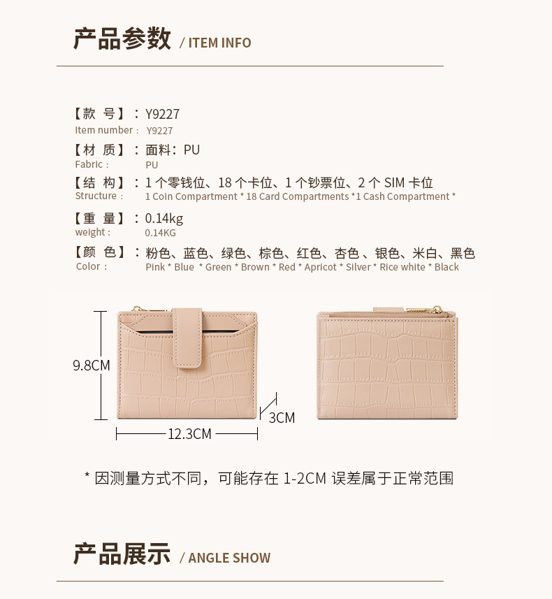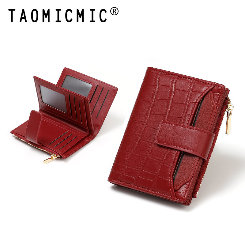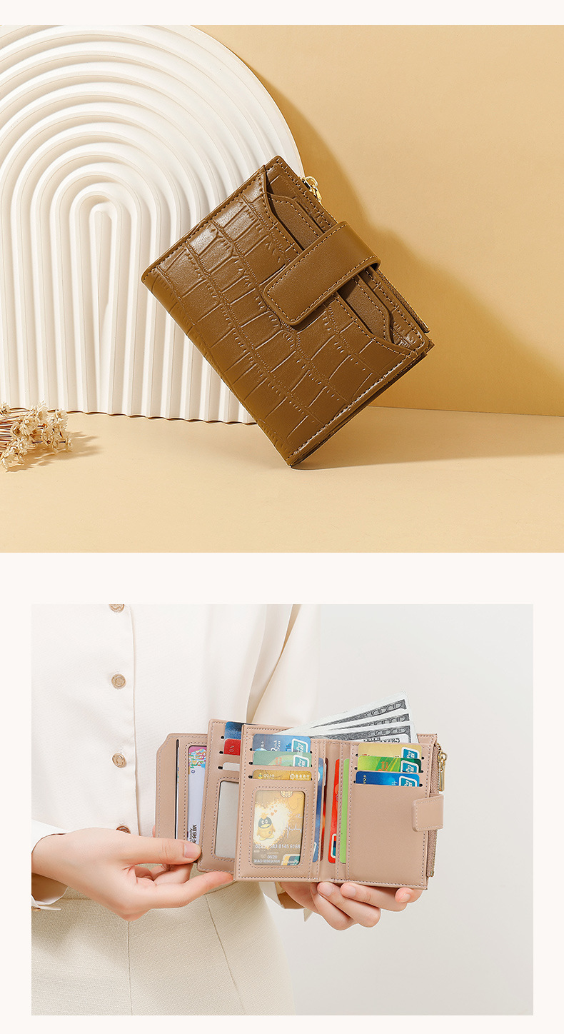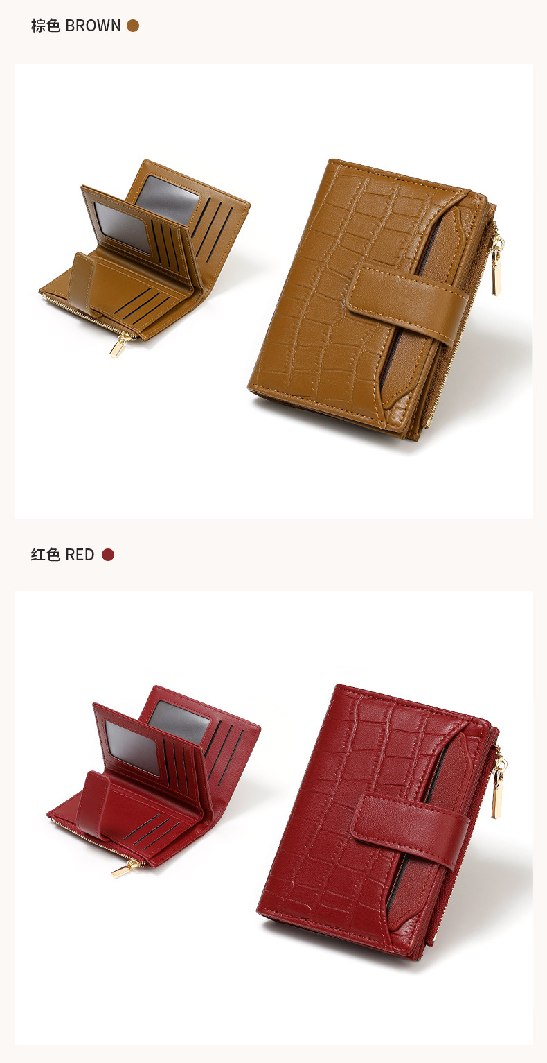 한국 스타일 새로운 여성의 돌 패턴 짧은 지갑 간단한 2 배 접이식 지퍼 멀티 카드 홀더 가죽 지갑스토어 가기