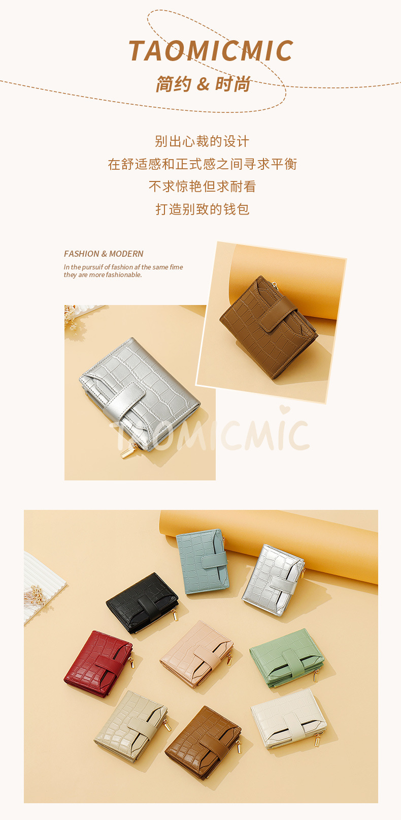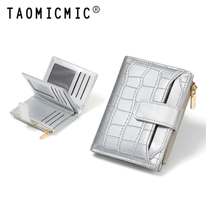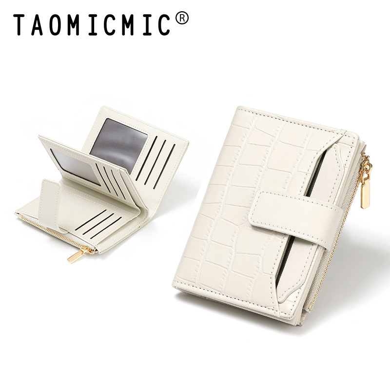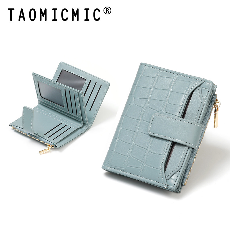 한국 스타일 새로운 여성의 돌 패턴 짧은 지갑 간단한 2 배 접이식 지퍼 멀티 카드 홀더 가죽 지갑