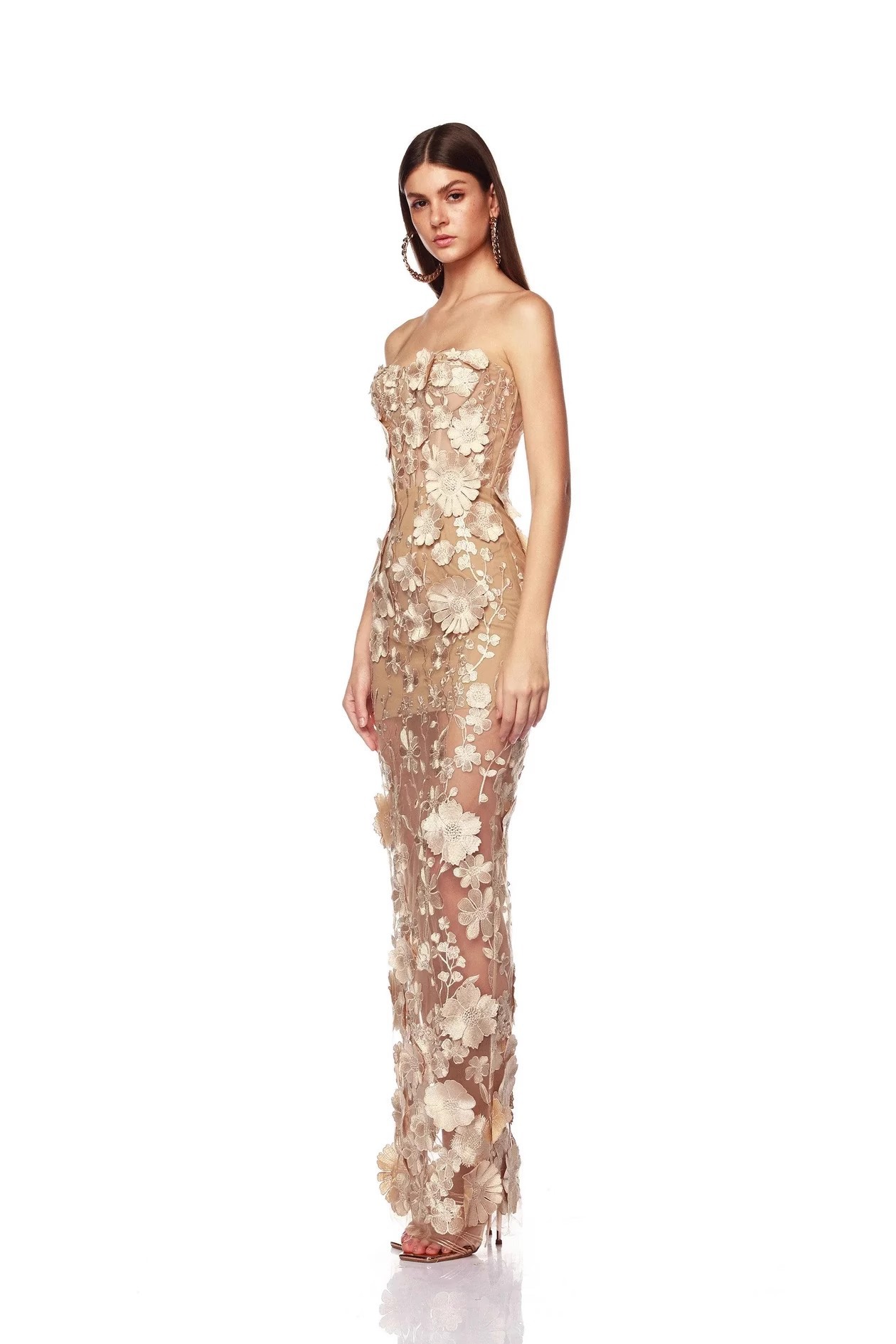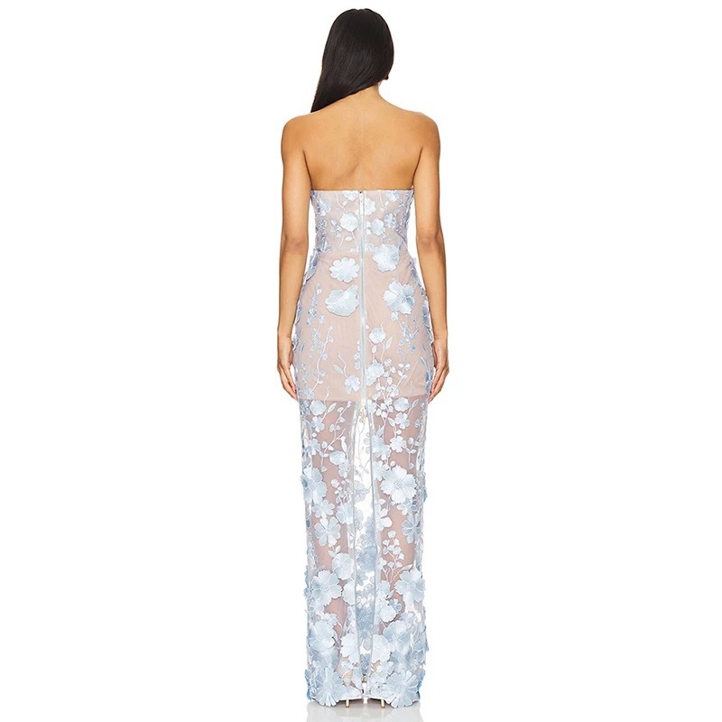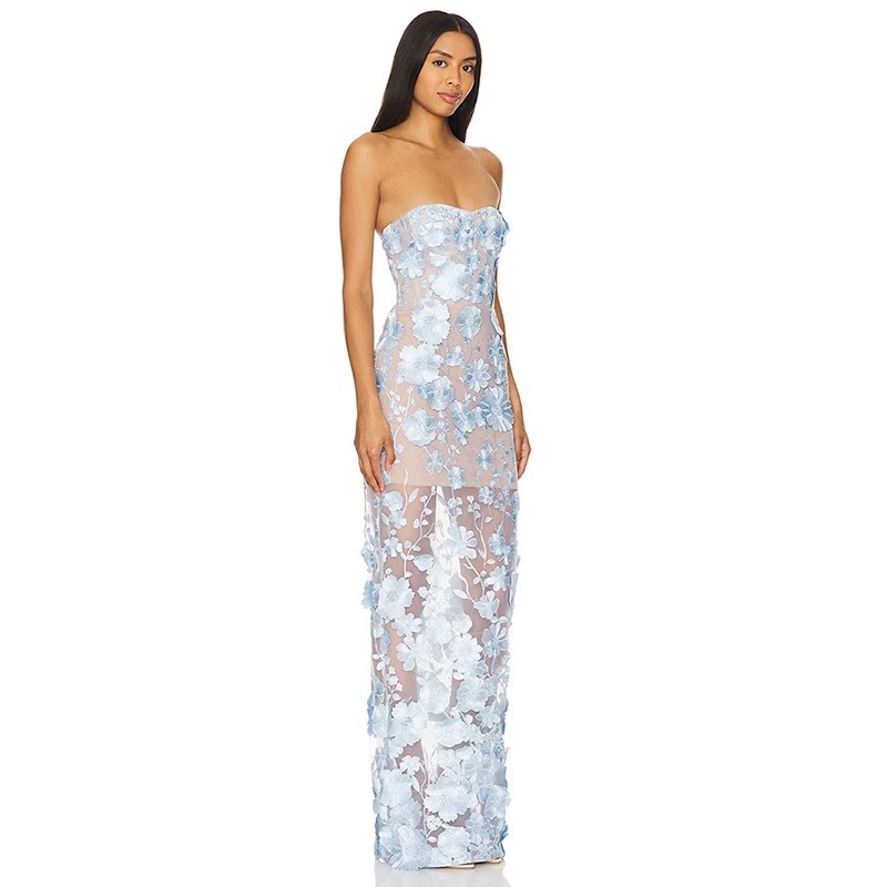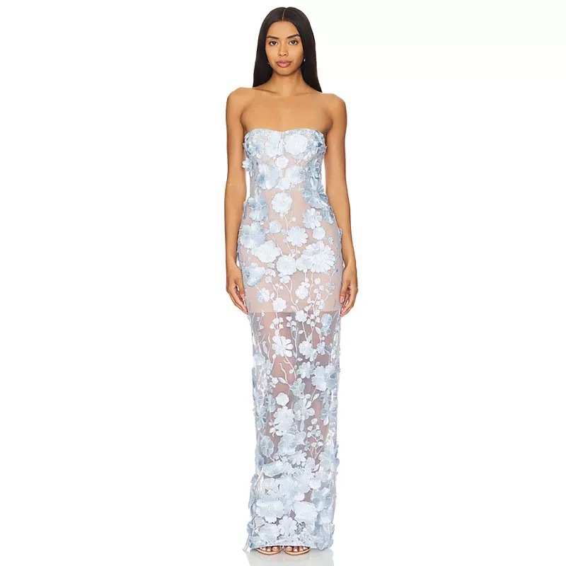 프랑스 스타일 빛 고급 고급 고급 3 차원 꽃 튜브 탑 원피스 아름다운 연예인 연회 원피스 2024 년 가을