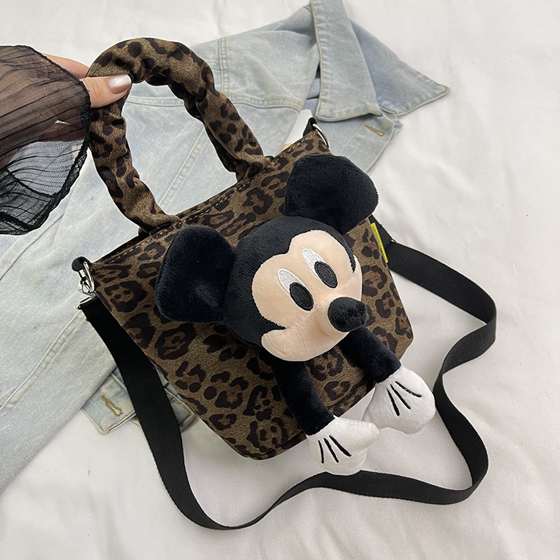 초인기 틈새시장 호피무늬 가방 여성용 2025 신상 가을 겨울 미키 인형 크로스백 패션 핸드백 버킷백