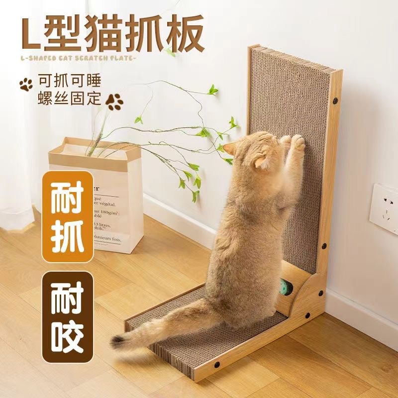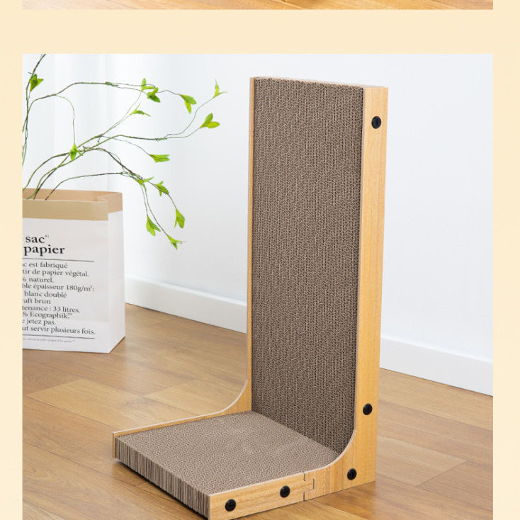 L자형 고양이 스크래치 보드, 스탠드형, 깨지지 않는 나무 고양이 스크래치 웨이브, 발톱 갈이기, 셀프 휴식 고양이 장난감, 캣닢 포함스토어 가기