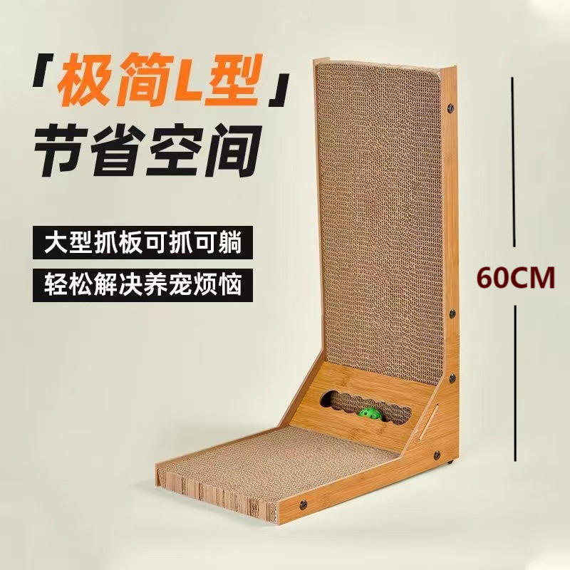 L자형 고양이 스크래치 보드, 스탠드형, 깨지지 않는 나무 고양이 스크래치 웨이브, 발톱 갈이기, 셀프 휴식 고양이 장난감, 캣닢 포함