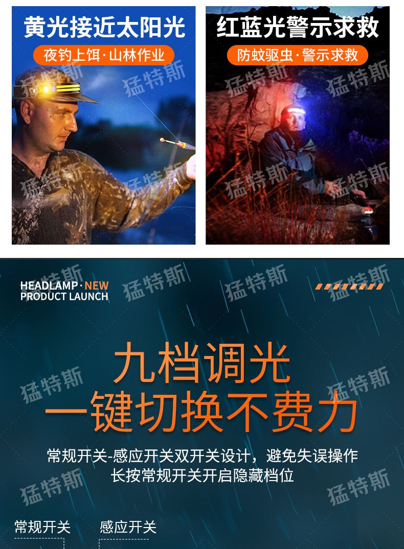 LED 유도 전조등 강한 조명 충전 야간 낚시 전용 야외 등산 슈퍼 밝은 머리 작업 램프 조명