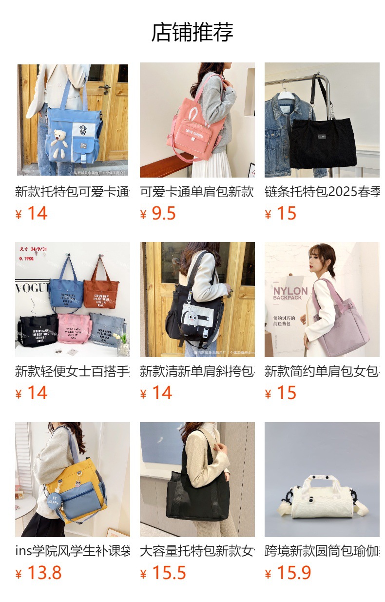 국경을 넘는 대용량 토트백, 새로운 여성용 가방, 캐주얼하고 심플한 핸드백, 패셔너블하고 다재다능한 경량 나일론 숄더백스토어 가기