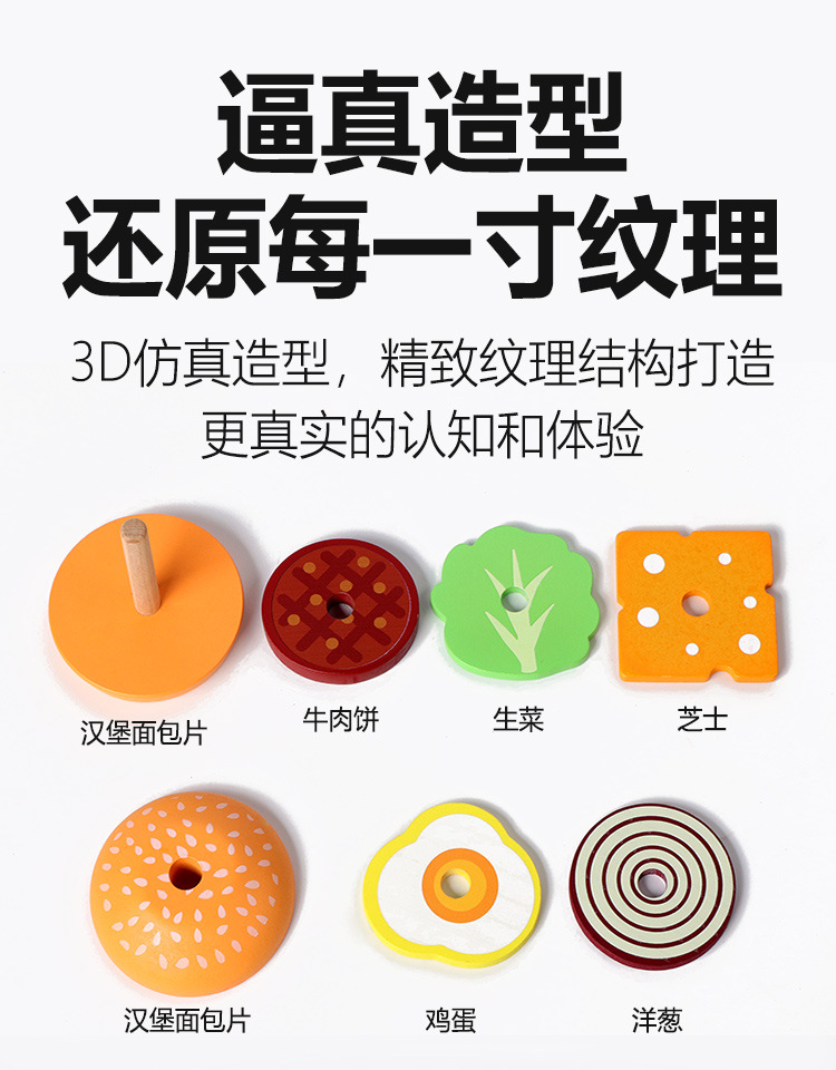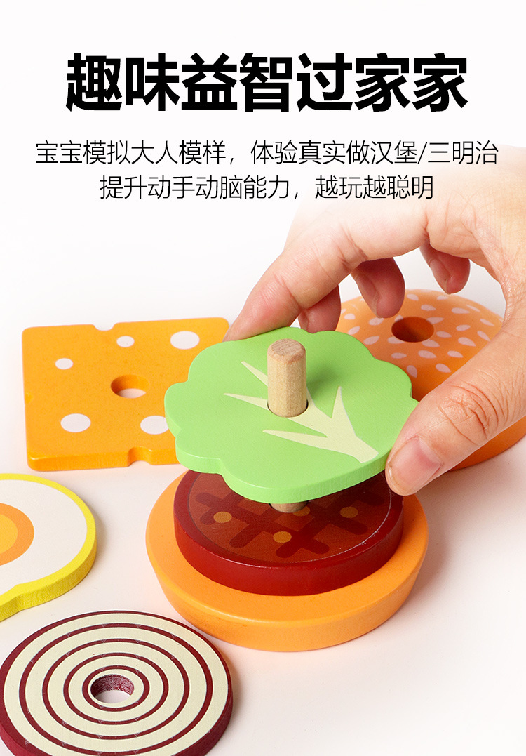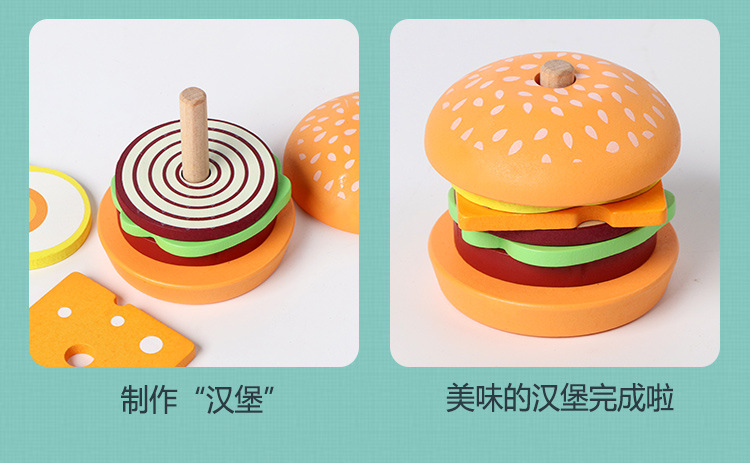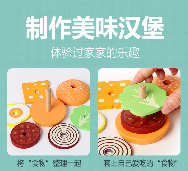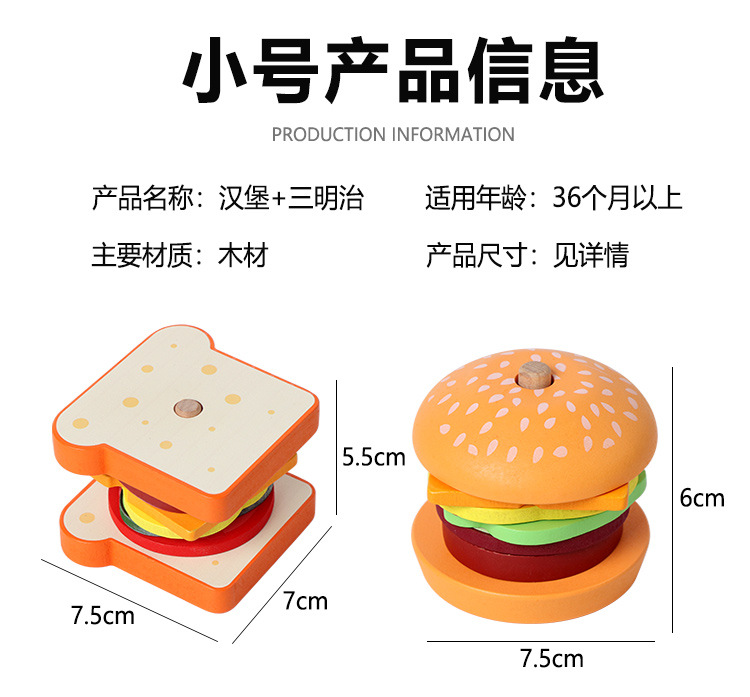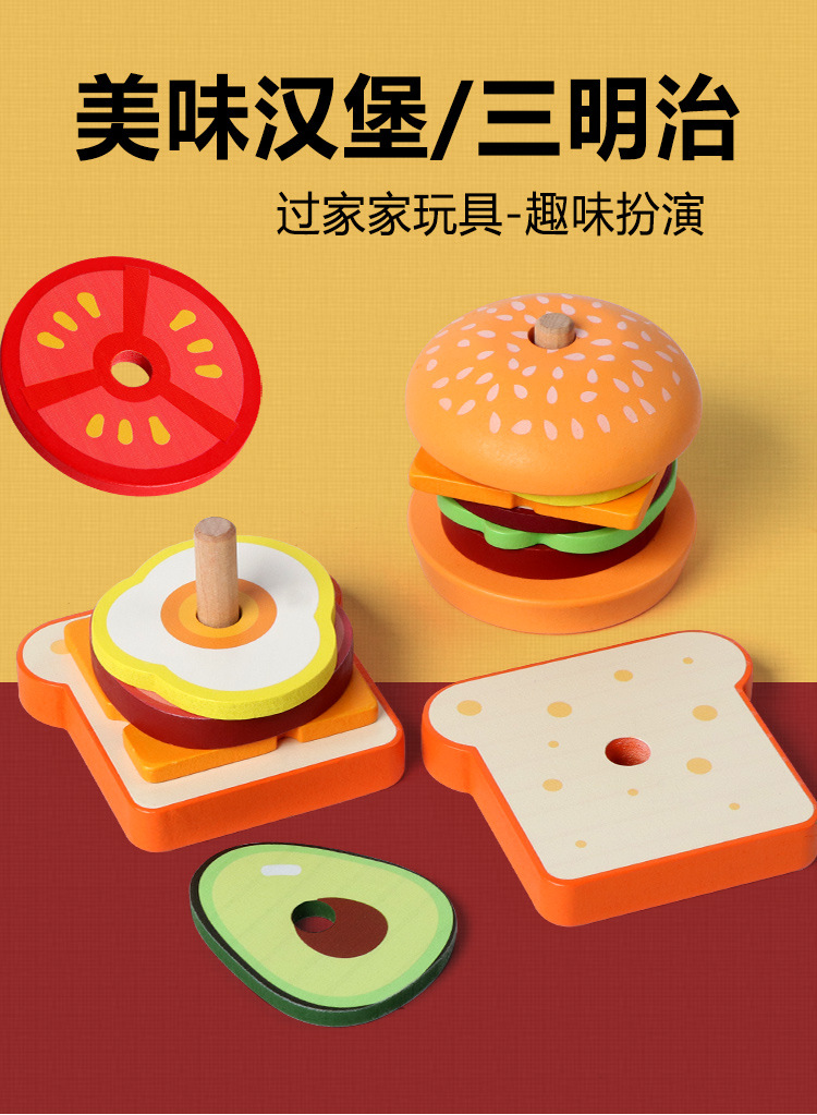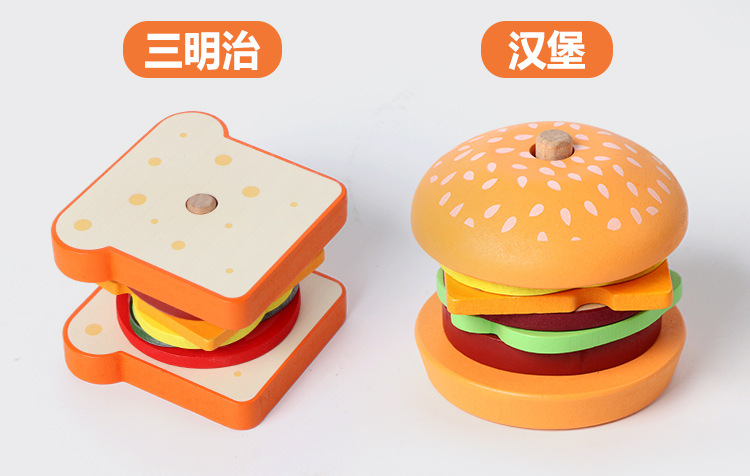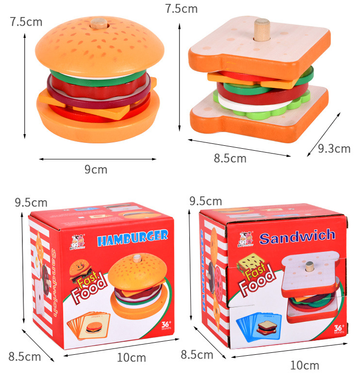 딩니우 나무 장난감 소형 햄버거 샌드위치 역할놀이 장난감 시뮬레이션 주방 부모-자녀 상호작용 엔터테인먼트 게임스토어 가기