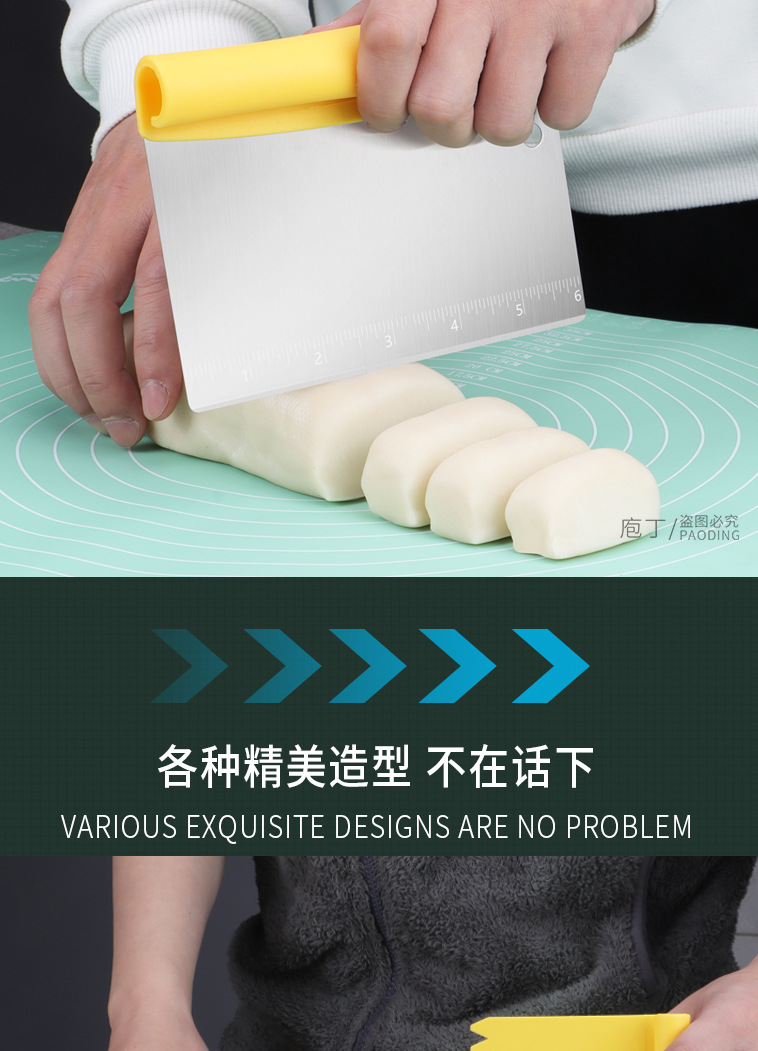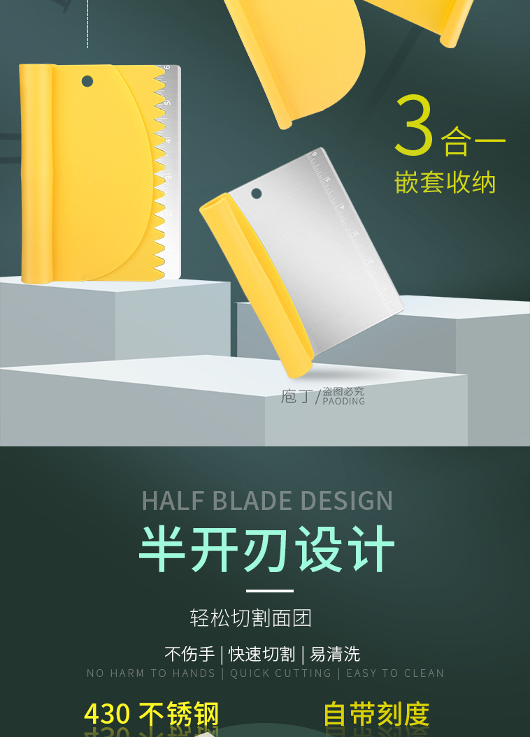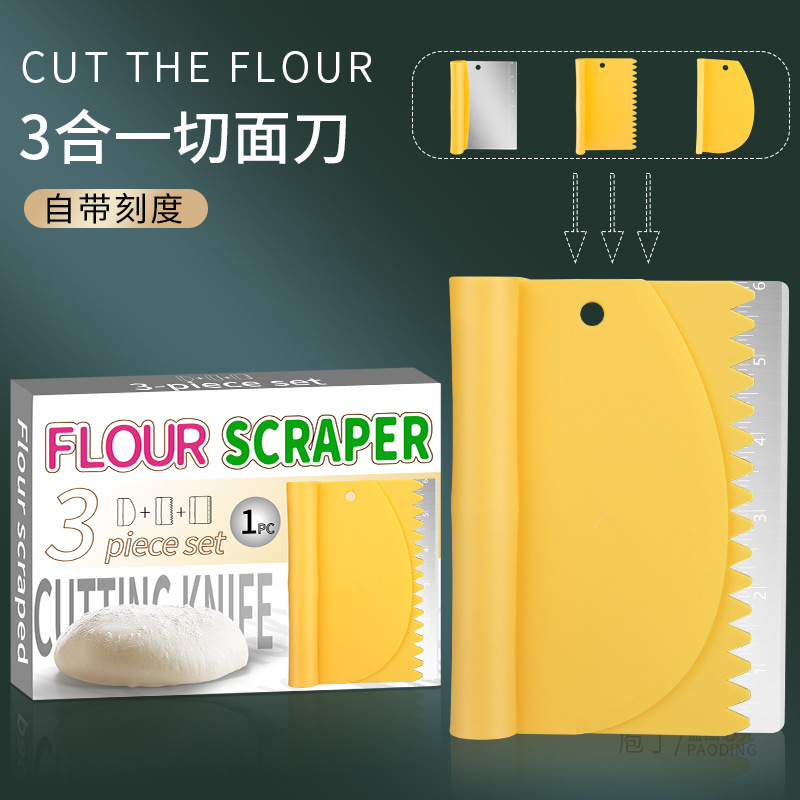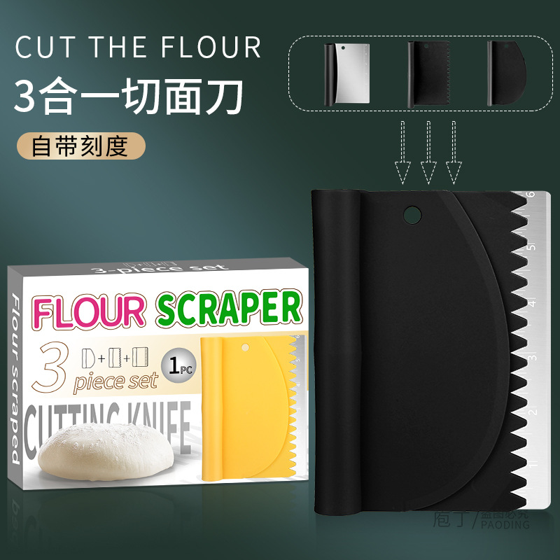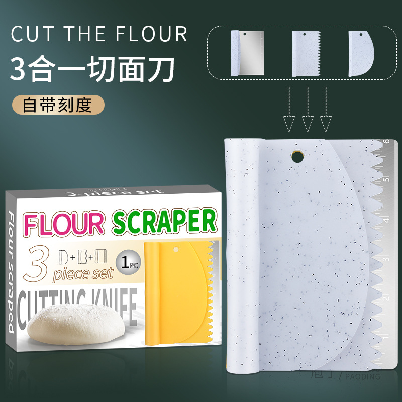 3-in-1 밀가루 절단 스크레이퍼 스테인레스 스틸 반죽 커터 스케일 커터 반날 밀가루 스크레이퍼 베이킹 도구