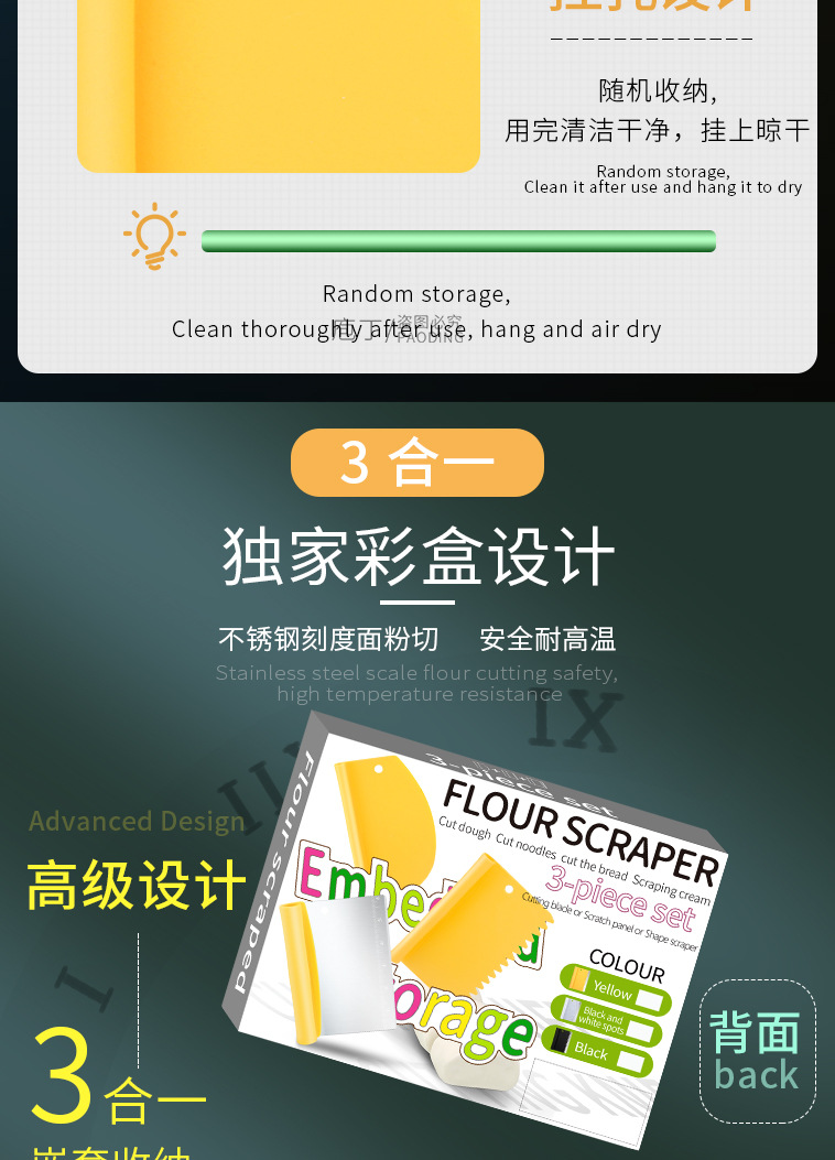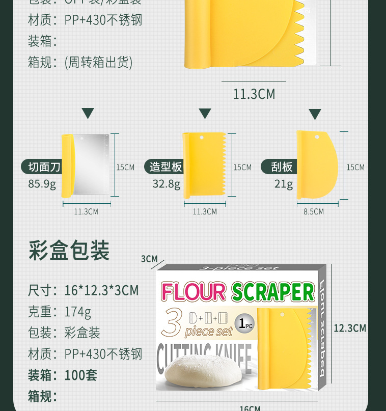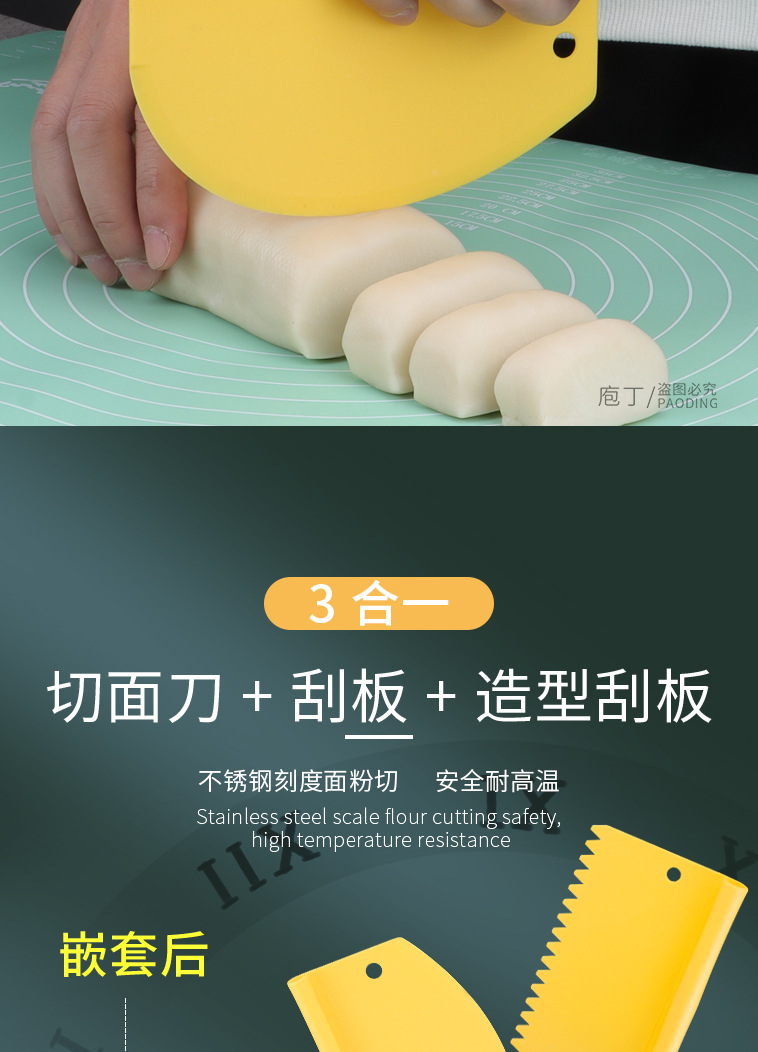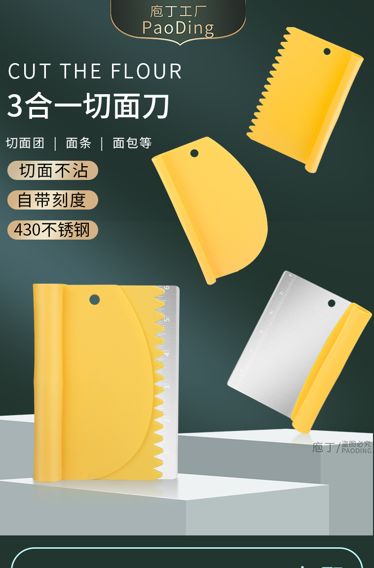 3-in-1 밀가루 절단 스크레이퍼 스테인레스 스틸 반죽 커터 스케일 커터 반날 밀가루 스크레이퍼 베이킹 도구