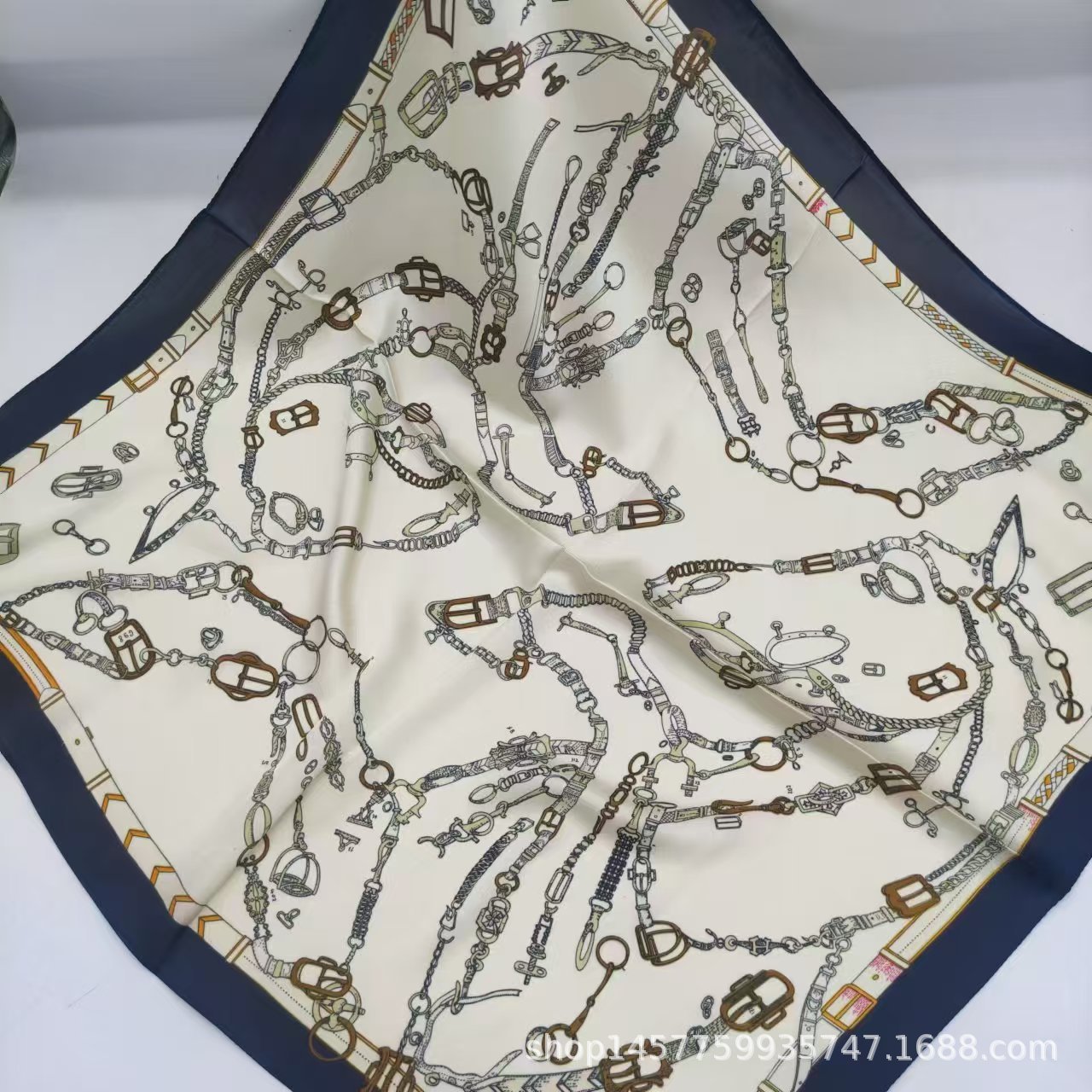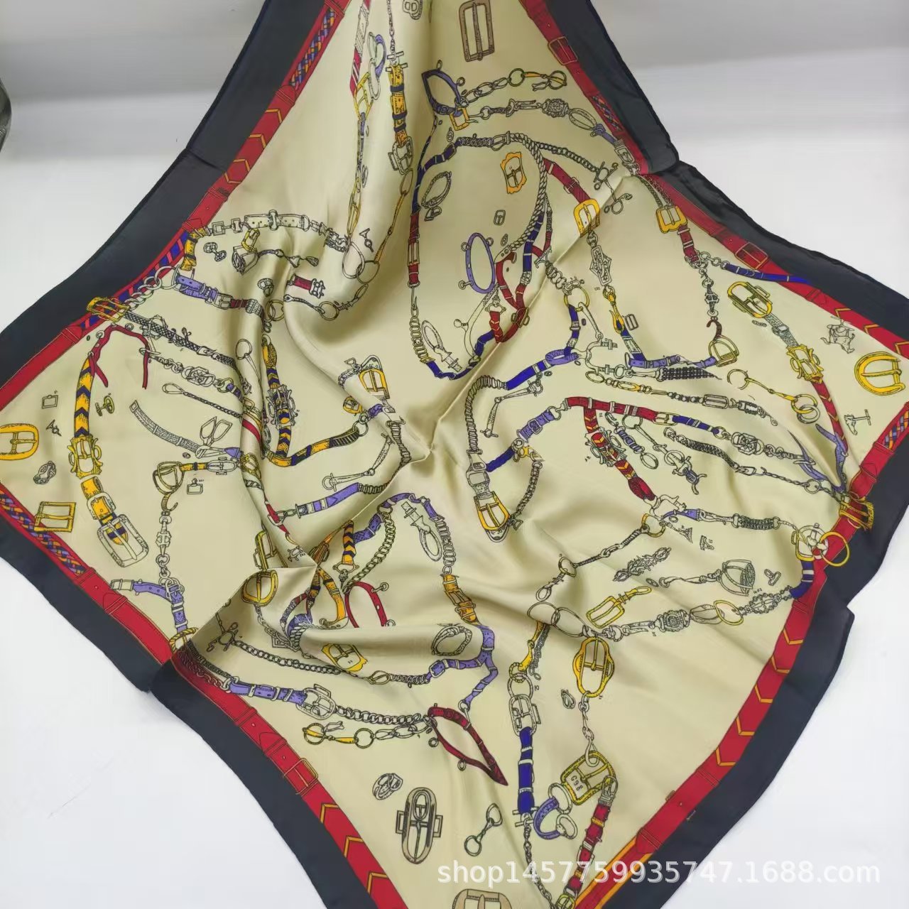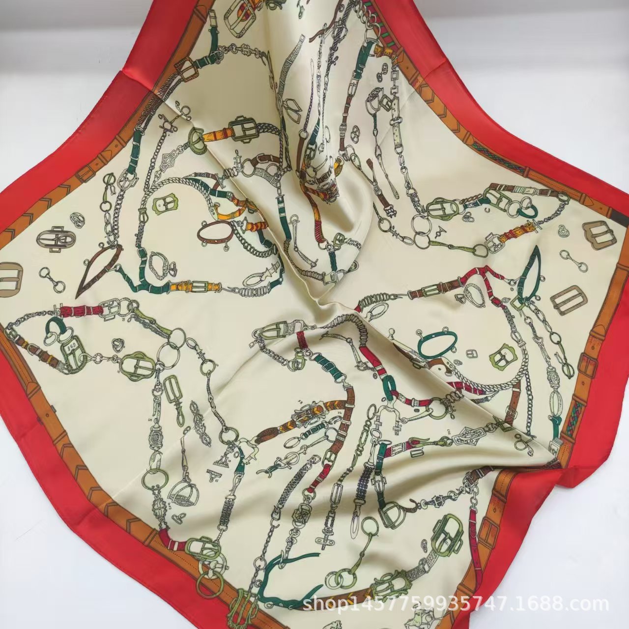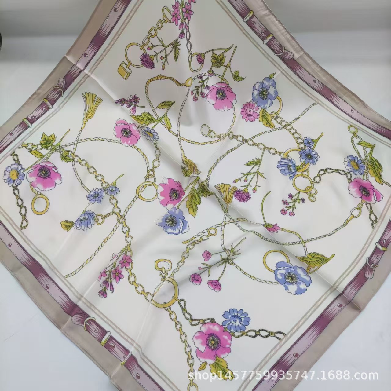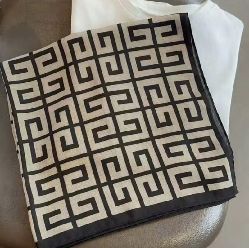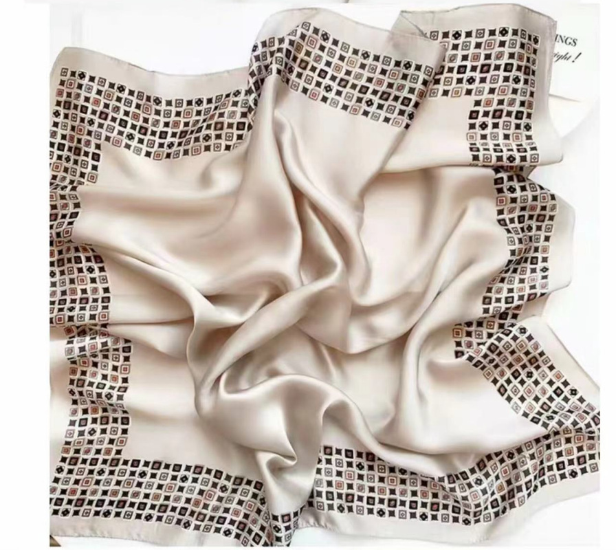 • 베이지색 사각형 실크 스카프 작은 사각형 스카프