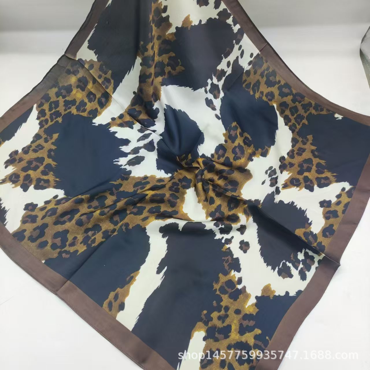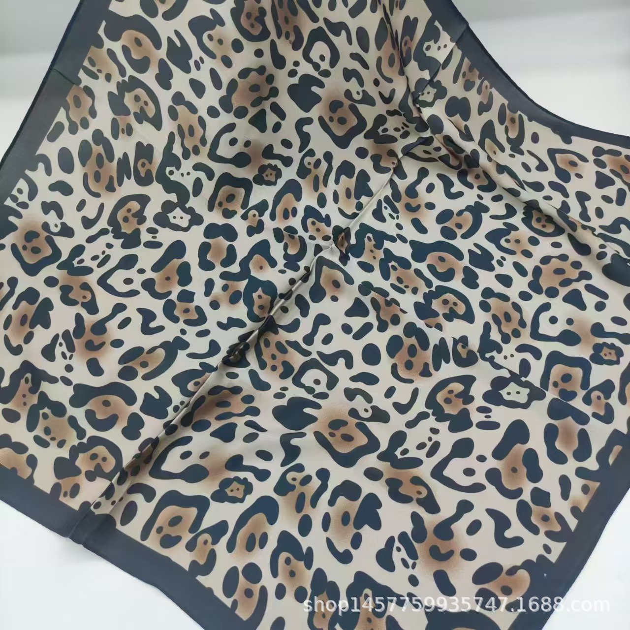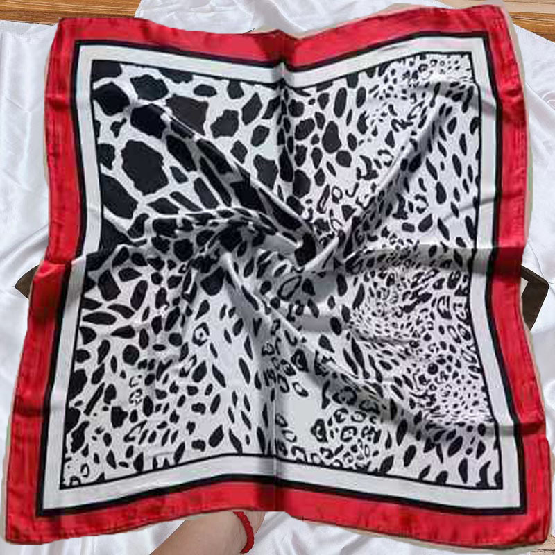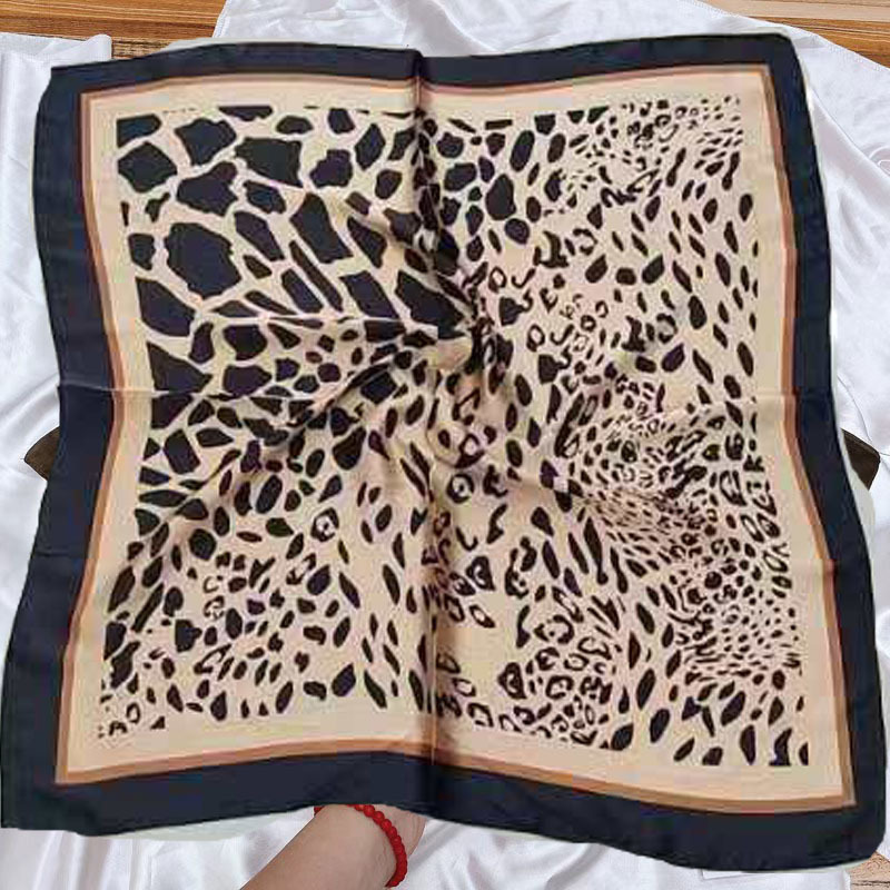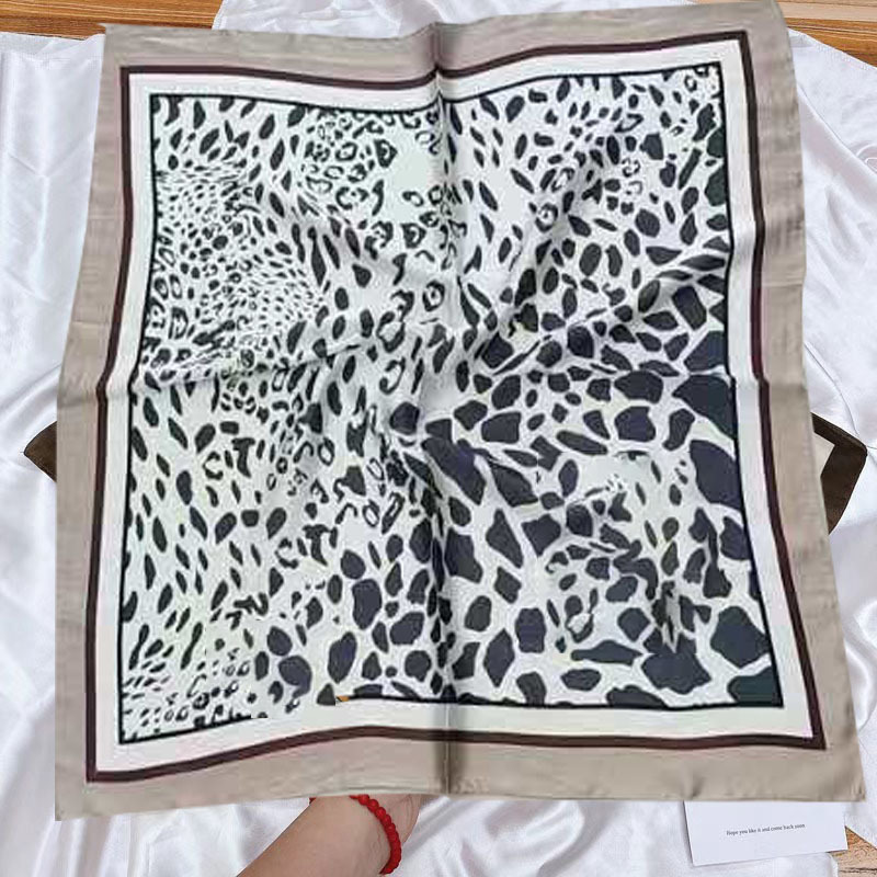 • 유럽과 미국의 표범 무늬 미색 실크 스카프 작은 사각형 스카프