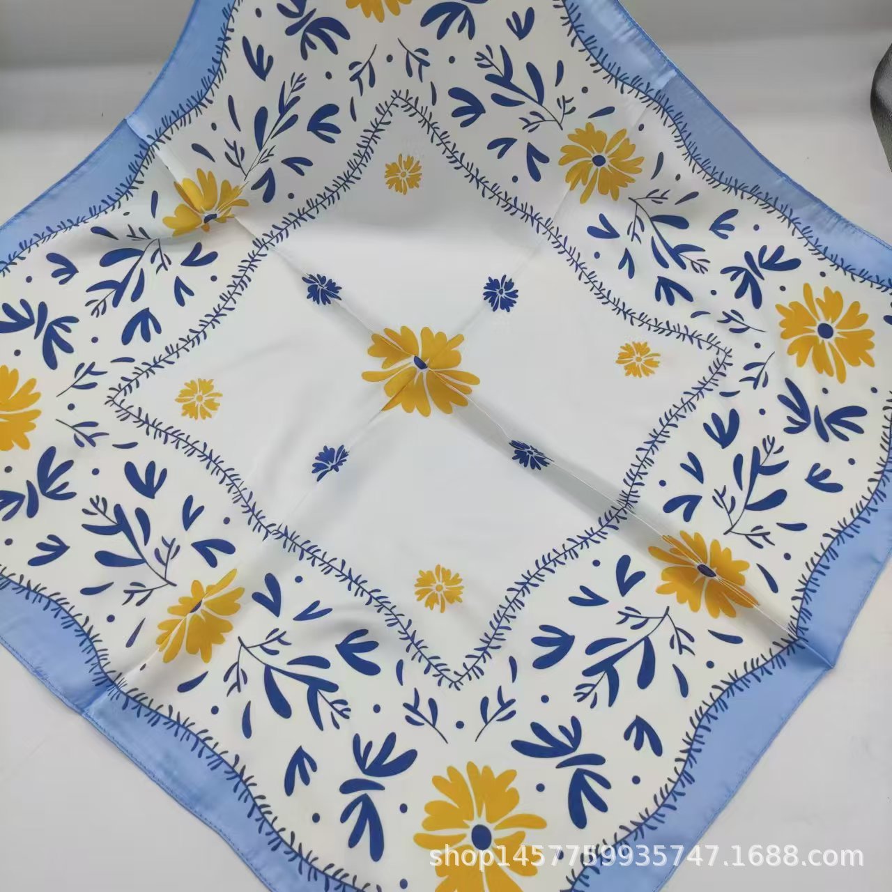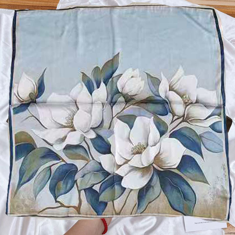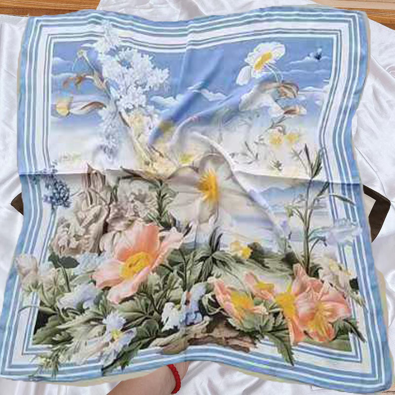 • 푸른 하늘 꽃 실크 스카프 작은 사각형 스카프