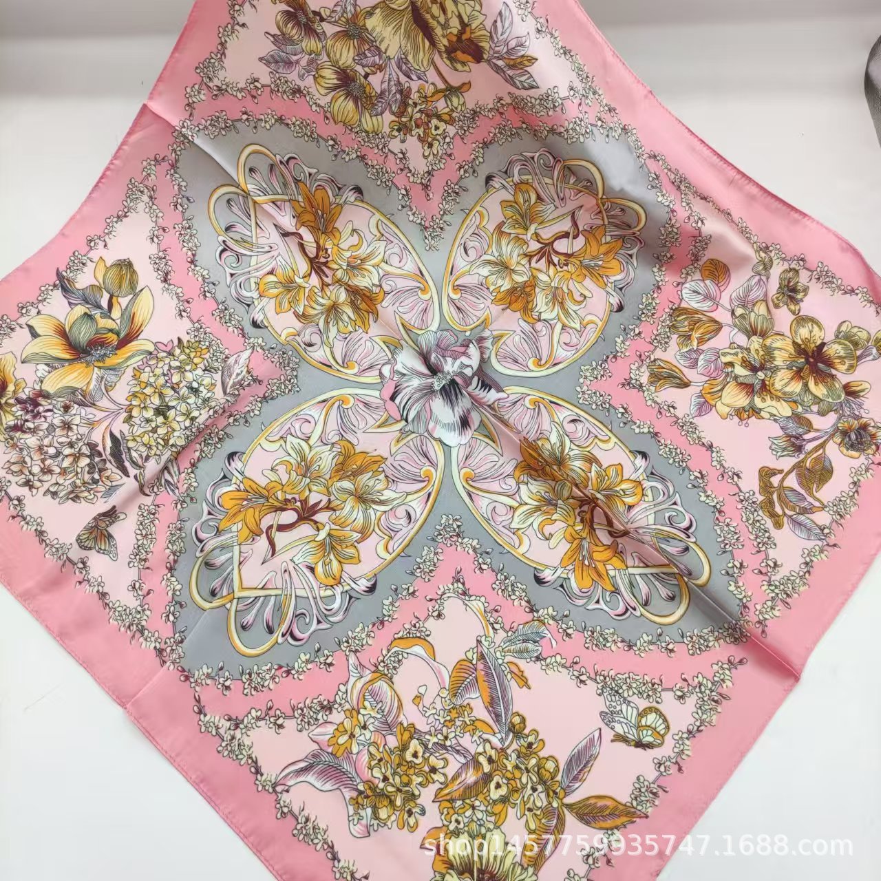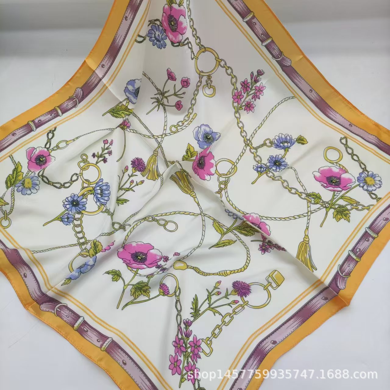 • 황금 꽃 바다 실크 스카프 작은 사각형 스카프