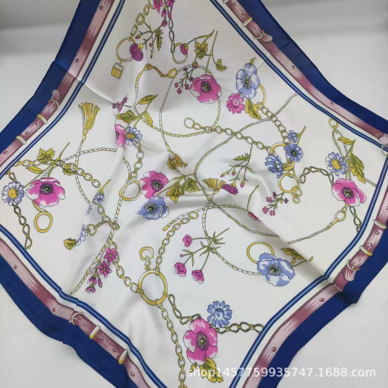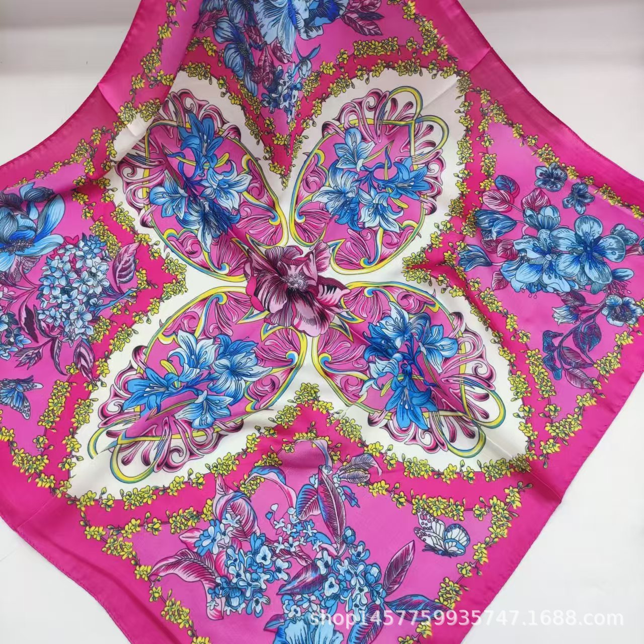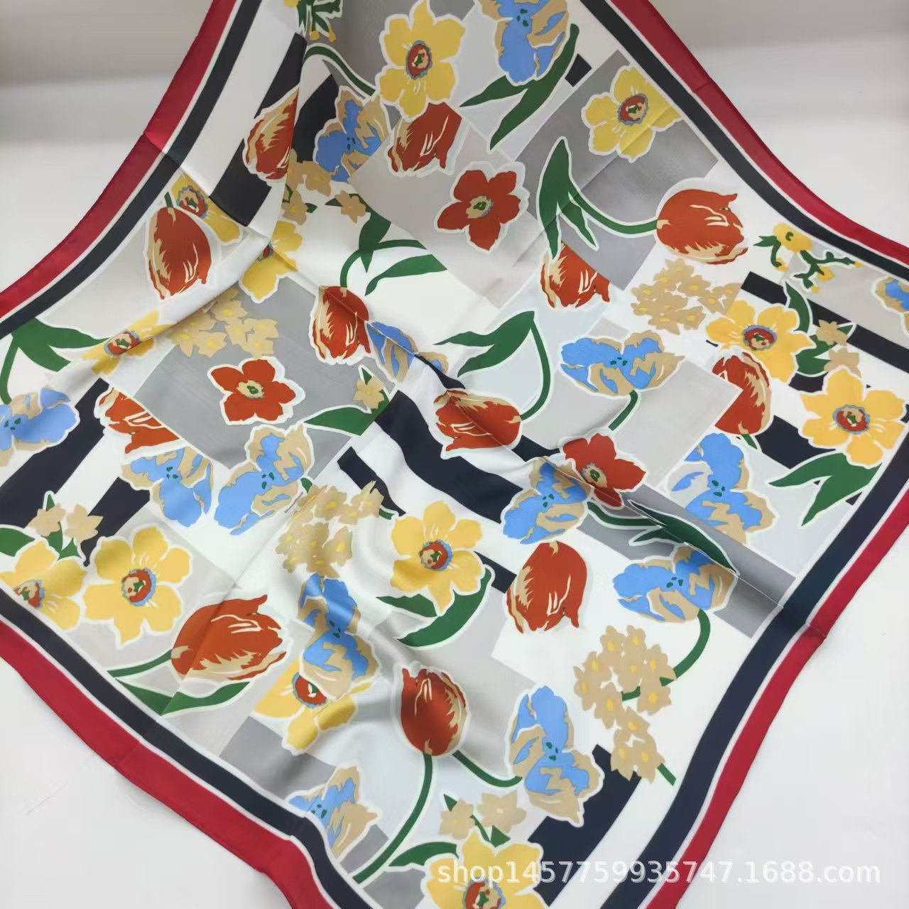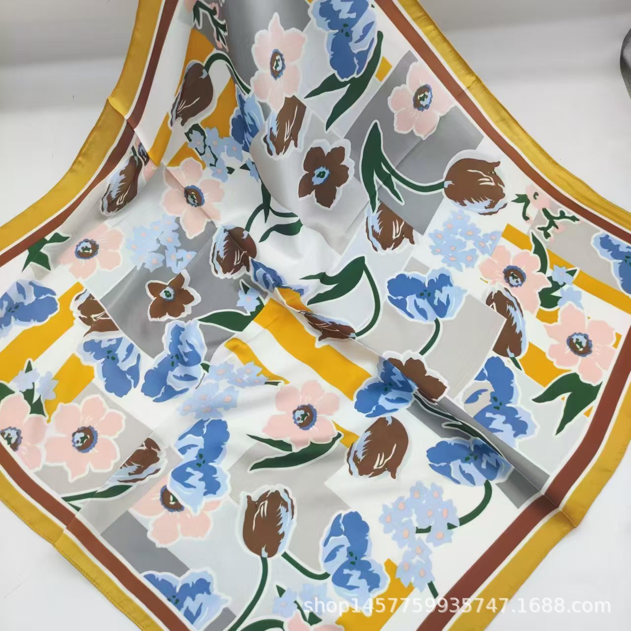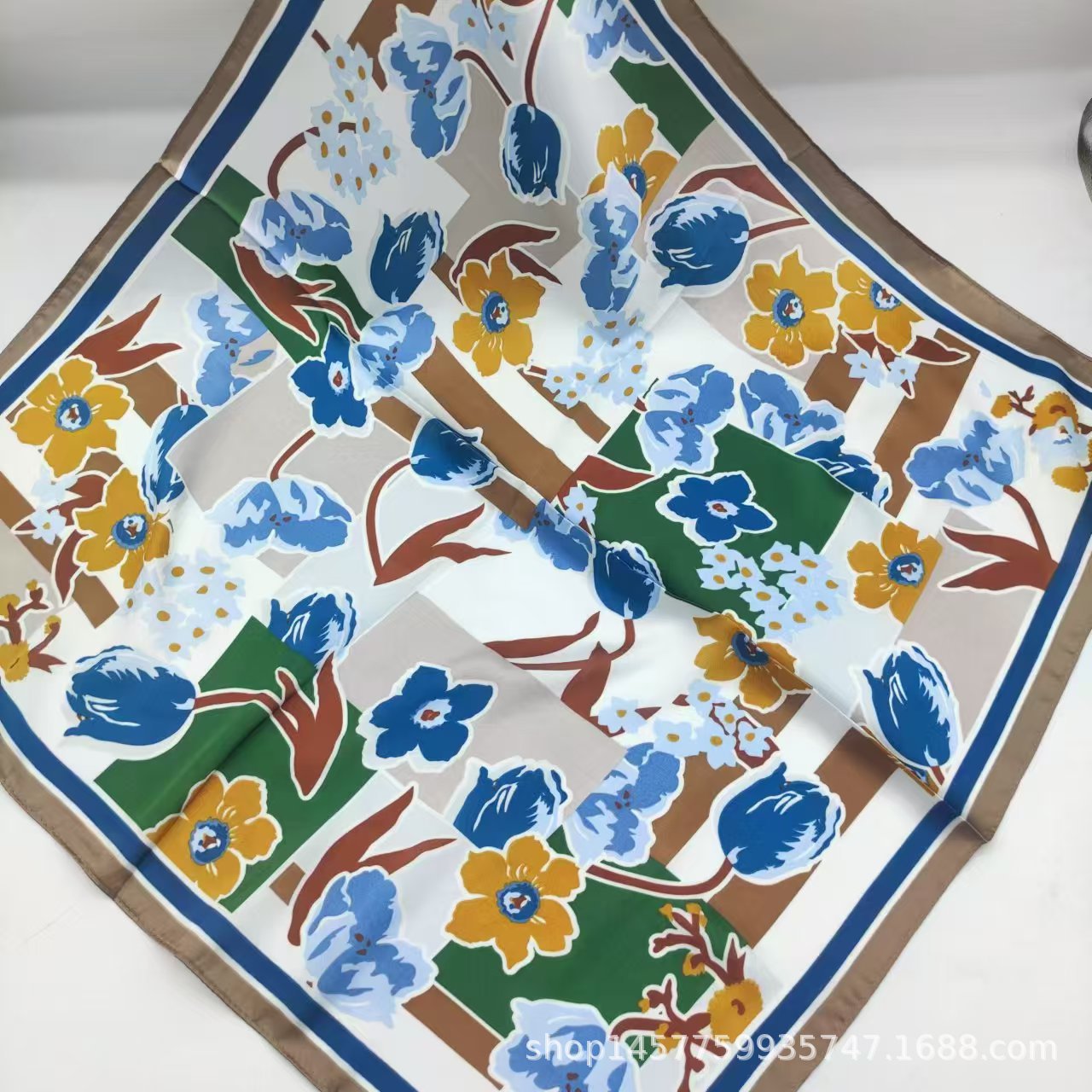 • 스플라이스된 작은 꽃 실크 스카프 작은 사각형 스카프