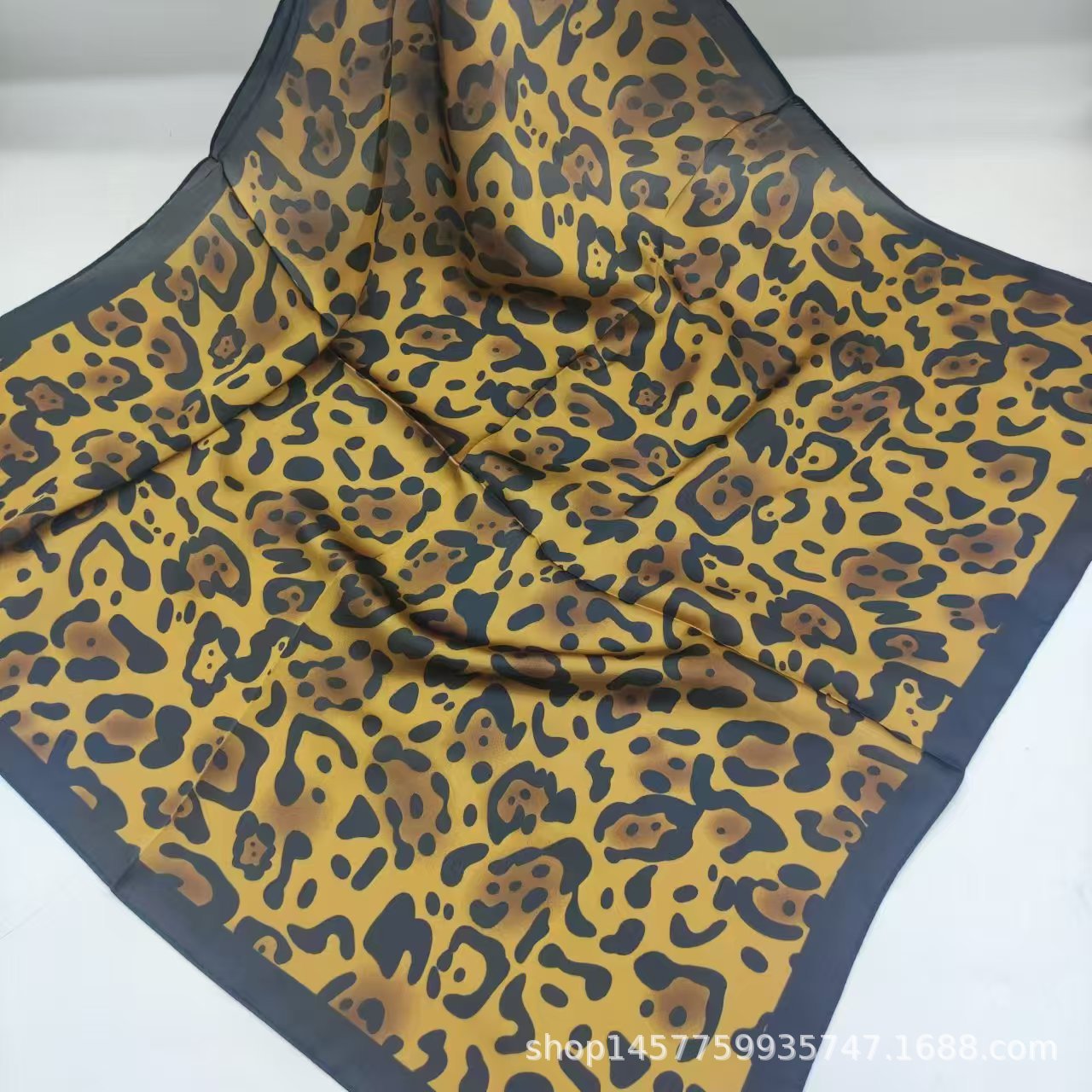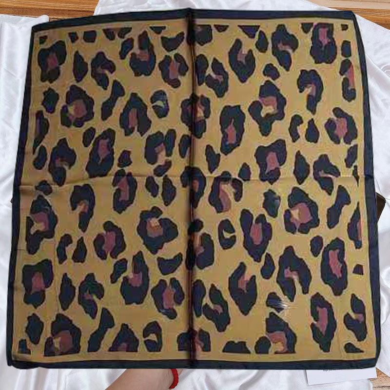 • 유럽과 미국의 표범 무늬 카키색 실크 스카프 작은 사각형 스카프