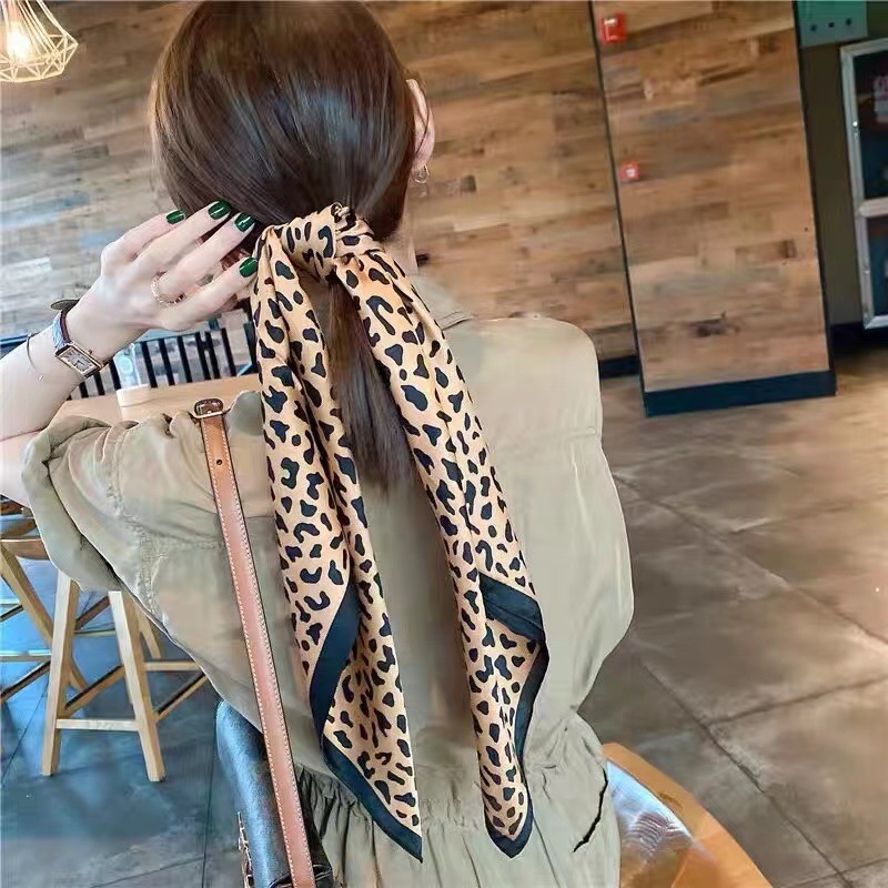 • 스플라이스 레오파드 프린트 실크 스카프 스몰 스퀘어 스카프