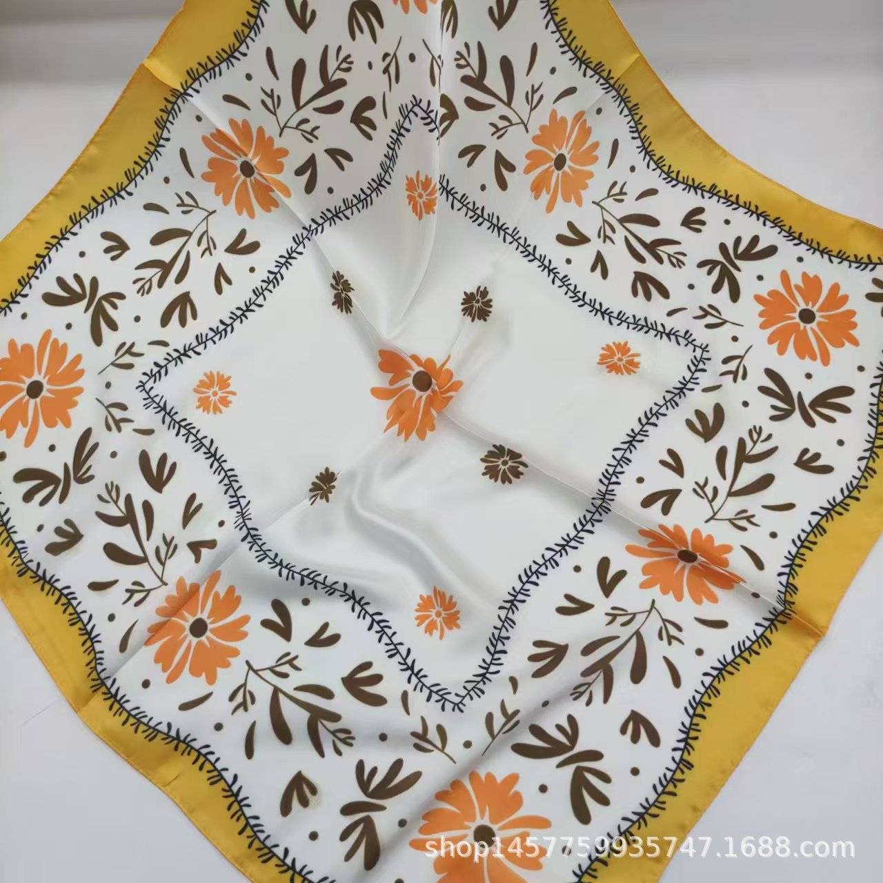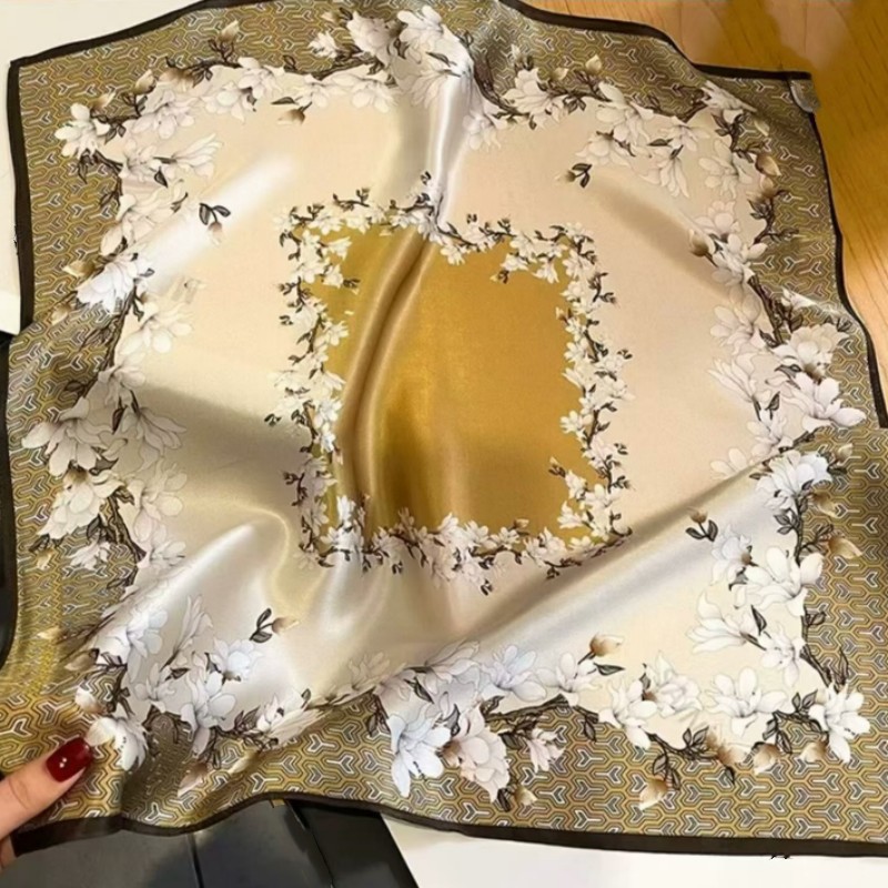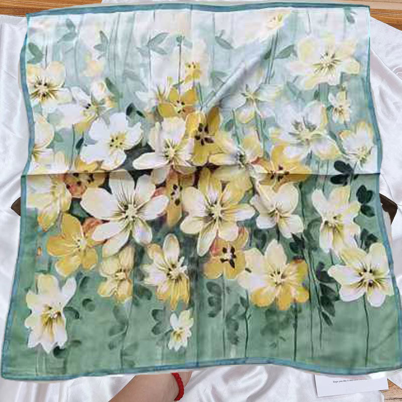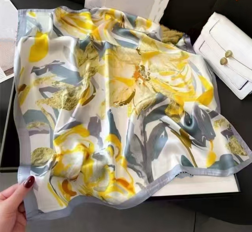 • 큰 노란색 꽃 실크 스카프 작은 사각형 스카프