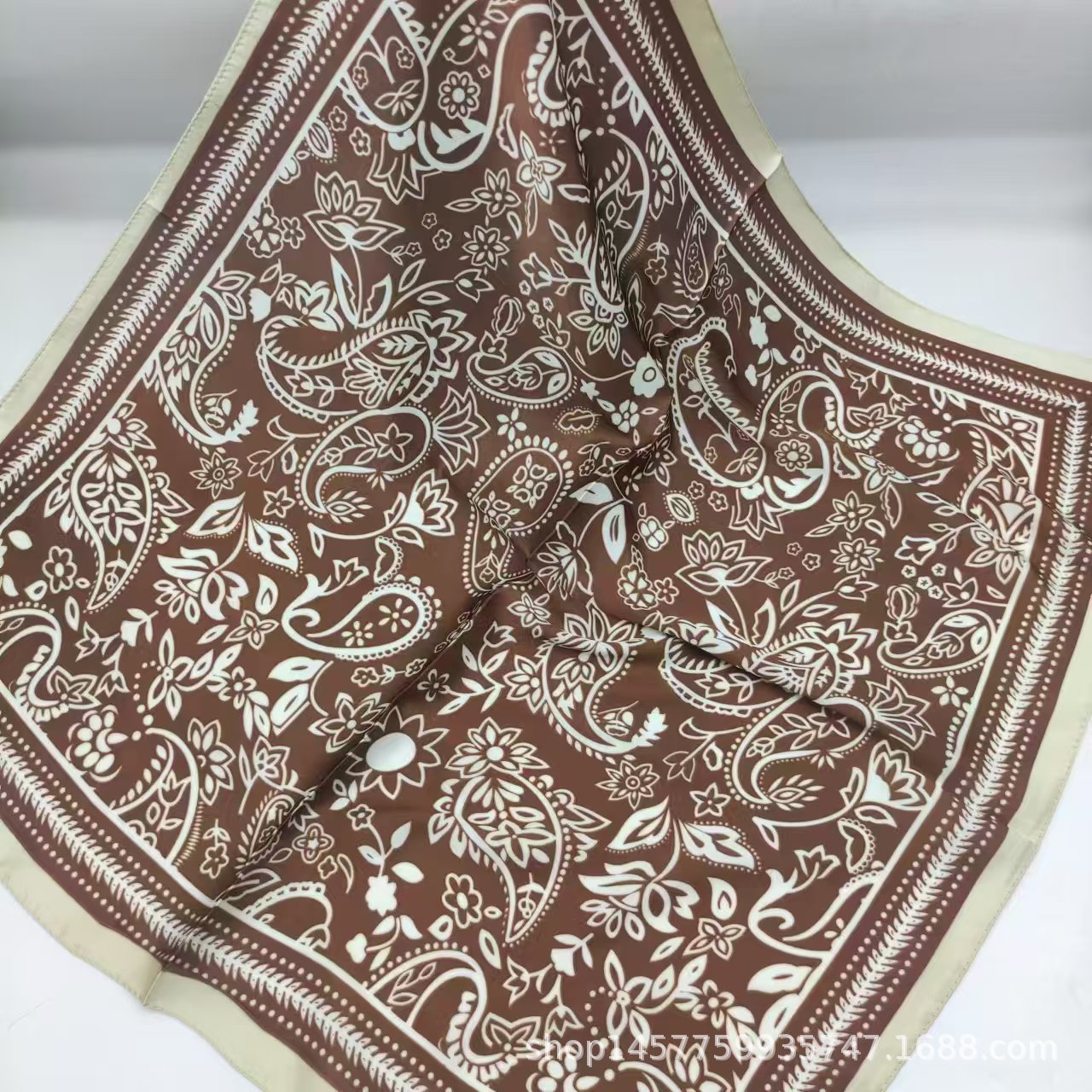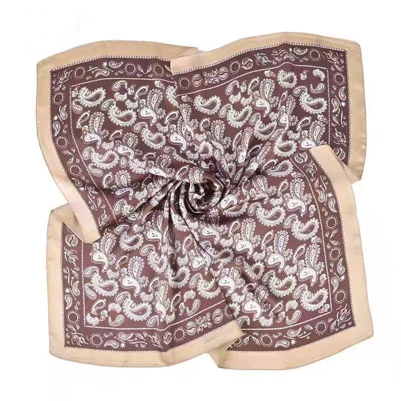 • 캐슈 커피 실크 스카프 작은 사각형 스카프