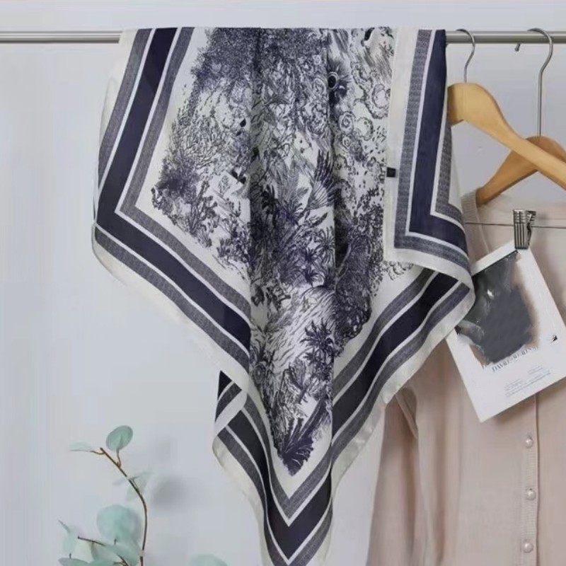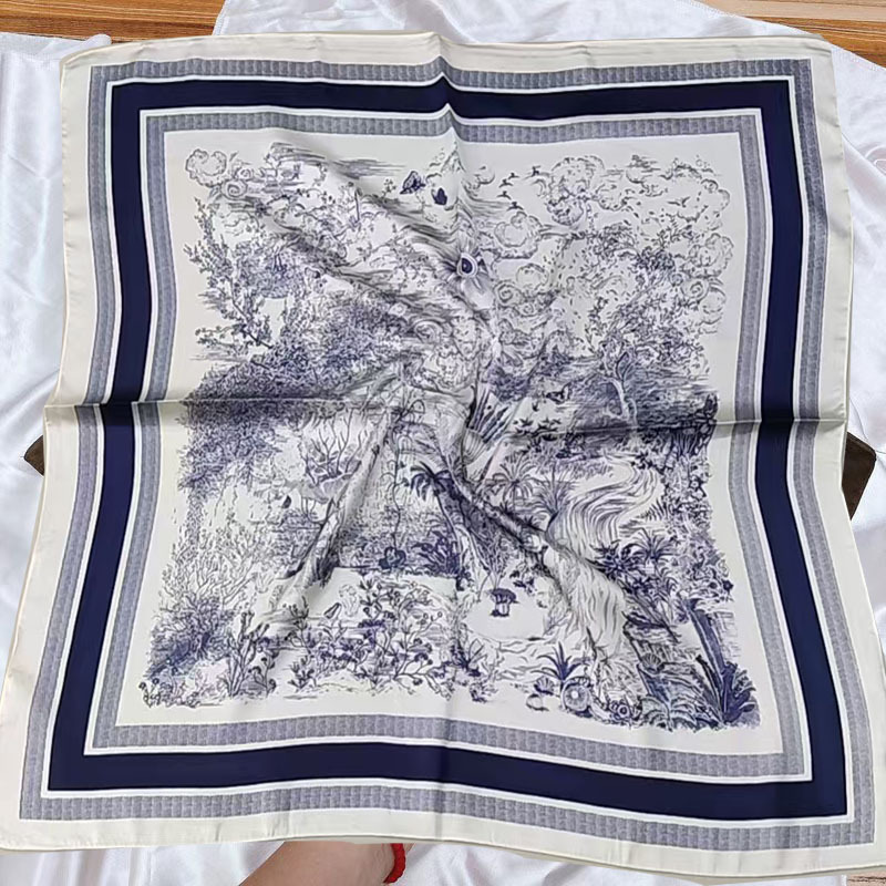 • 네이비 블루 포레스트 실크 스카프 스몰 스퀘어 스카프
