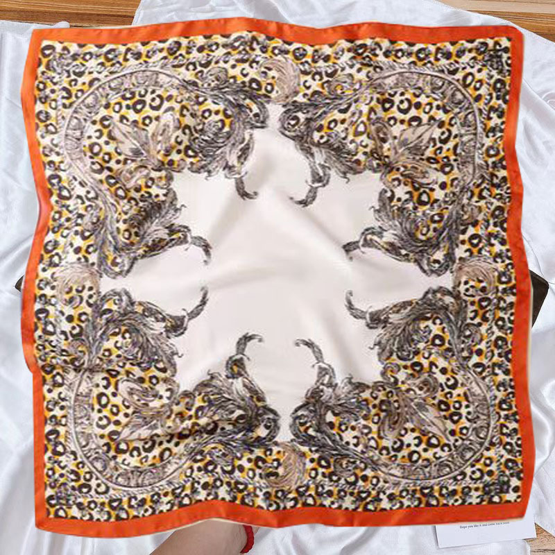 • 오렌지색 가장자리 표범 무늬 실크 스카프 작은 사각형 스카프