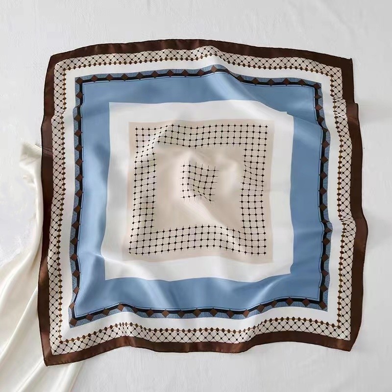 • 체크 무늬 파란색 실크 스카프 작은 사각형 스카프
