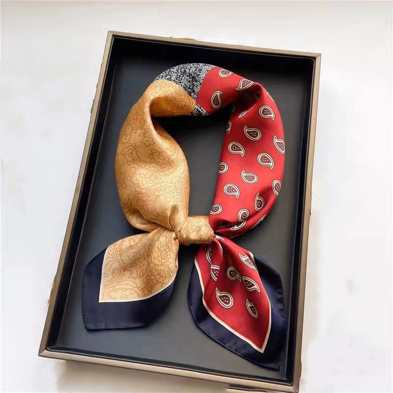 • 캐슈 실크 스카프 작은 사각형 스카프
