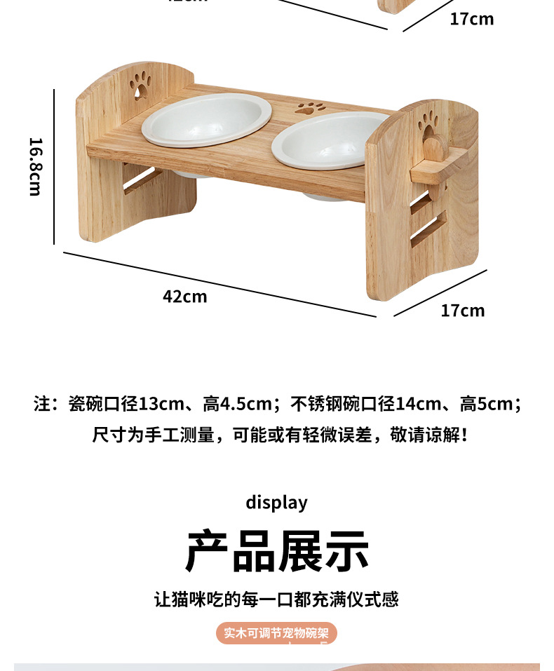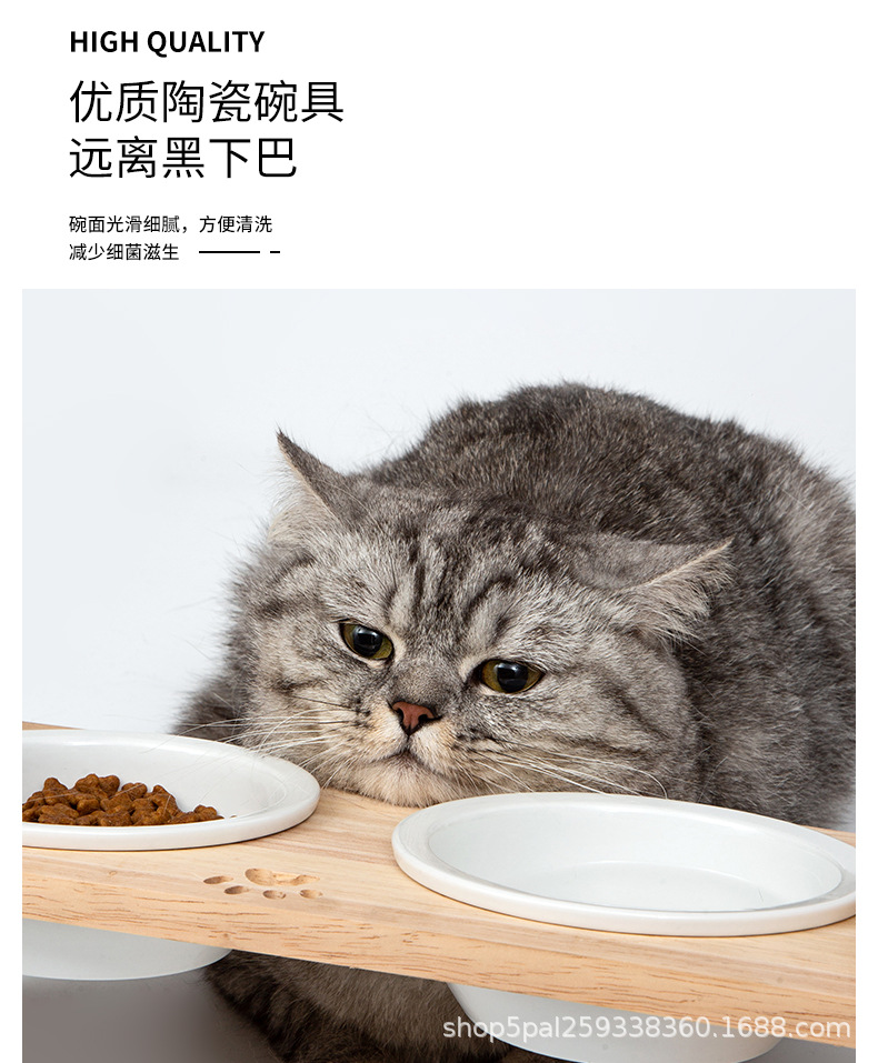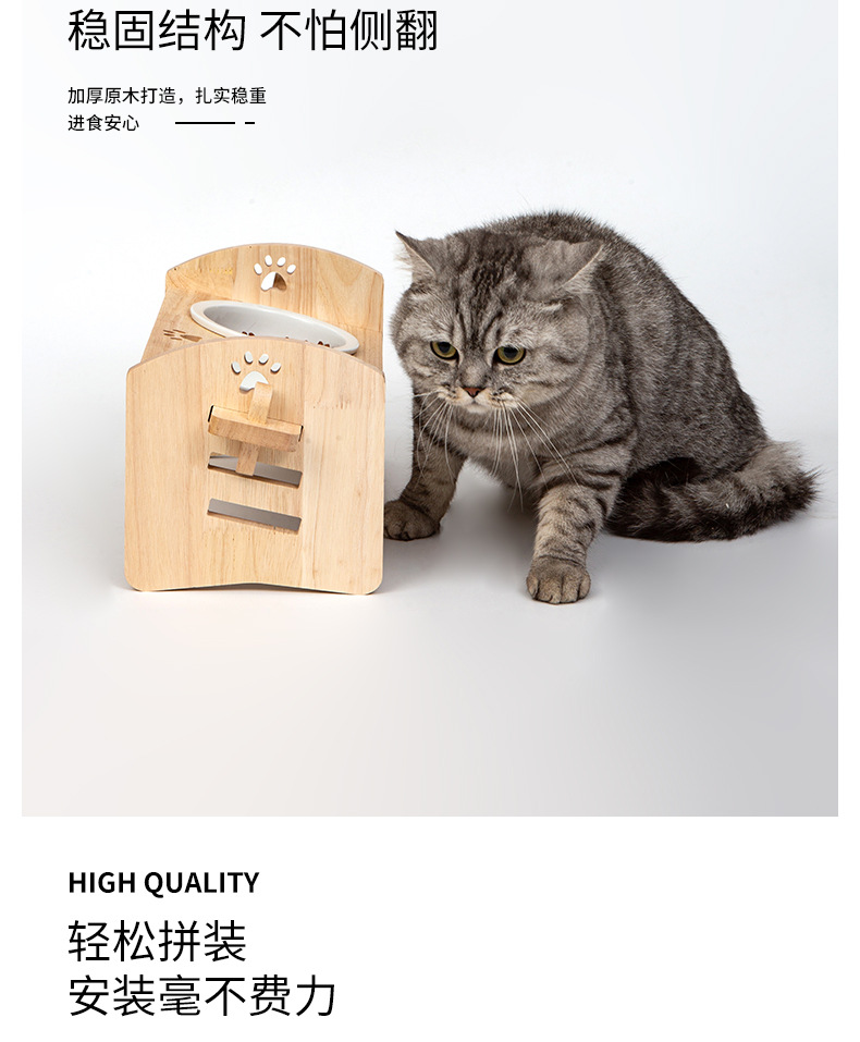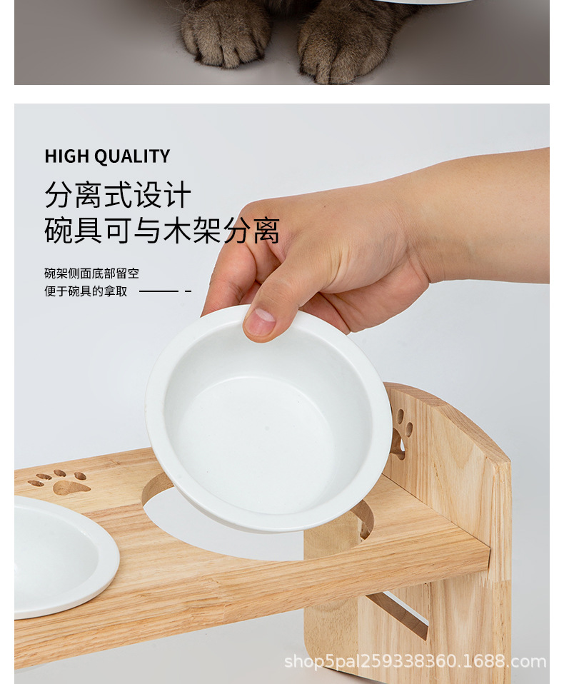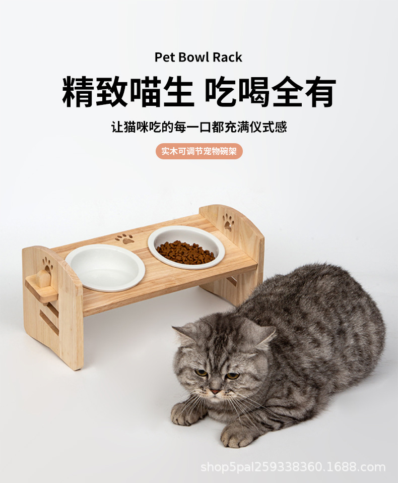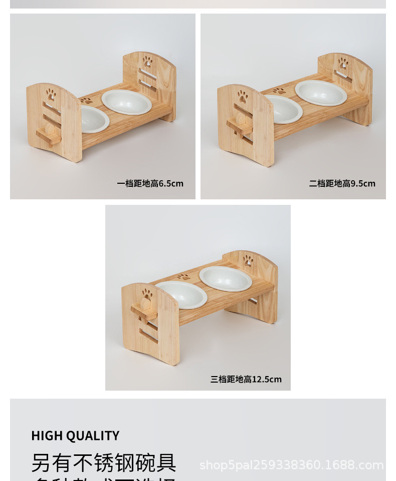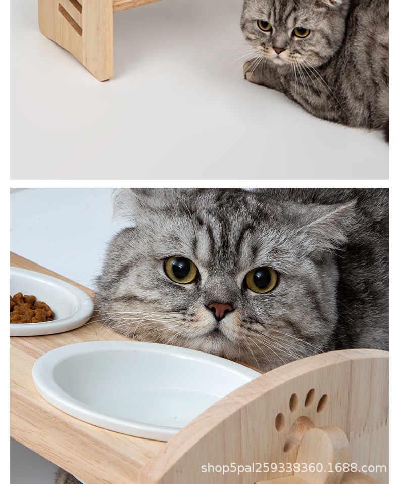 원목 고양이 밥그릇 받침대, 경사형 세라믹 대형견 및 중형견용, 높이 조절 가능, 고양이 급식대, 애완동물 고양이용스토어 가기