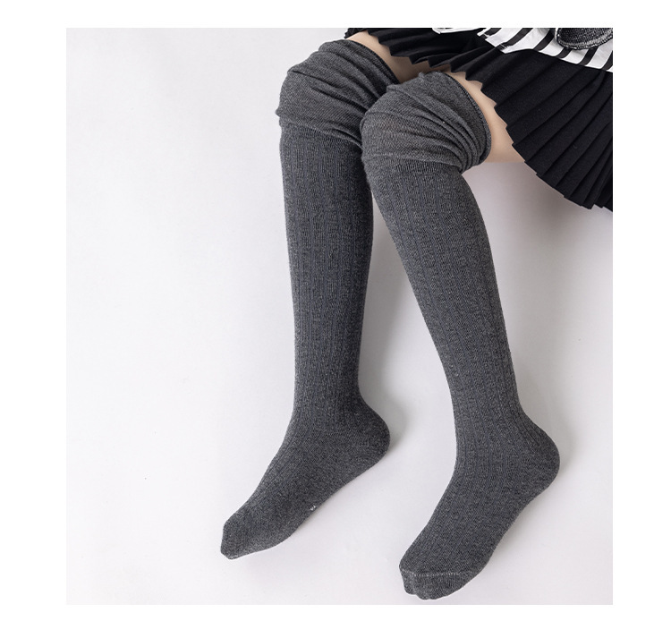 가을 신예 소녀 오버 더 무릎 스타킹 중대형 어린이 흑백 그레이 하이코튼 스타킹 학생들을위한 올 매치 심플 3-12 세