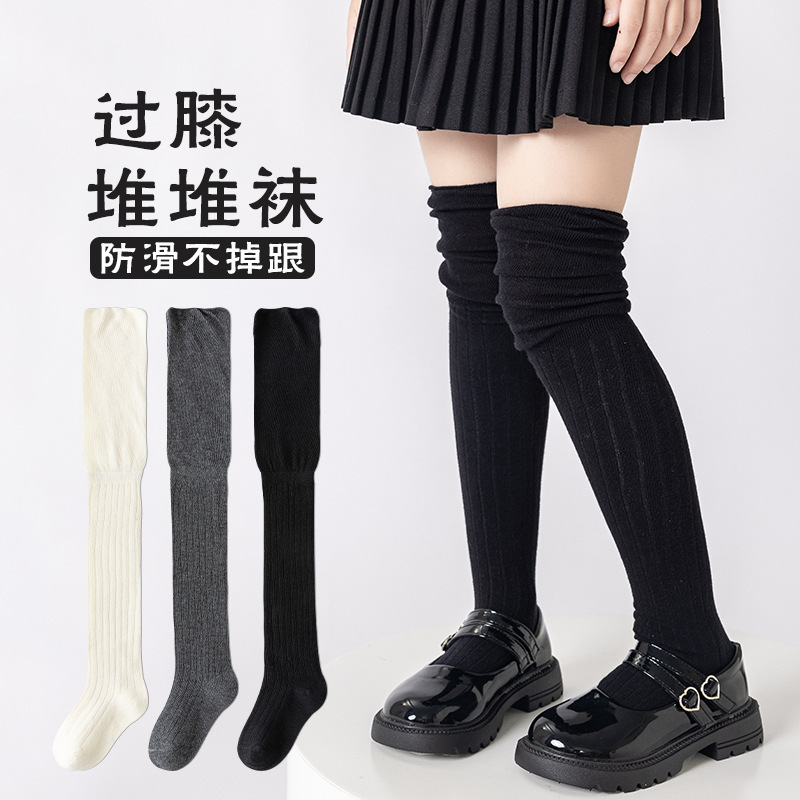 가을 신예 소녀 오버 더 무릎 스타킹 중대형 어린이 흑백 그레이 하이코튼 스타킹 학생들을위한 올 매치 심플 3-12 세스토어 가기