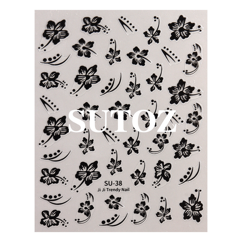 2024 국경 뉴 네일 아트 스티커 국가 스타일 히비스커스 꽃 우유 패턴 3D 네일 접착 스티커 네일스토어 가기