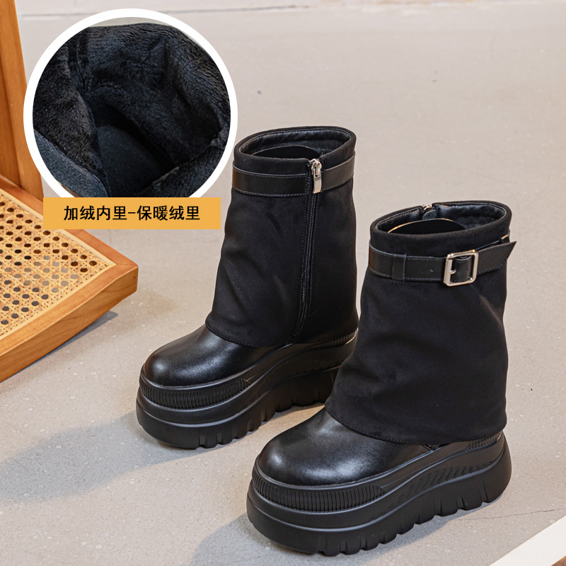 여성용 숏부츠 2025 가을 겨울 신상 두꺼운 밑창 튜브 부츠 마틴 부츠 레트로 레오파드 프린트 미드 튜브 벨트 버클 내부 오르가슴스토어 가기