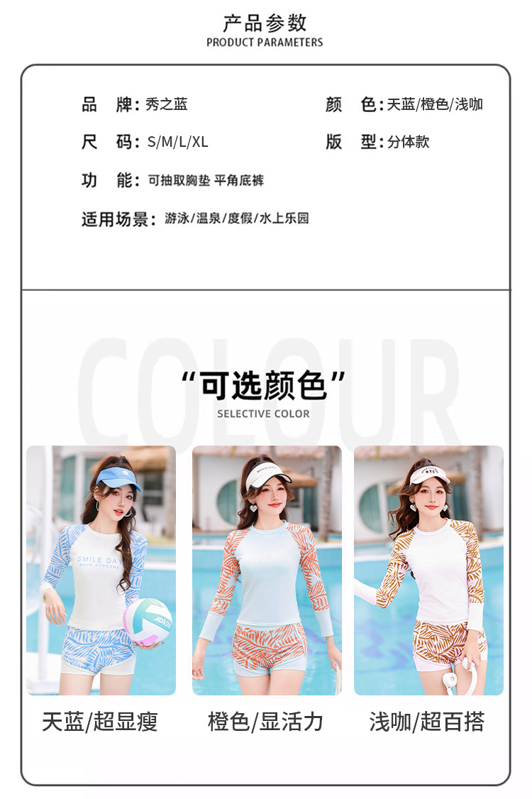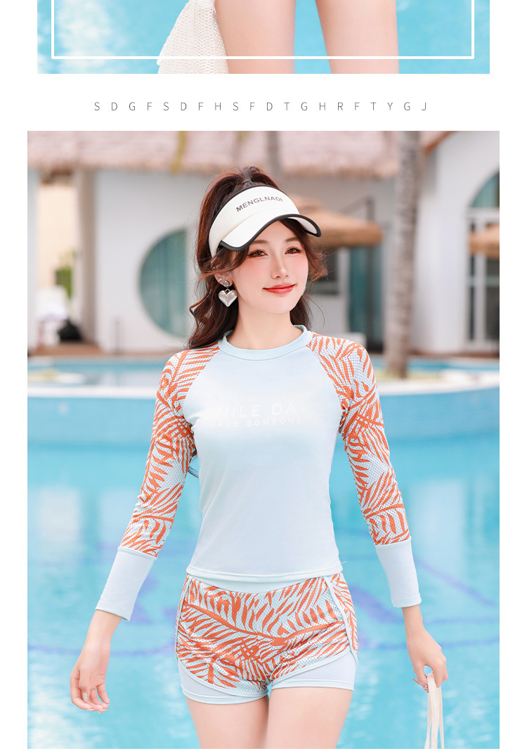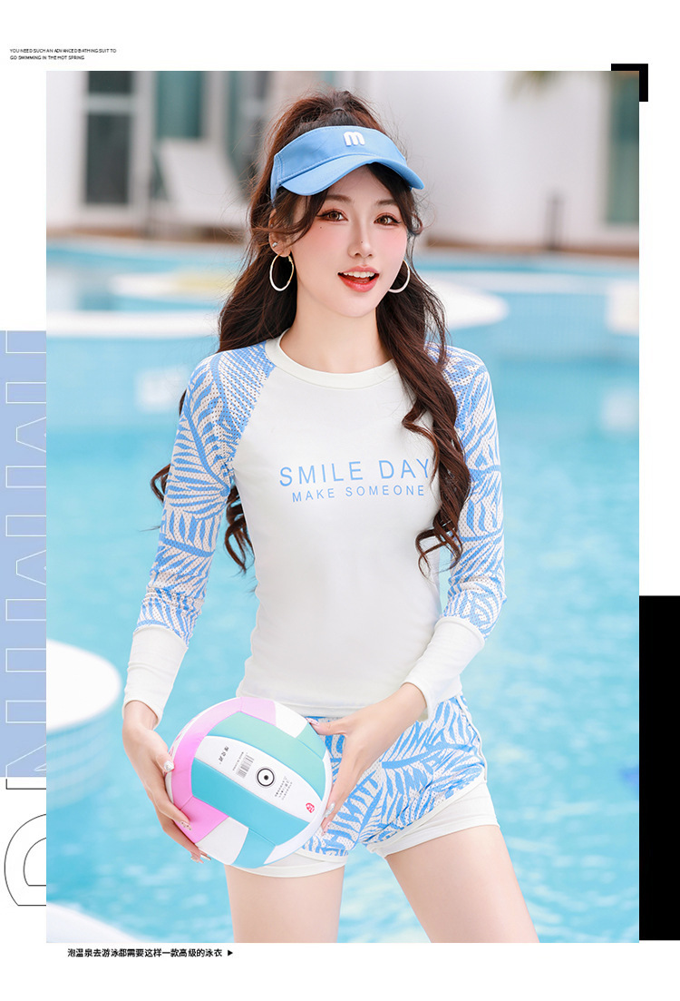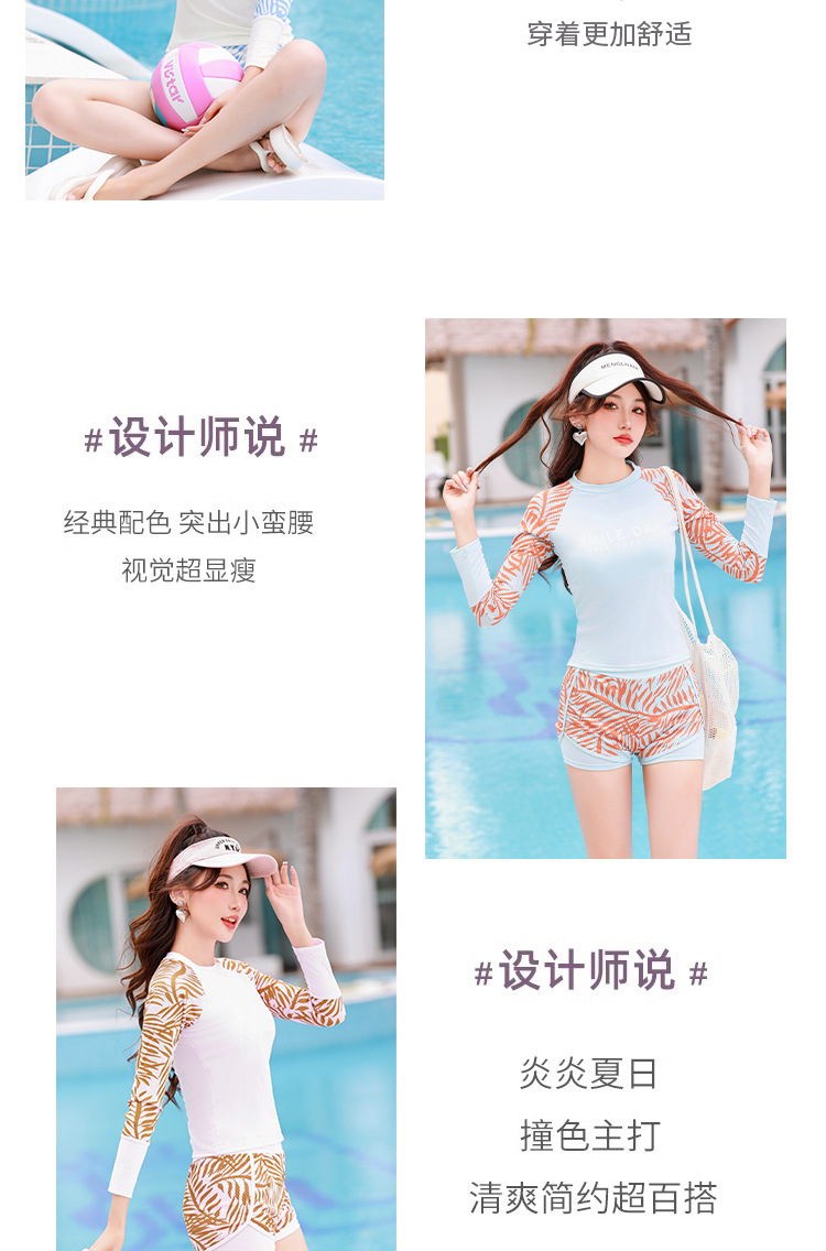 새로운 스포츠 수영복 여성 온천 포켓 보수적 인 분할 고급 벨리 커버 슬리밍 여성용 긴팔 선 스크린 수영복