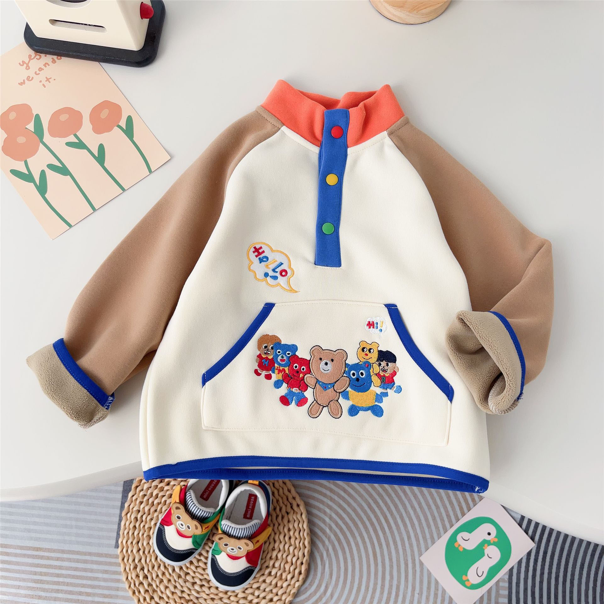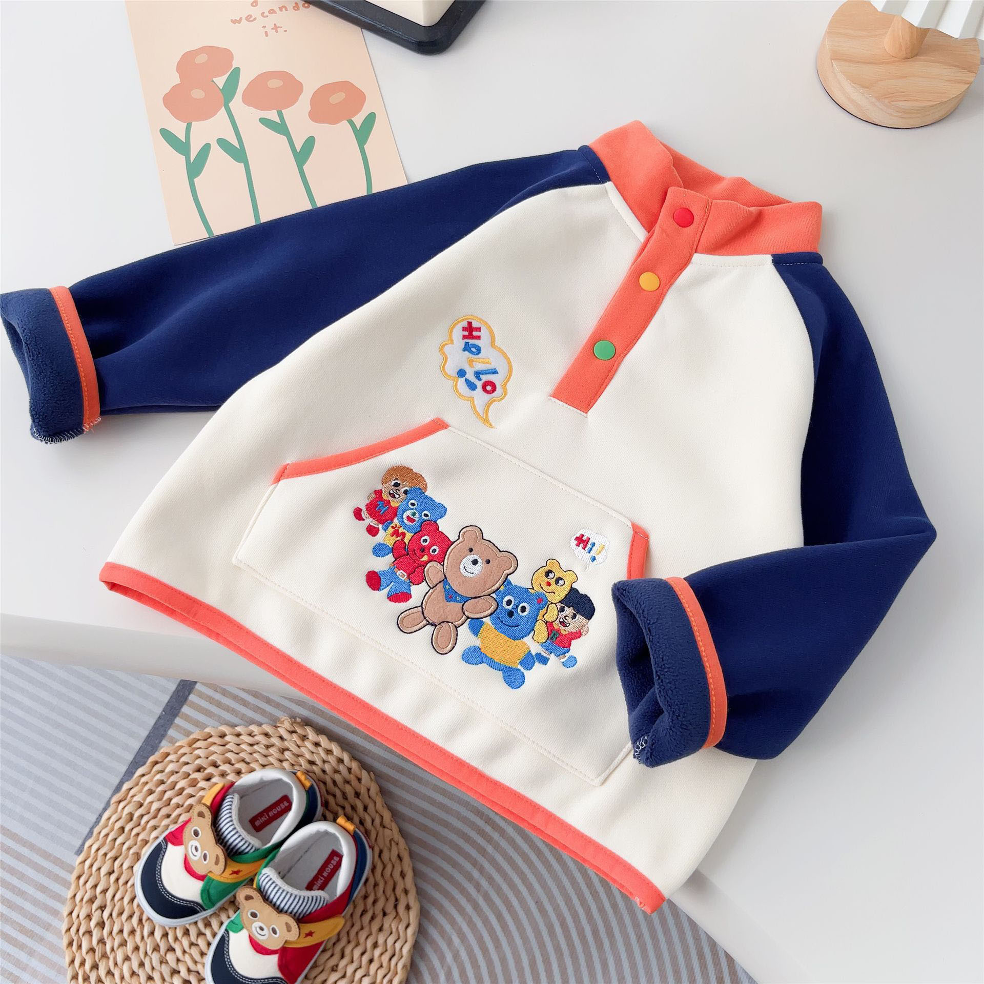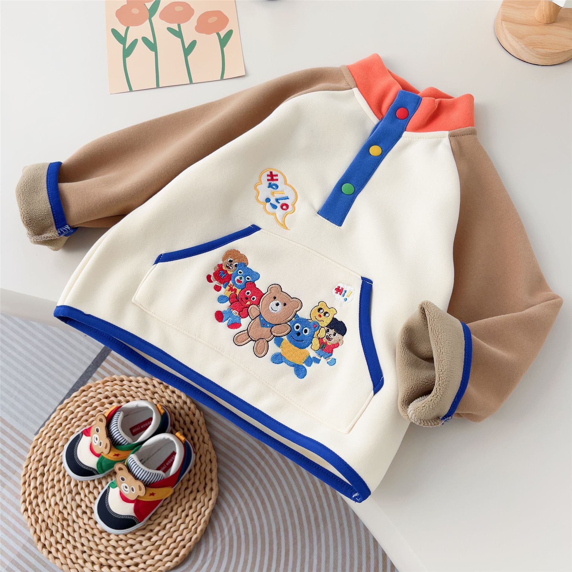 일본 아동복 24 가을 겨울 신상 남녀 아동 긴팔 인형 파티 곰돌이 루즈핏 기모 스웨트셔츠 트렌디 5089