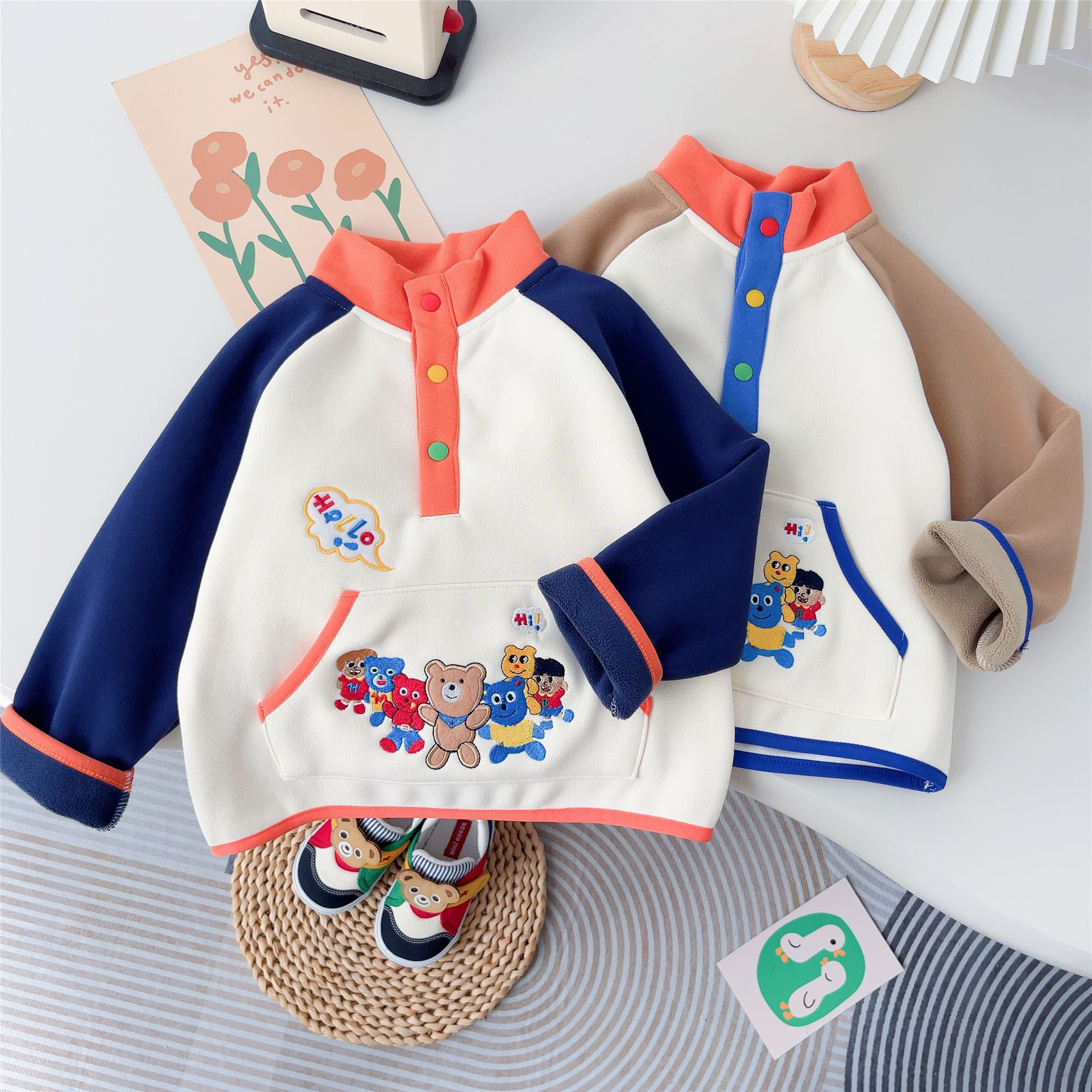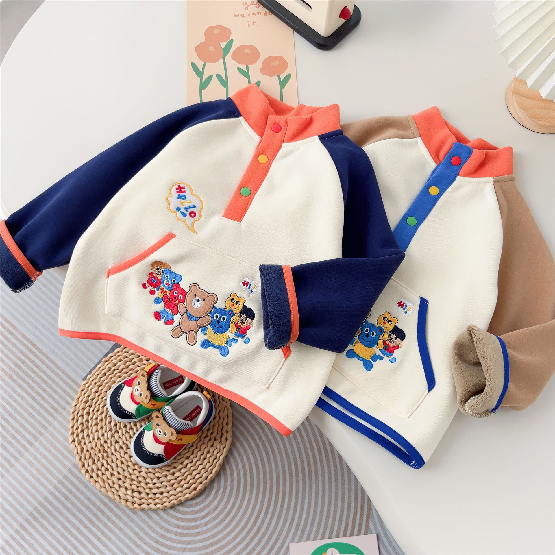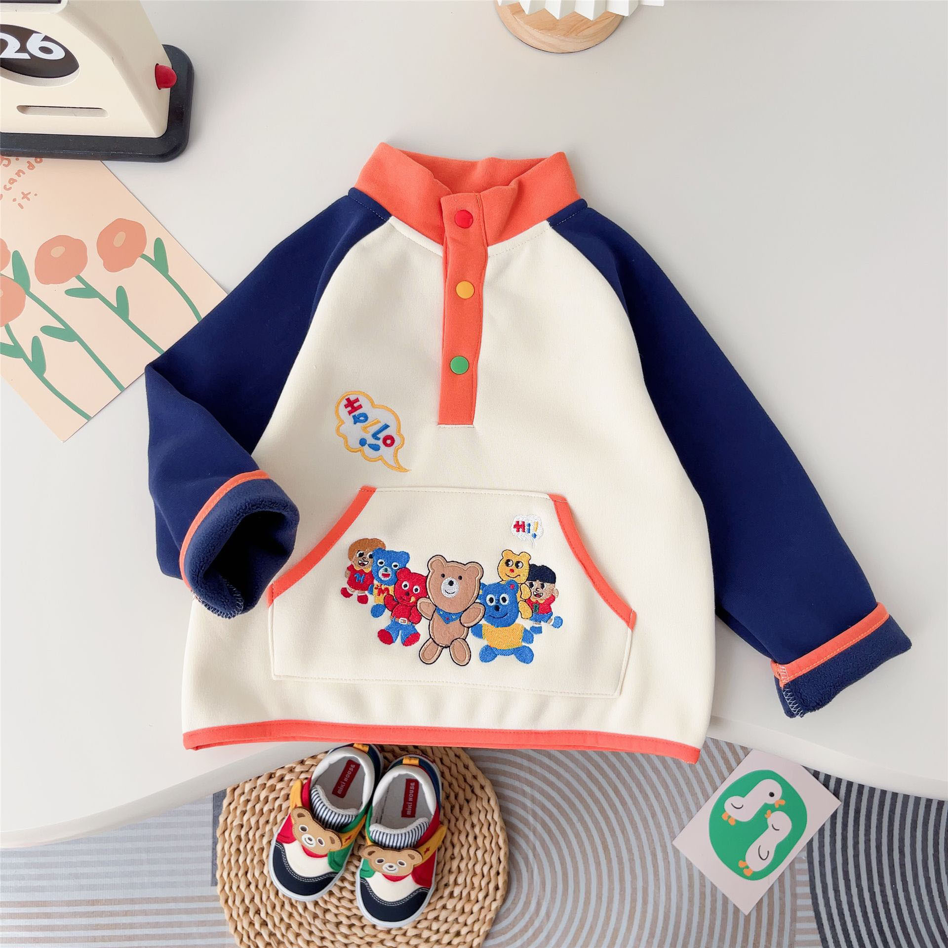 일본 아동복 24 가을 겨울 신상 남녀 아동 긴팔 인형 파티 곰돌이 루즈핏 기모 스웨트셔츠 트렌디 5089