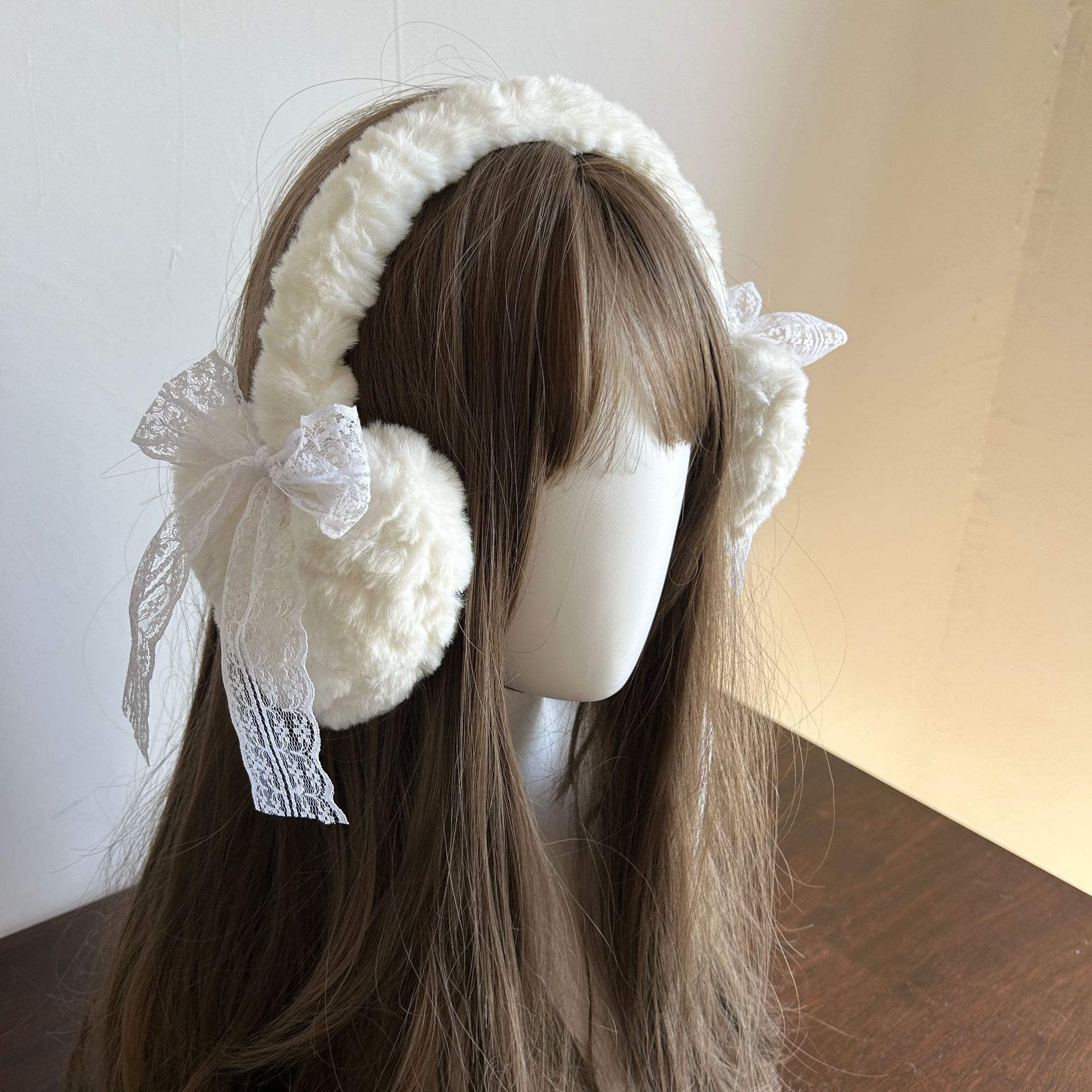 겨울 새로운 일본 달콤한 소녀 귀여운 레이스 활 따뜻한 헤드웨어 봉제 귀 가방 사랑 Earmguard