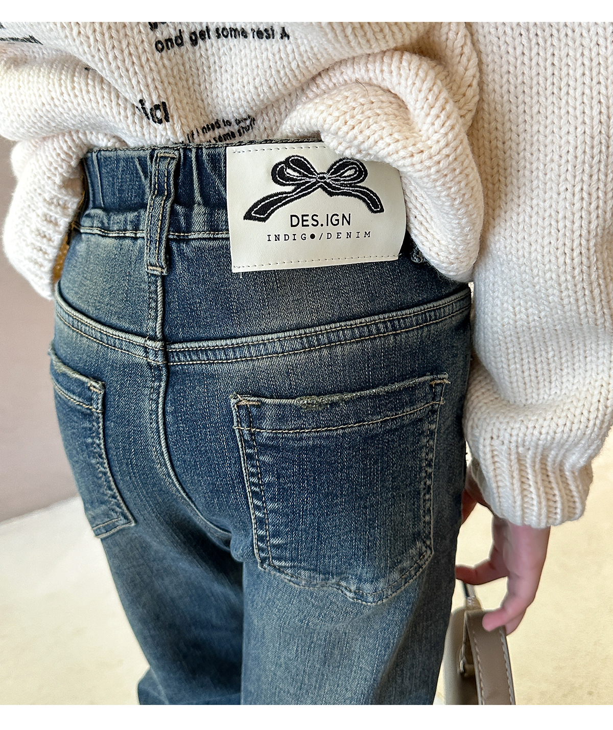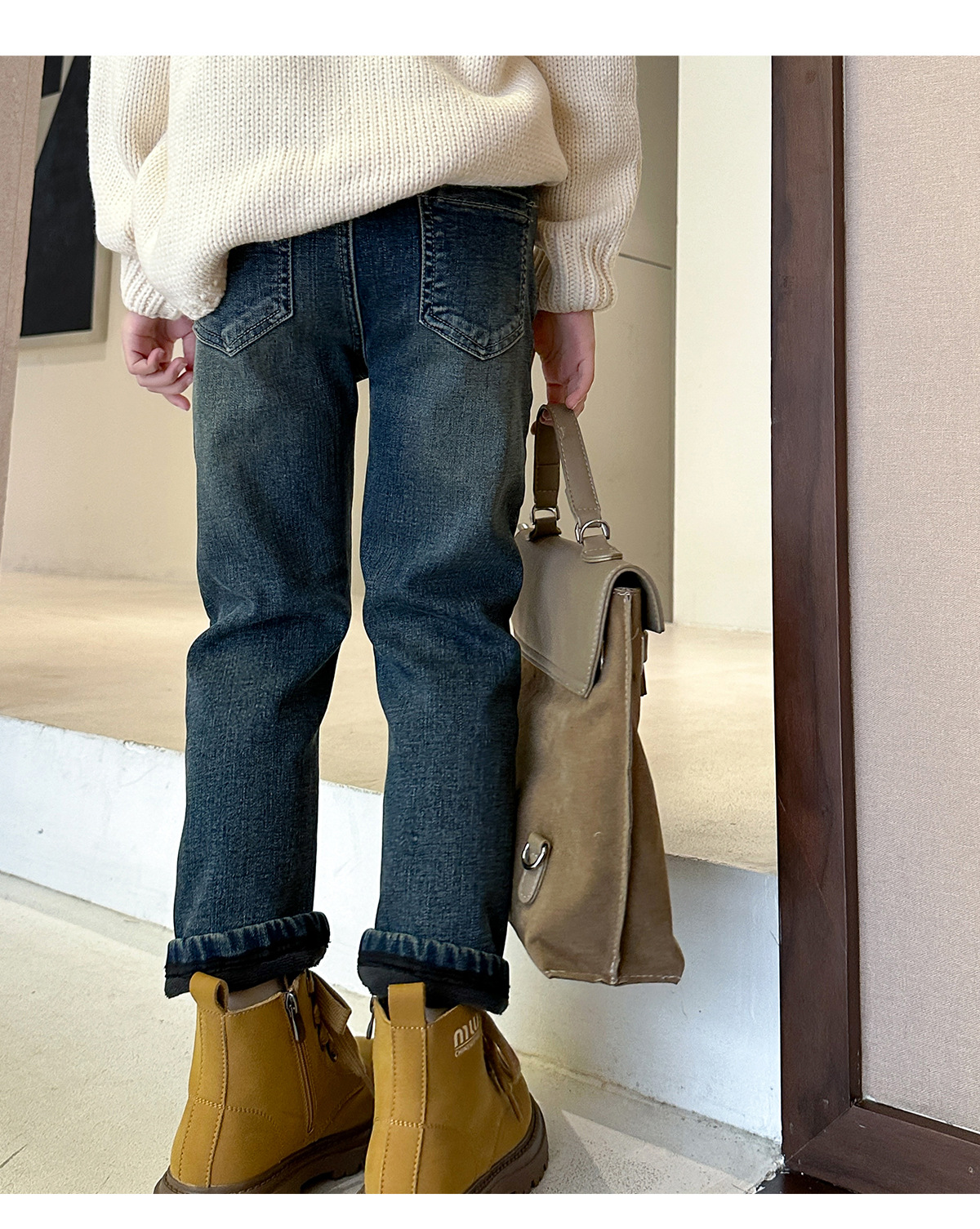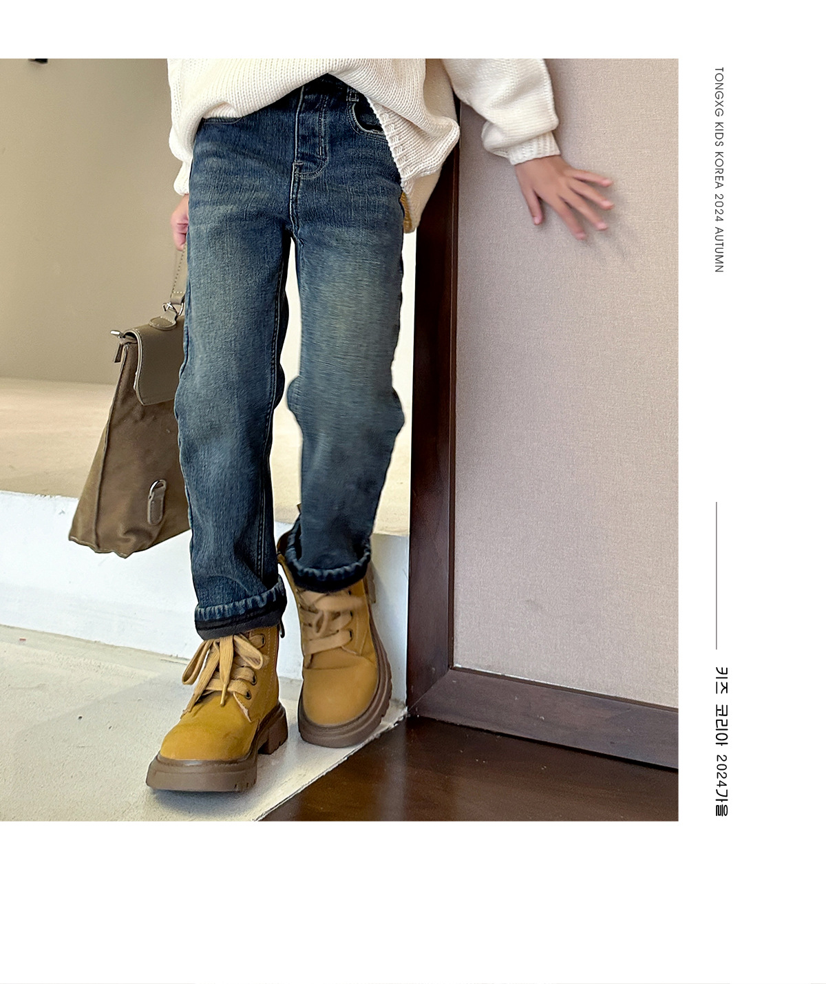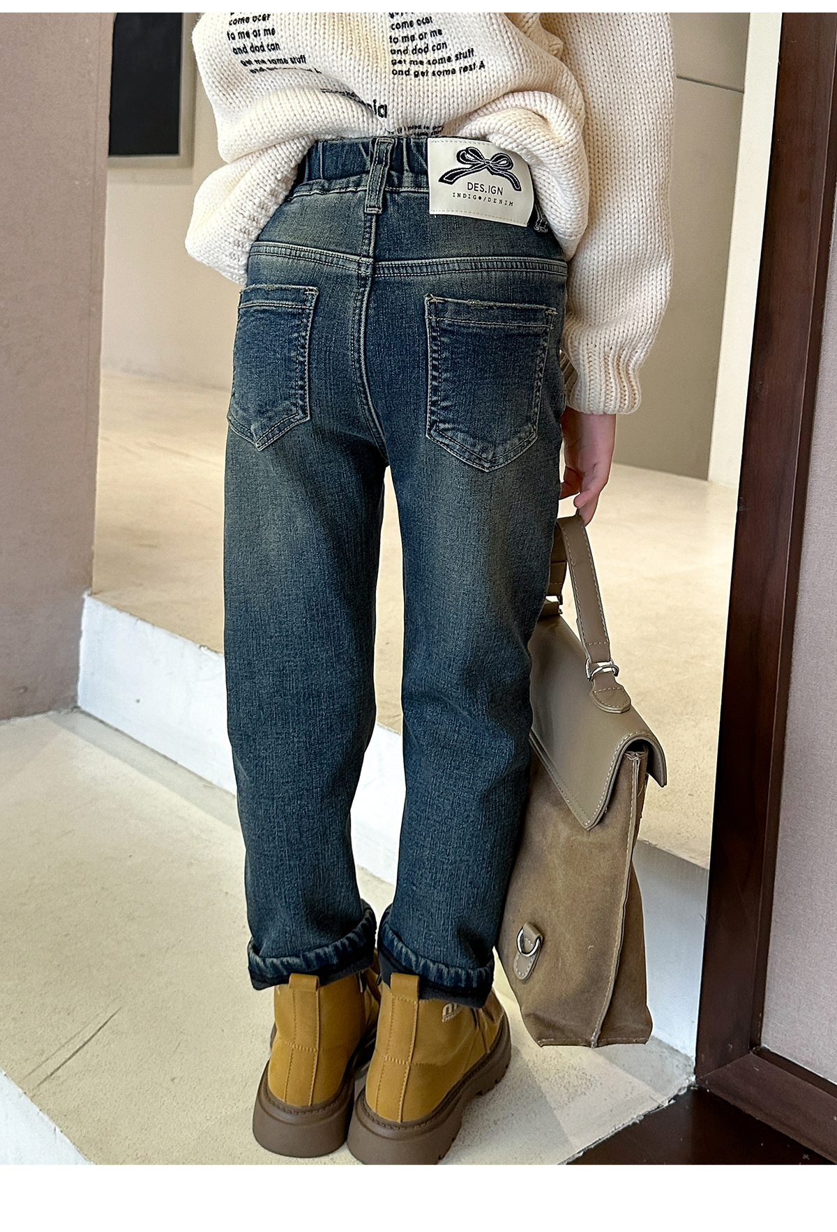 【재고 있음】2025 가을 겨울 신상 중대형 아동용 기모 두꺼운 워싱 데님 팬츠, 세련된 여아용 기모 데님스토어 가기