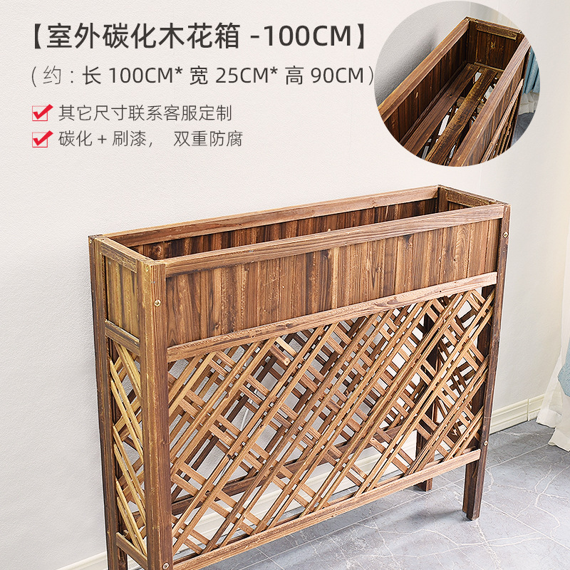 • 야외 탄화 나무 꽃 상자 길이 100CM