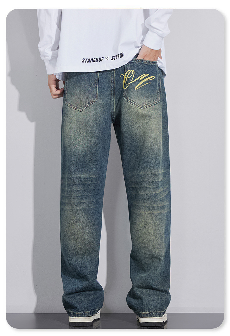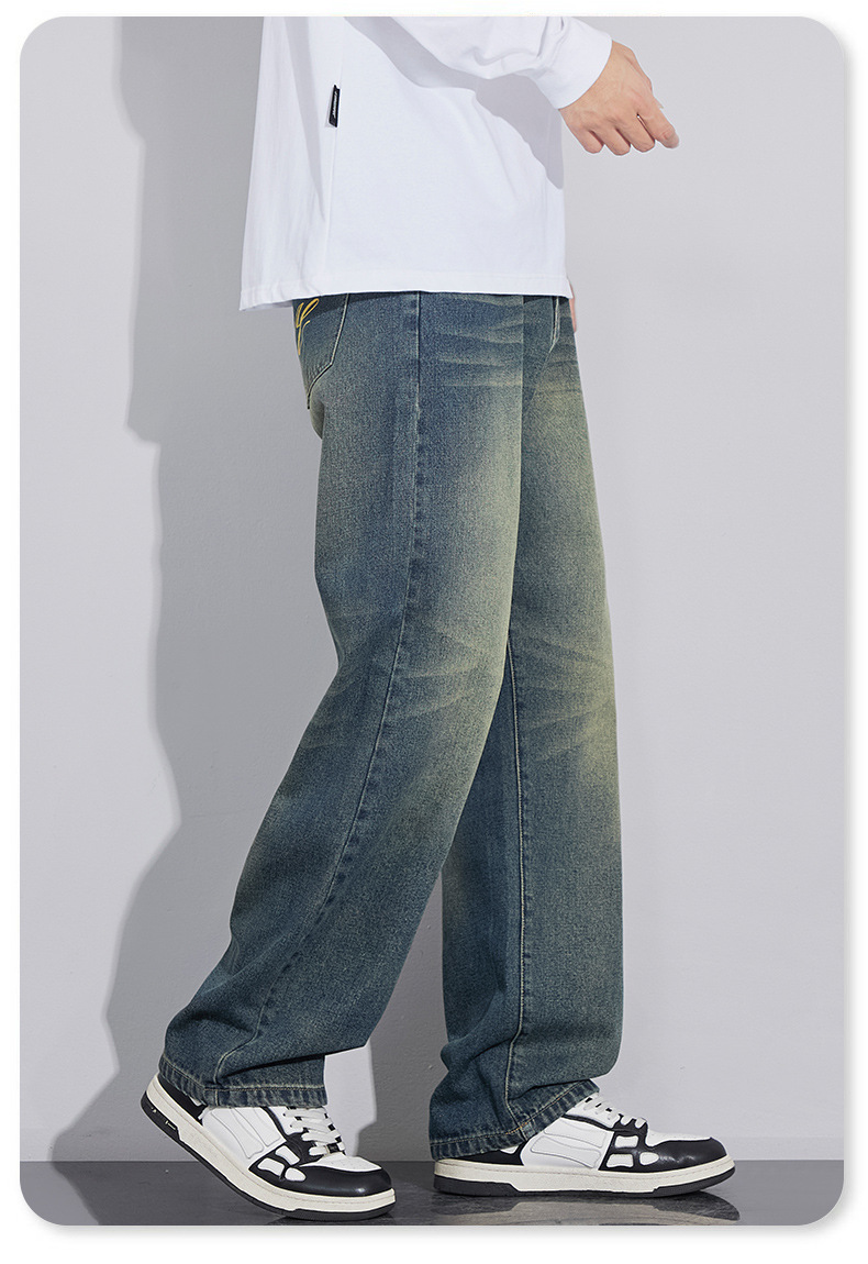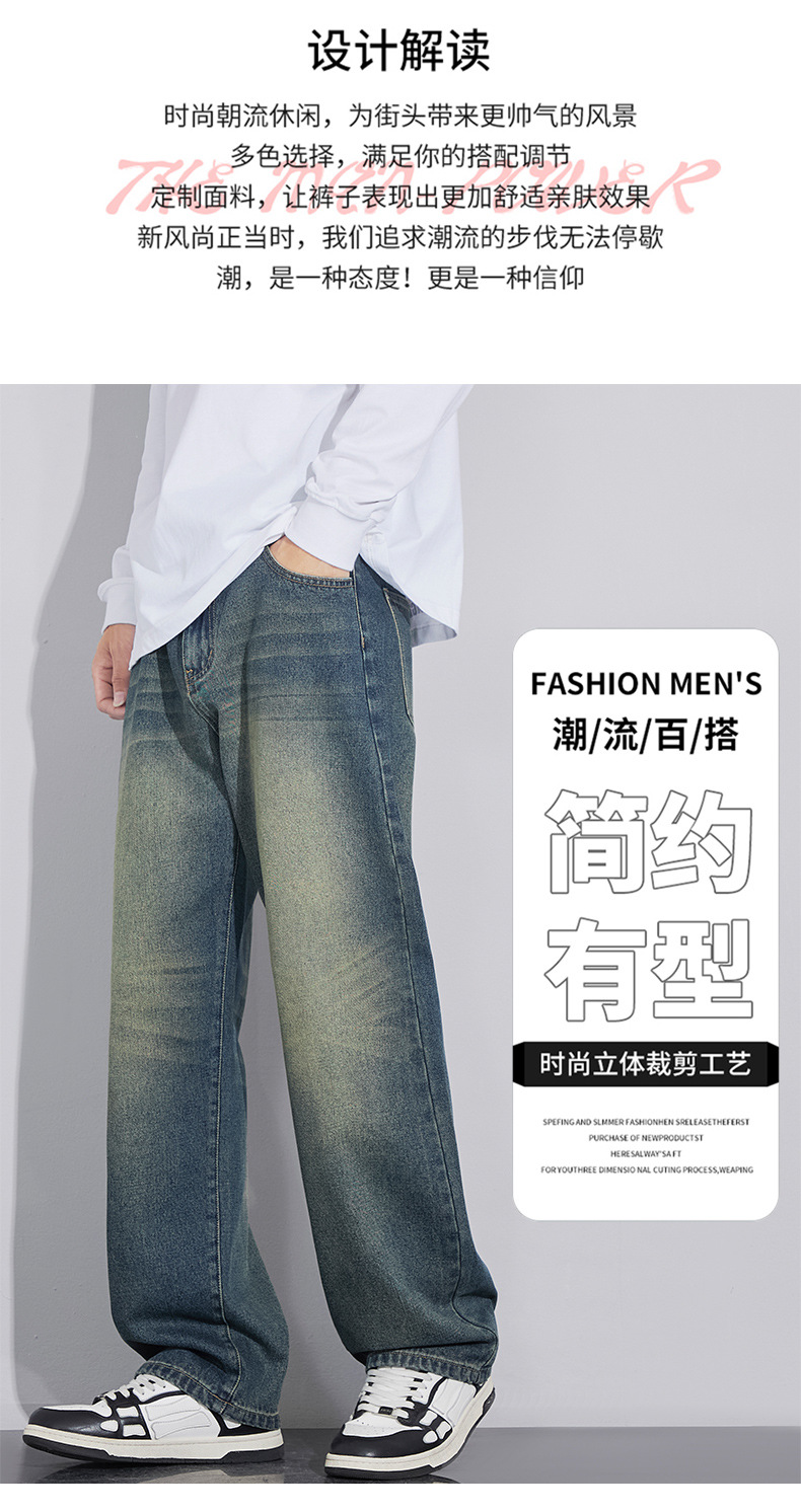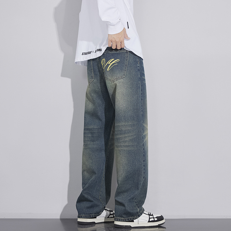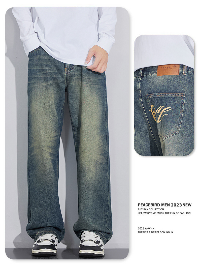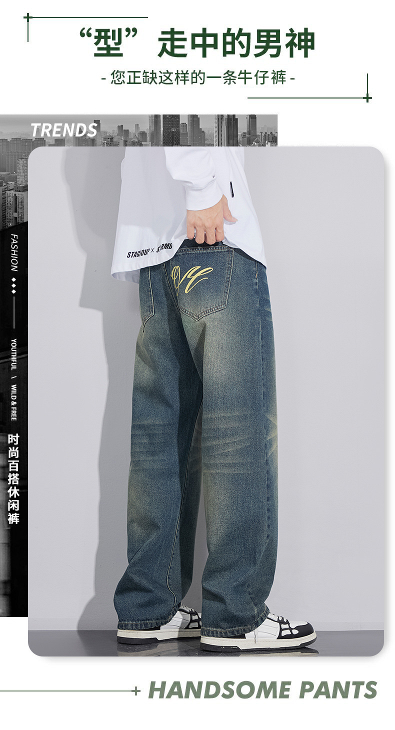 새로운 가을과 겨울 청바지 남성용 스트레이트 느슨한 남성용 바지 잘 생긴 올 매치 패션 캐주얼 남성 재고 도매스토어 가기